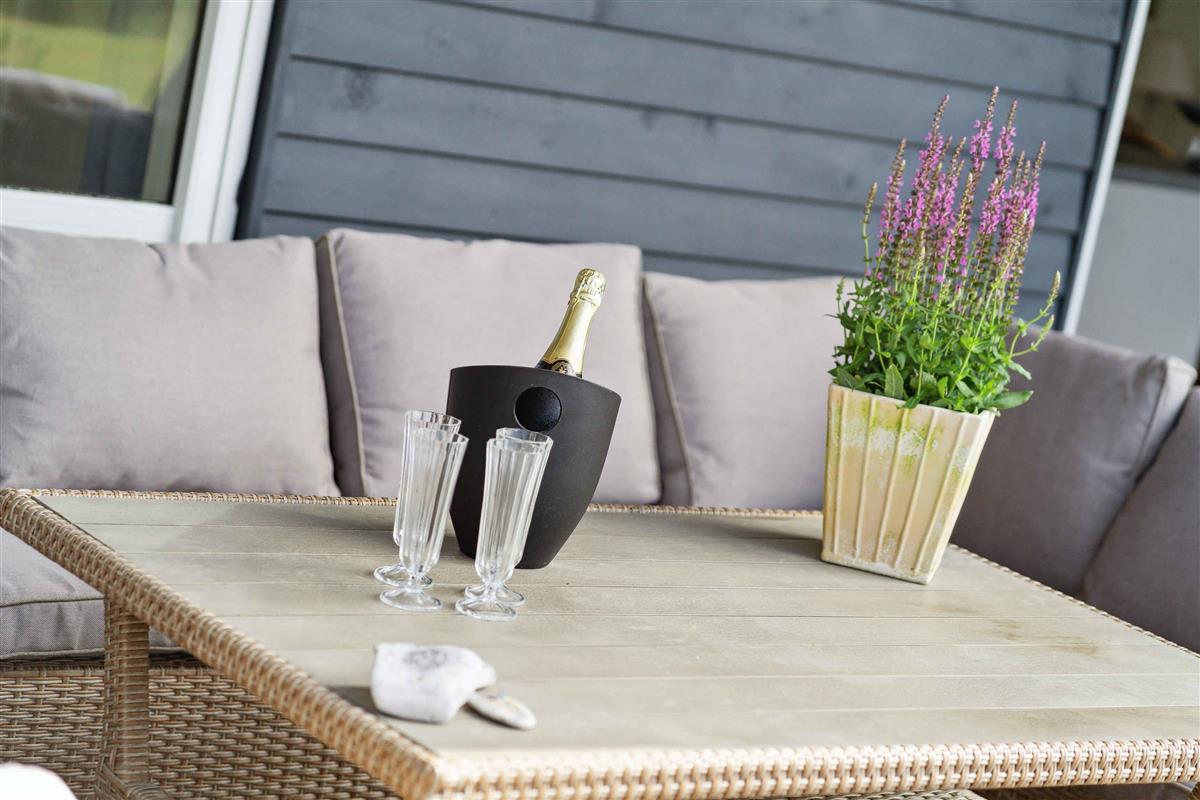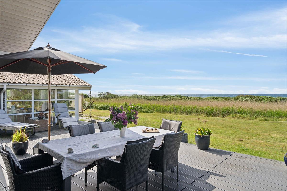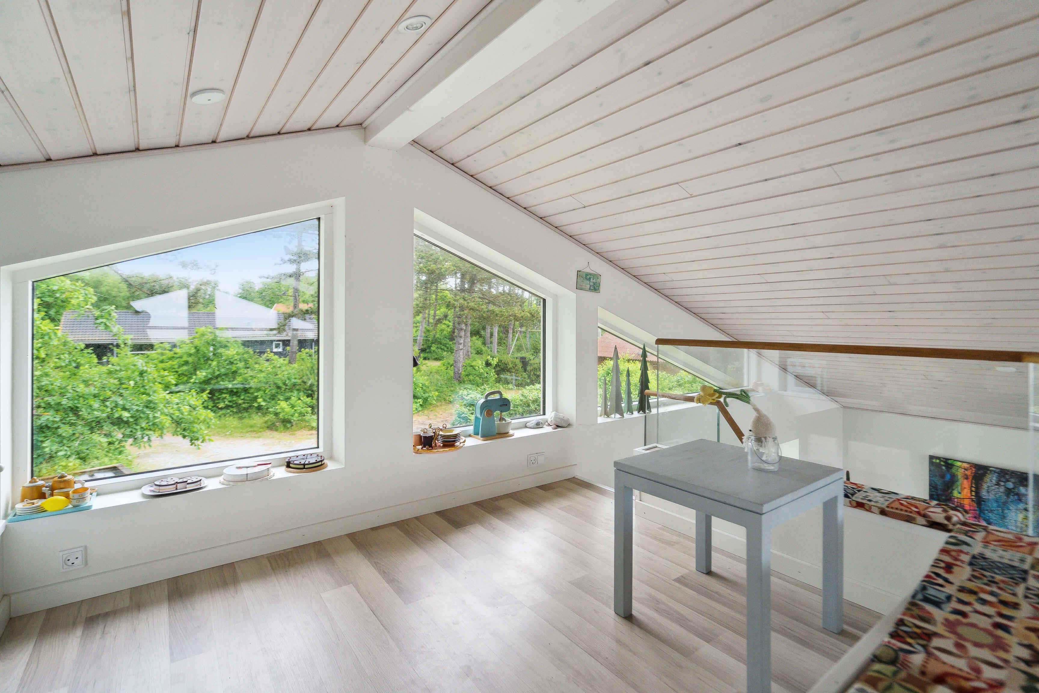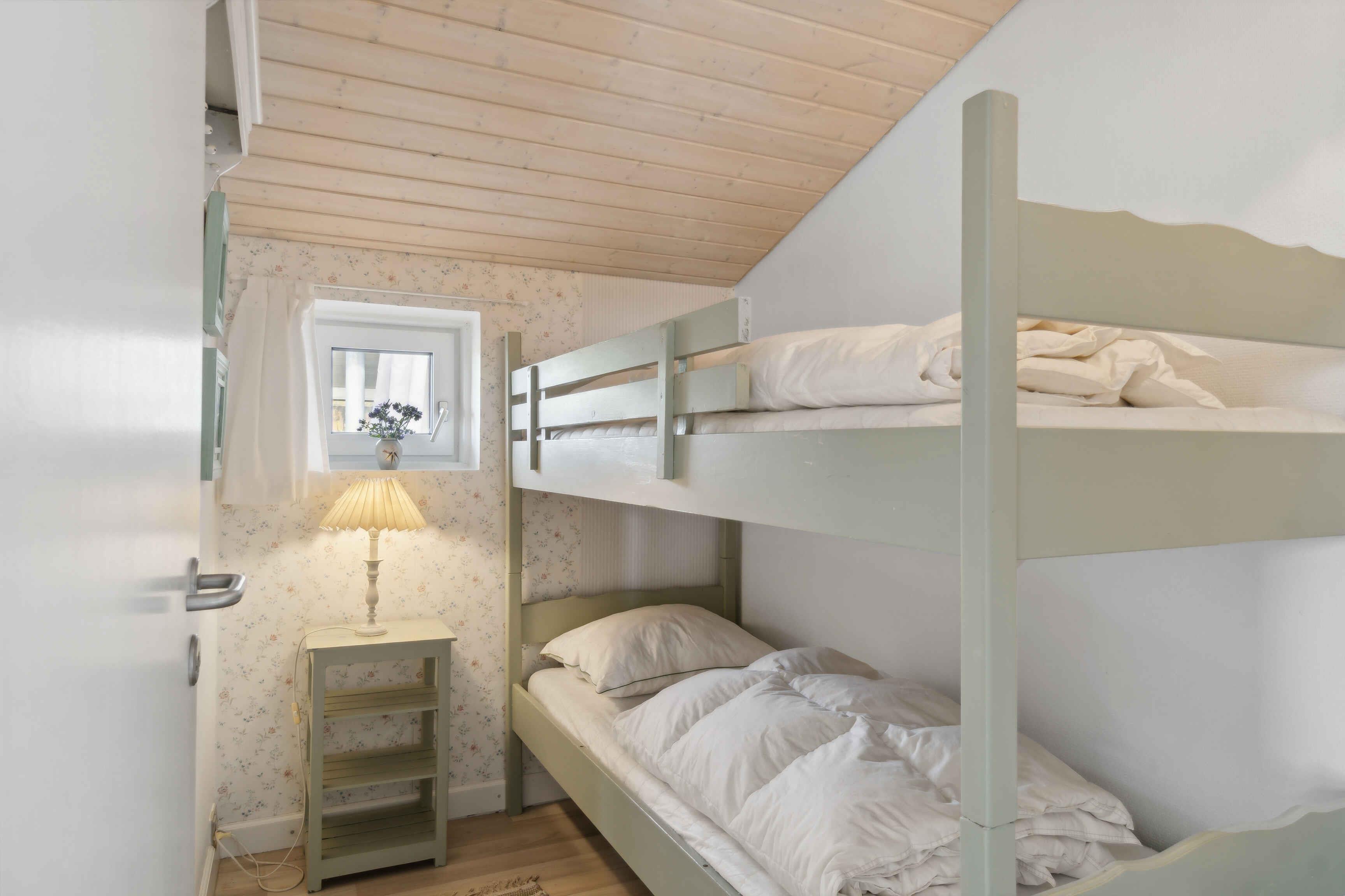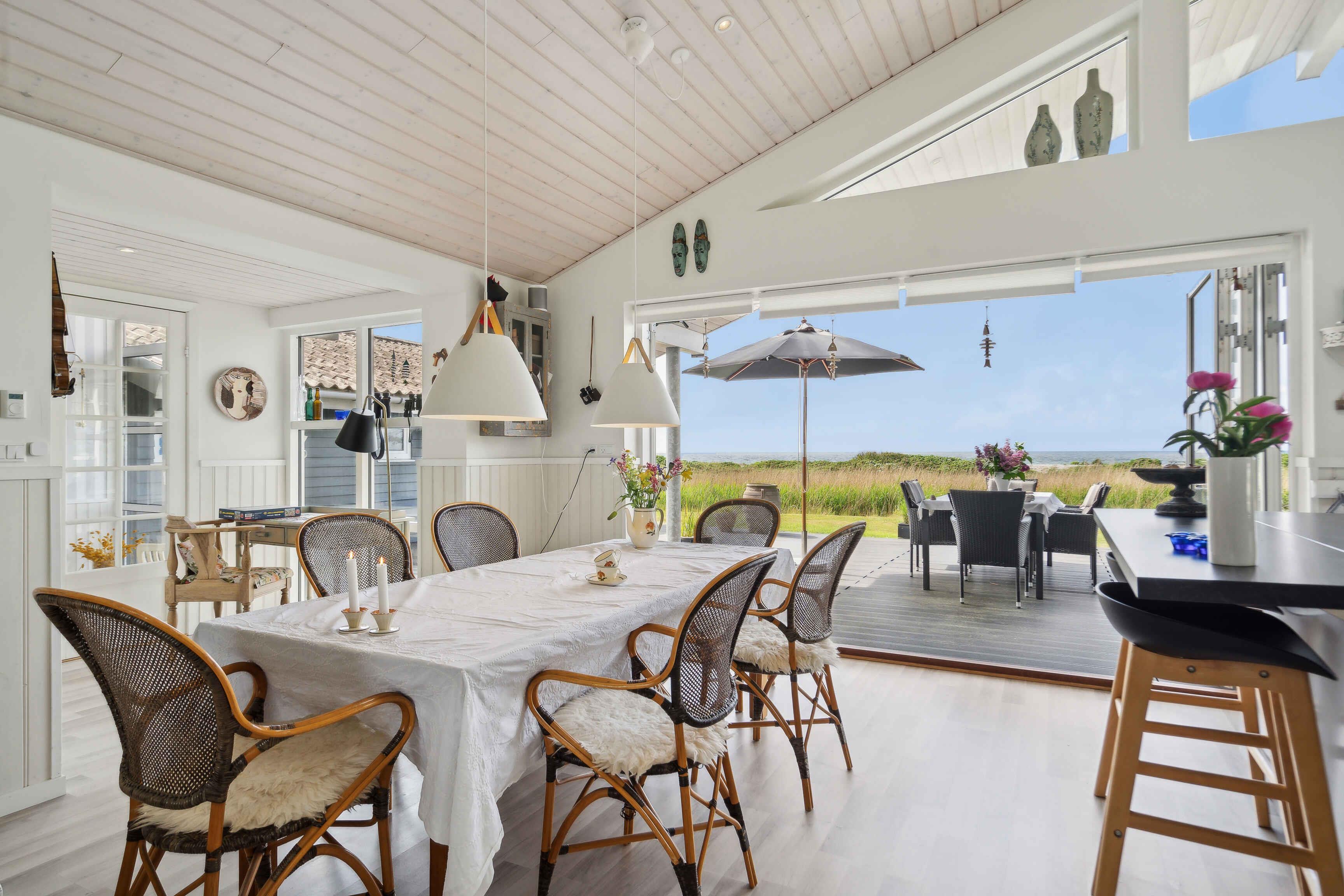 Dit unieke zomerhuis dicht bij Ebeltoft, gelegen in de allereerste rij en op 50 m van de zee, is de perfecte plek voor een ontspannen of actieve vakantie. Het huis is 140 m² en met meerdere slaapkamers is er volop ruimte voor maximaal 8 personen. Dit maakt het huis ideaal voor zowel grote gezinnen, meerdere generaties als groepen vrienden. Het huis presenteert zich in een prachtige blauwe kleur, die mooi samensmelt met de omliggende schilderachtige omgeving. De grote panoramische ramen en de ruime terrassen nodigen gasten uit om te genieten van het prachtige uitzicht op de zee en het omliggende landschap. Vanaf het terras heeft men bovendien uitzicht op speelruimtes, waar schommels, een trampoline, een zandbak en verschillende spellen optimale mogelijkheden bieden voor plezier voor alle generaties. Binnen biedt het zomerhuis een charmante inrichting, waar eigenzinnige vondsten van vlooienmarkten, moderne gemakken en een strandhotelsfeer het verblijf tot iets heel bijzonders maken. Het interieur is licht en uitnodigend met een grote open leefruimte, die een comfortabele woonkamer, eetruimte, een alkoof en een zolder ingericht voor kinderen omvat. De grote leefruimte kan worden geopend naar het 100 m2 grote terras, en de leefruimte bevat een volledig uitgeruste geïntegreerde keuken. Er zijn twee moderne badkamers. Het huis is ingericht in twee afdelingen, die de mogelijkheid bieden om zich in alle rust terug te trekken. De eigenaren van het huis hebben voldoende ruimte gecreëerd voor gasten en vertrouwen erop dat men goed zorgt voor de vele persoonlijke spullen in het huis. Dit zomerhuis is de perfecte toevluchtsoord voor degenen die willen genieten van de schilderachtige omgeving van Ebeltoft, die een bezoek aan de historische stad Ebeltoft met musea, een voetgangersgebied en de haven met zijn eigen charme biedt, waar vroege vogels de kans hebben om verse vis direct van de kotter Margrethe te kopen. Nationaal park Mols Bjerge biedt unieke natuur, en vanaf het zomerhuis kan men lange wandelingen langs het water maken. Men kan zich ook laten uitdagen op het nabijgelegen mountainbikepad of profiteren van de vele watersportmogelijkheden. Men kan ook gewoon genieten van het leven en de Deense zomer op het terras met een koele witte wijn en een vuurkorf. Tot slot kan men een duik nemen. Let op: Niet te huur voor commercieel gebruik.