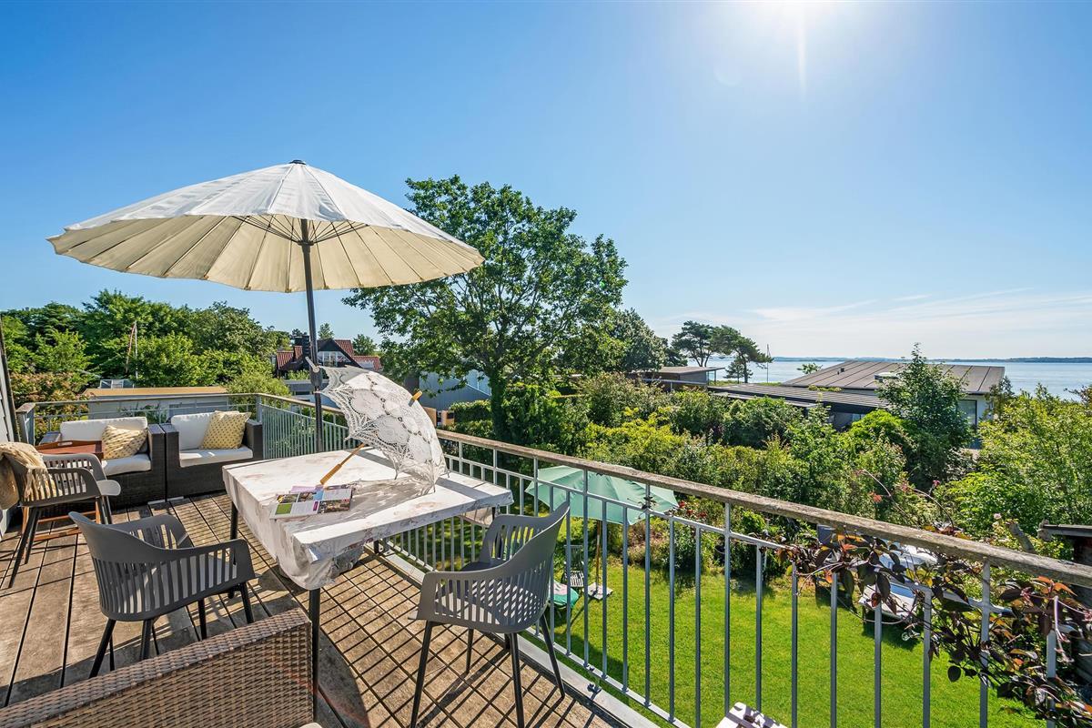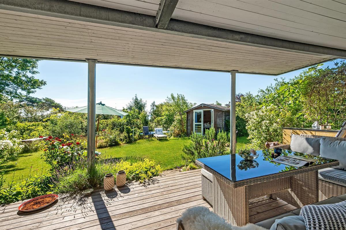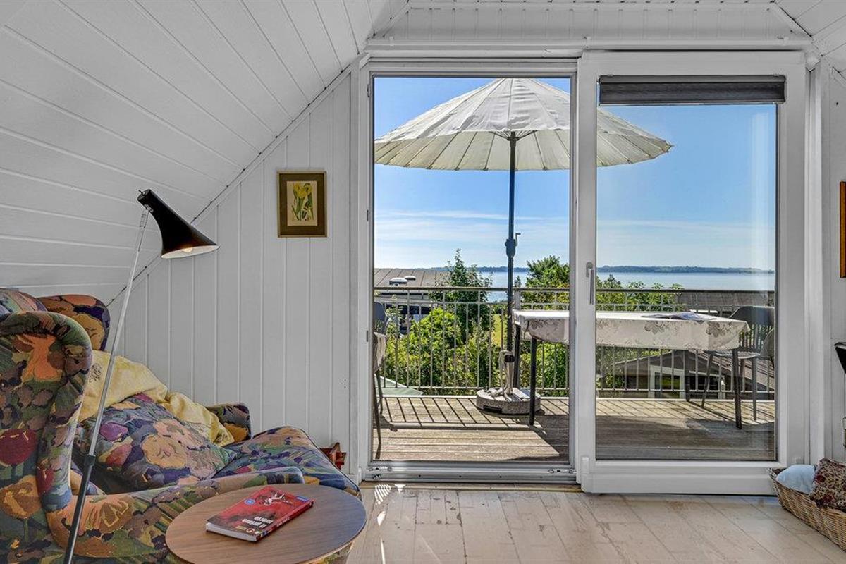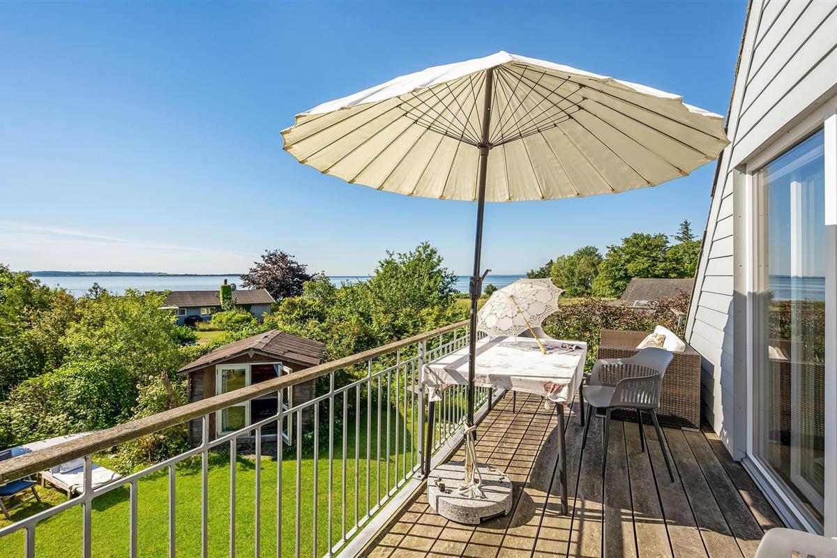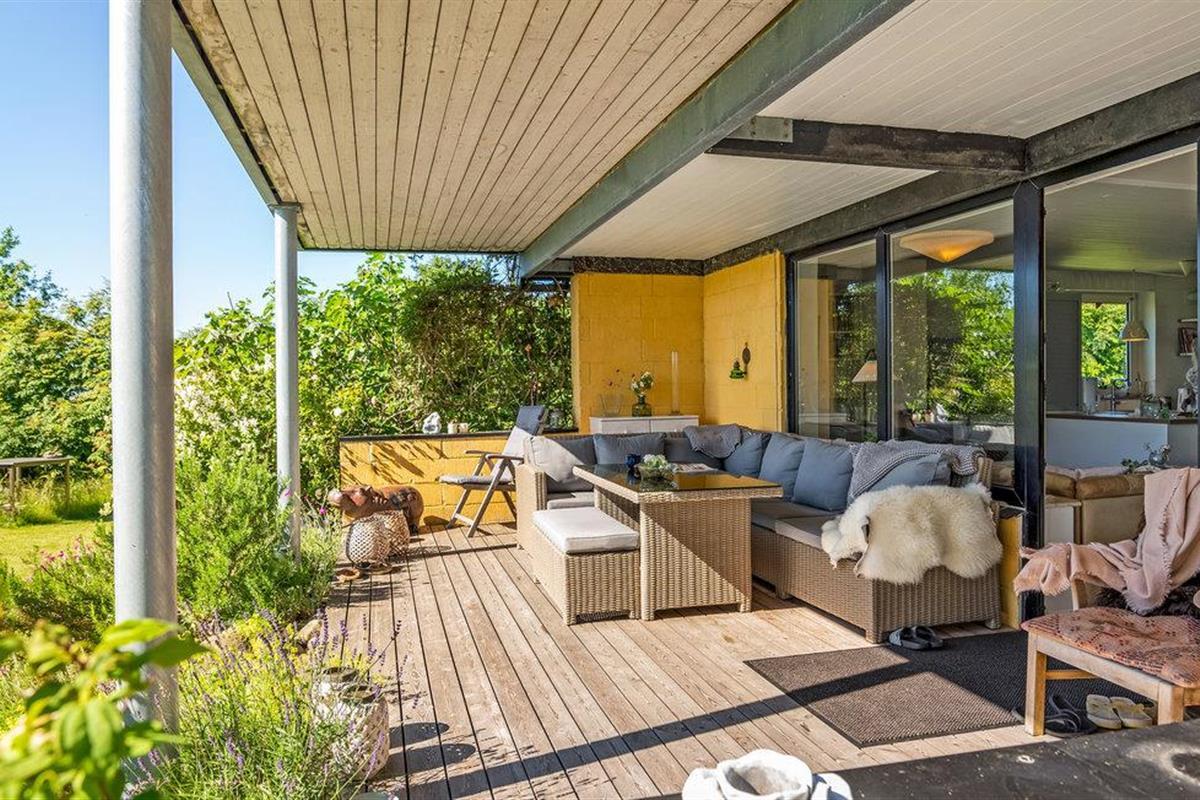 Bij zonnig weer kunt u zich terugtrekken op het terras, waar u misschien wel het beste kunt genieten van het hoogtepunt van het huis, namelijk het prachtige uitzicht op de baai van Aarhus en het prachtige kustlandschap van het schiereiland Mols. Als u ook op zomeravonden van de zon wilt genieten, heeft u natuurlijk ook de mogelijkheid om de dag mooi af te sluiten op het overdekte terras aan de andere kant van het huis.