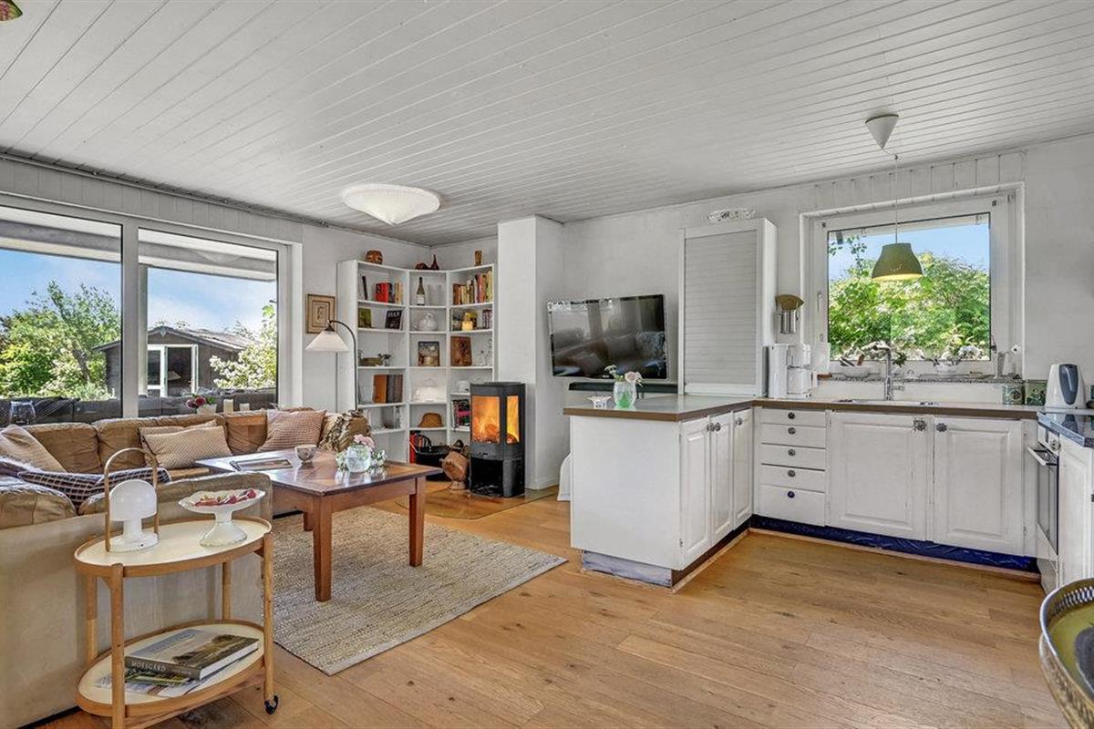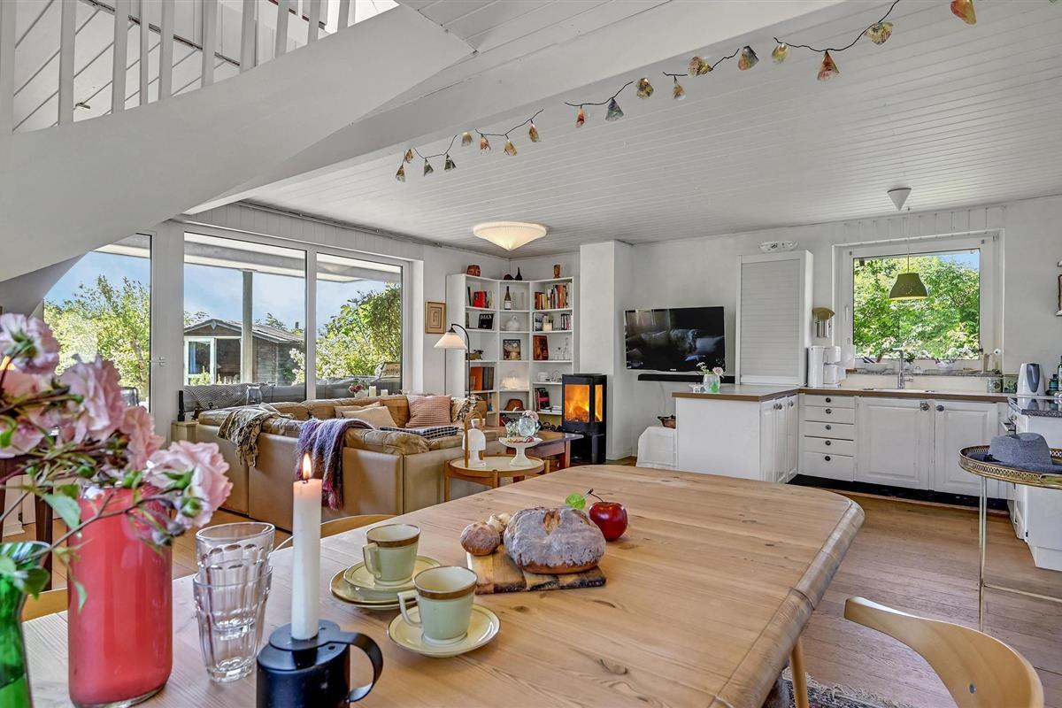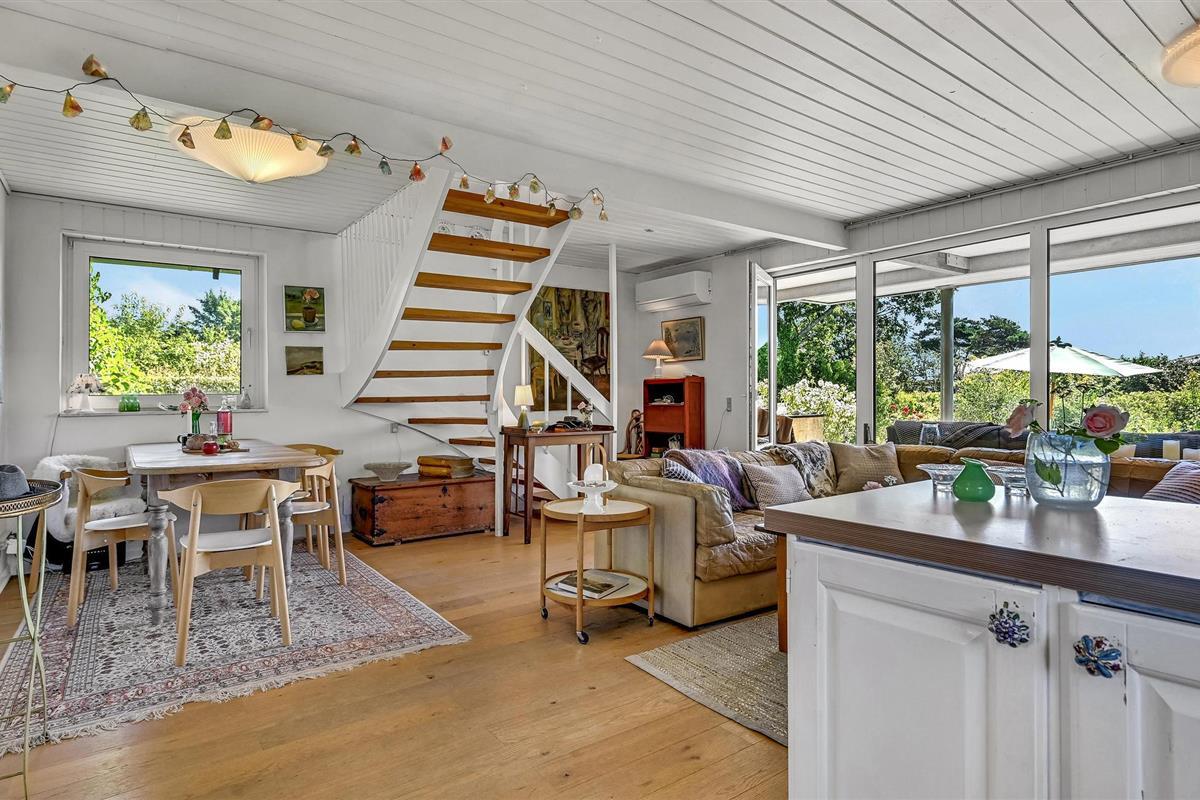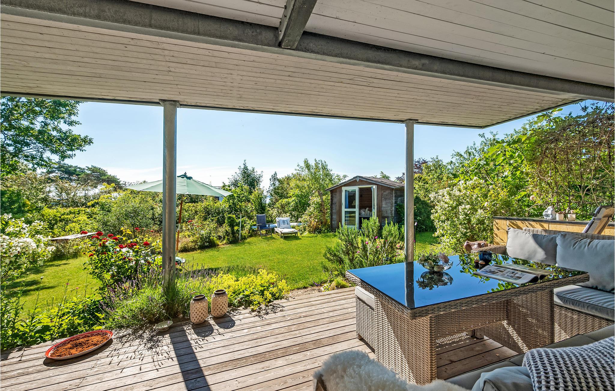 Bij zonnig weer kunt u zich terugtrekken op het terras, waar u misschien wel het beste kunt genieten van het hoogtepunt van het huis, namelijk het prachtige uitzicht op de baai van Aarhus en het prachtige kustlandschap van het schiereiland Mols. Als u ook op zomeravonden van de zon wilt genieten, heeft u natuurlijk ook de mogelijkheid om de dag mooi af te sluiten op het overdekte terras aan de andere kant van het huis.