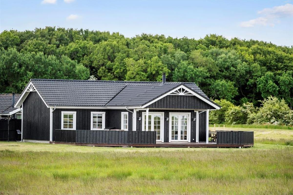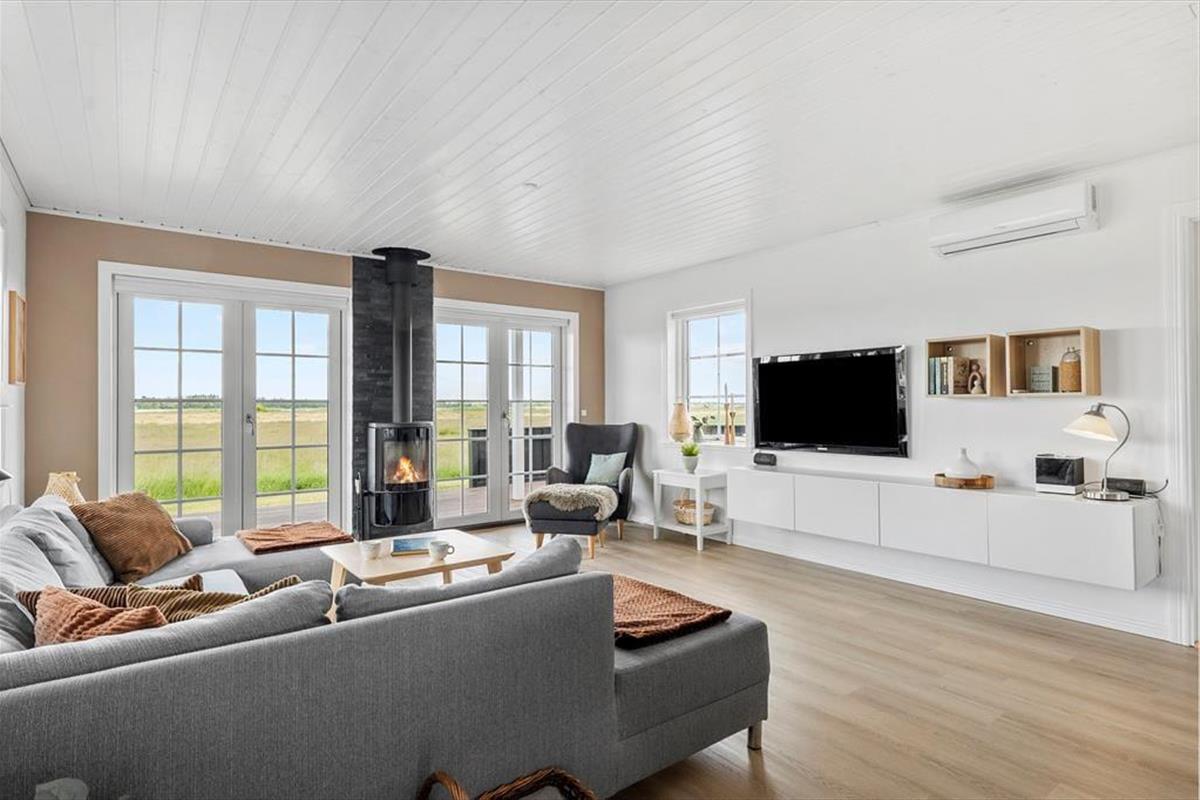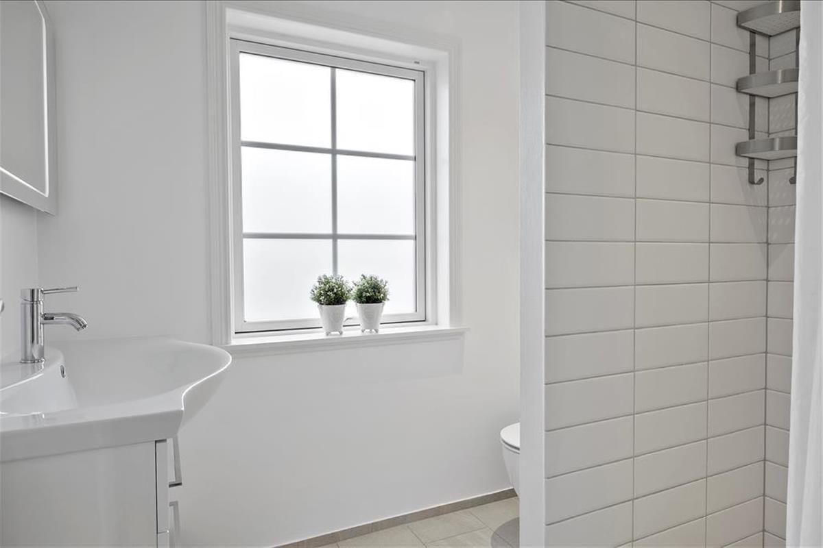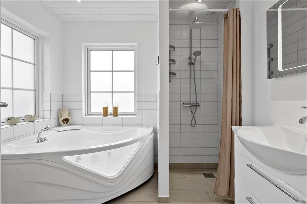 Huset fremstår meget lyst og romantisk. Her er simpelthen tænkt på det hele. Huset byder på tre soveværelser, hvor to af dem er med en trekvart seng, et med køjesenge og på det sidste værelse er der dobbeltseng. Der er to badeværelser, det ene med toilet og spa samt bruser, det fremstår i smuk skandinavisk stil; elegant og samtidig enkelt, og her oser af wellness. Det andet badeværelse har brusekabine og toilet. Stilener gennemgående smuk og skandinavisk i huset og huset byder på en afslappende stemning i stuen, hvor der er rigeligt plads til alle. Man kan have skønne hyggeaftener foran brændeovnen, eller hygge med en god film i det hyggelige sofahjørne Eller bare sidde og nyde den smukke udsigt over vandet. Det åbne køkken er en integreret del af stuen og det bliver nemt samlingspunktet for familien. Fra køkkenet er der udgang til en terrasse der løber hele vejen omkring huset og her kan man nyde udsigten over den store grund. Dette er et hus, hvor du med garanti vil føle dig godt tilpas fra første øjeblik.