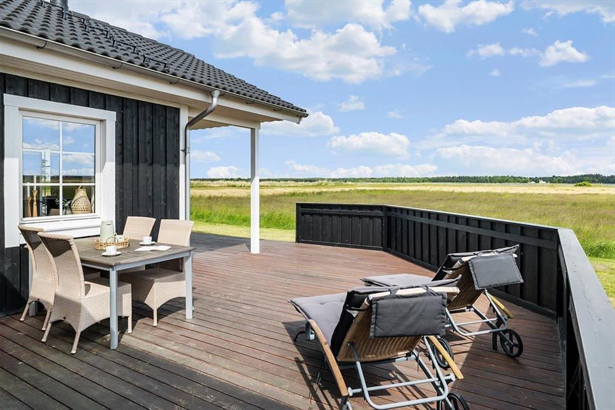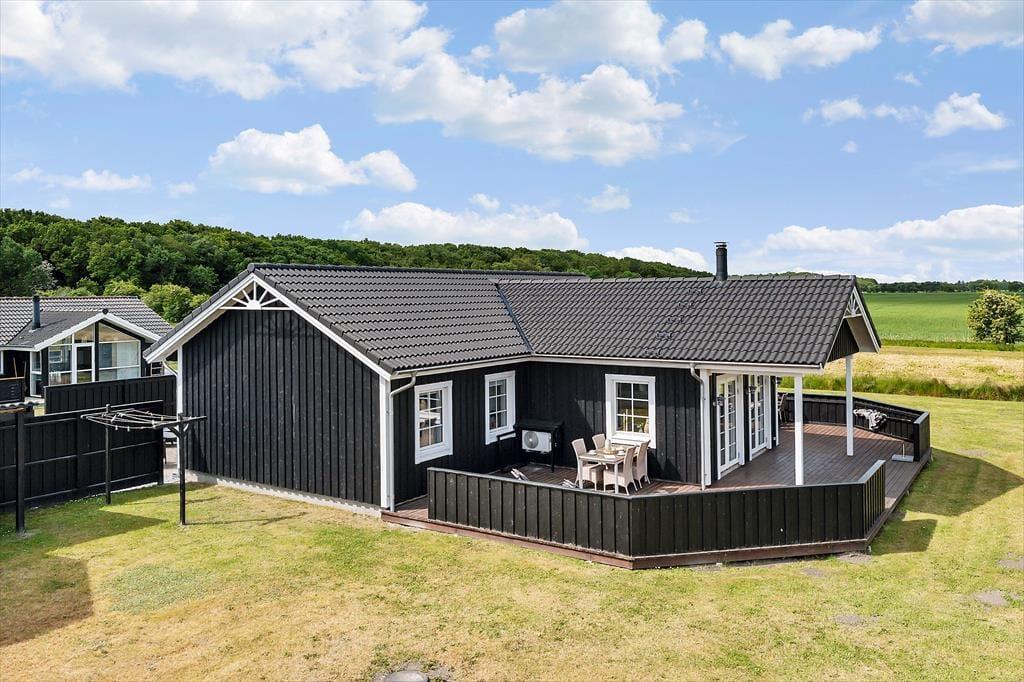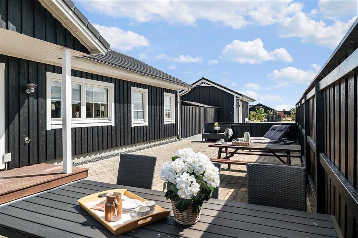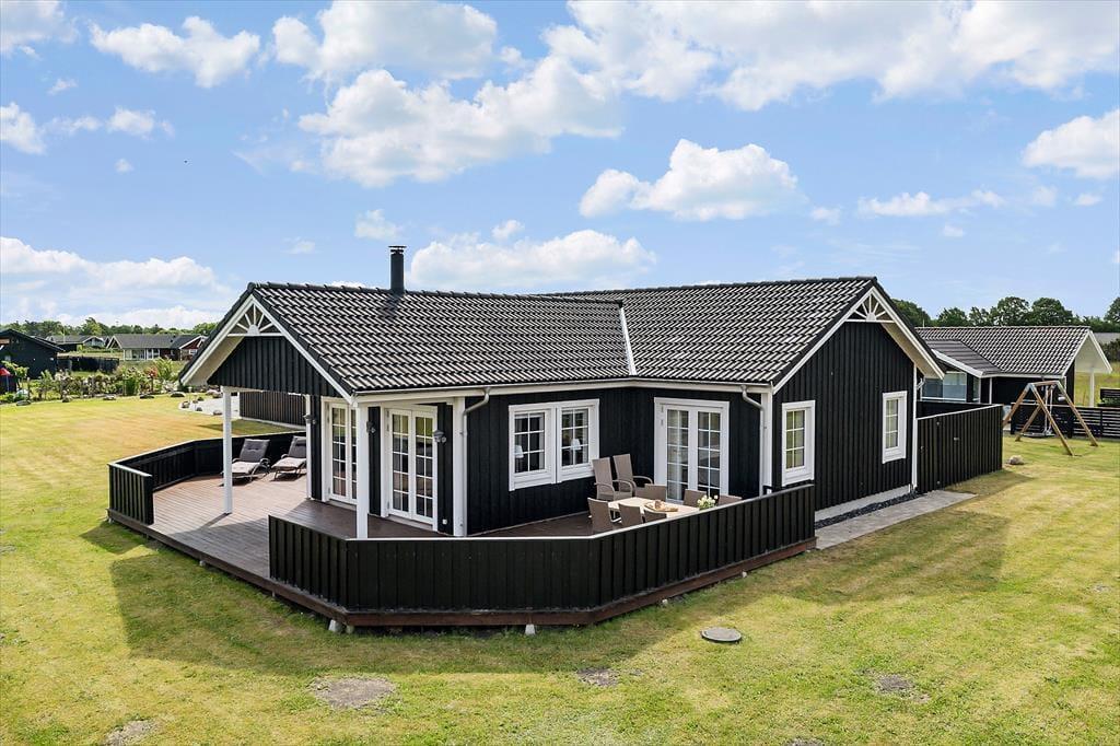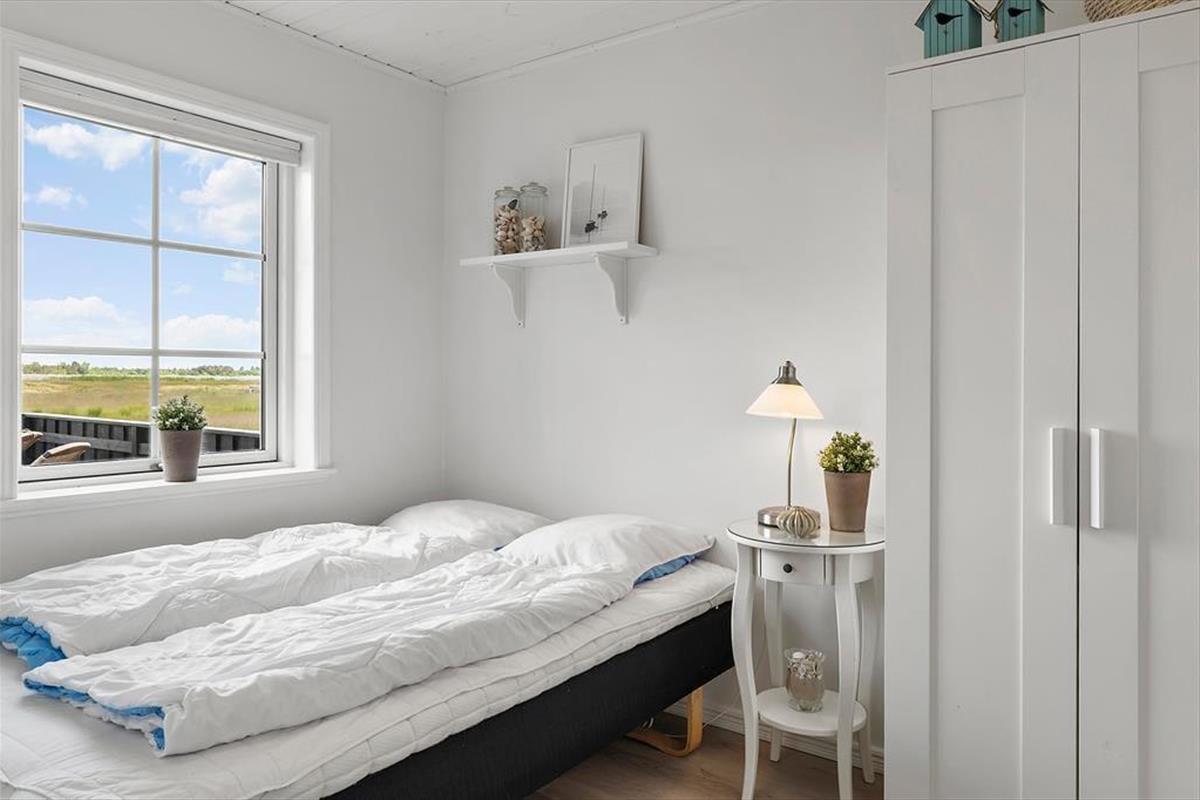 Huset fremstår meget lyst og romantisk. Her er simpelthen tænkt på det hele. Huset byder på tre soveværelser, hvor to af dem er med en trekvart seng, et med køjesenge og på det sidste værelse er der dobbeltseng. Der er to badeværelser, det ene med toilet og spa samt bruser, det fremstår i smuk skandinavisk stil; elegant og samtidig enkelt, og her oser af wellness. Det andet badeværelse har brusekabine og toilet. Stilener gennemgående smuk og skandinavisk i huset og huset byder på en afslappende stemning i stuen, hvor der er rigeligt plads til alle. Man kan have skønne hyggeaftener foran brændeovnen, eller hygge med en god film i det hyggelige sofahjørne Eller bare sidde og nyde den smukke udsigt over vandet. Det åbne køkken er en integreret del af stuen og det bliver nemt samlingspunktet for familien. Fra køkkenet er der udgang til en terrasse der løber hele vejen omkring huset og her kan man nyde udsigten over den store grund. Dette er et hus, hvor du med garanti vil føle dig godt tilpas fra første øjeblik.