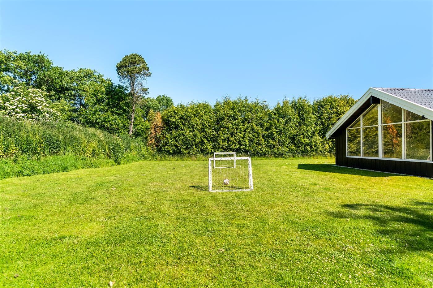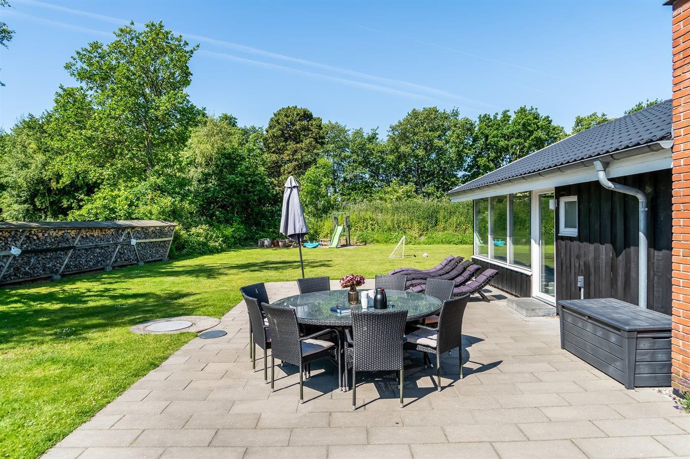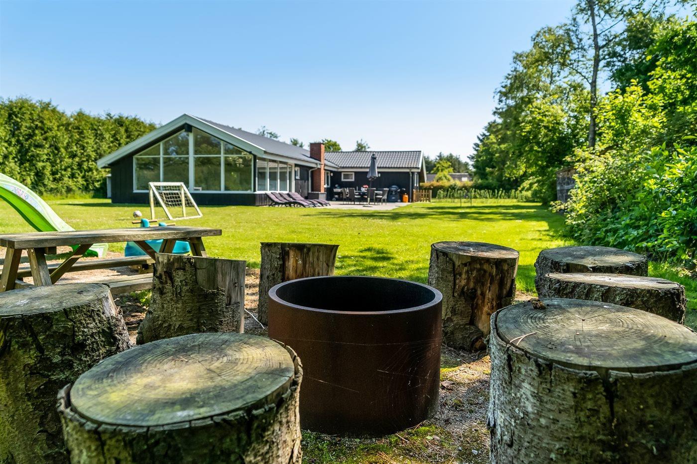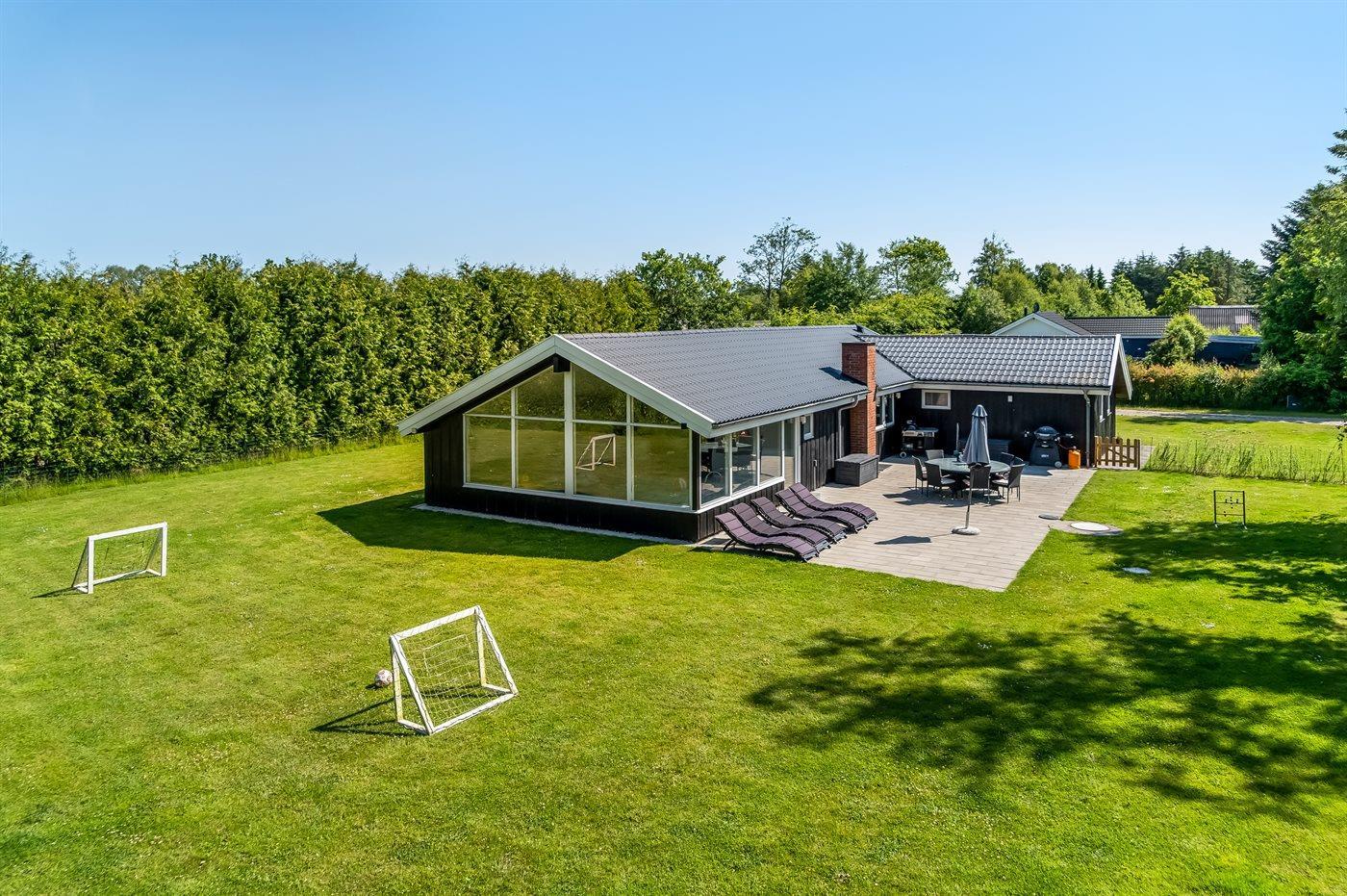 De vakantiewoning is gelegen op een 1500 m² groot aangelegde tuin. De grond is omheind. Afstand tot de zee 1300 m. Afstand tot de fjord 700 m. Dichtstbijzijnde winkel 650 m. Bij de vakantiewoning hoort 100 m² terras. Gereedschapsruimte. Zandbak. Voetbaldoel.Vuurplaats. Barbecue. Het huis heeft een stopcontact voor het opladen van een elektrische auto. Parkeerplaats bij het huis.