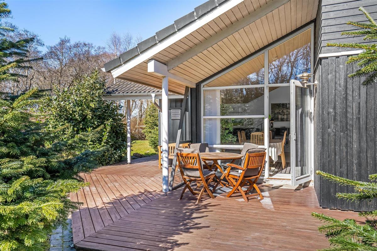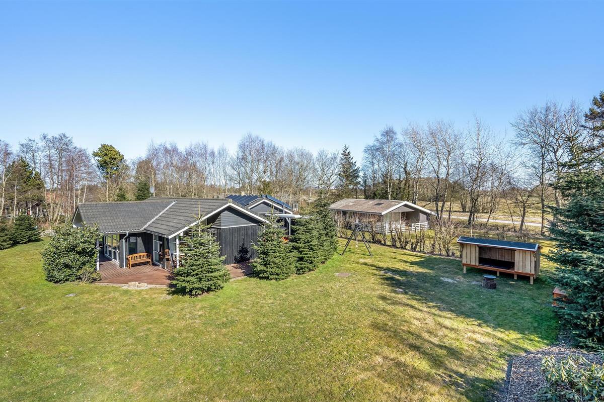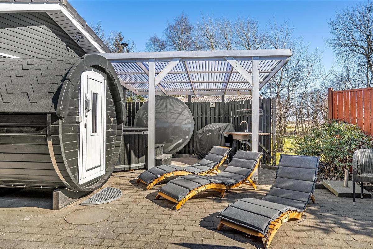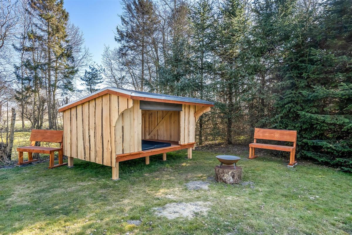 Terrassen leiden rond een groot deel van het huis en vanaf 2020 verbindt een zonnige binnenplaats het hoofdgebouw met de activiteitenruimte. De binnenplaats is een echte openlucht wellnessruimte met een saunabad en een Wildmarks bad voor zes personen. Heb je ooit in de vrieskou onder een sterrenhemel in een warm bad gelegen? Dat is een onbeschrijflijk goed gevoel. U kunt ook overnachten in de open lucht in de typisch Deense schuilkelder.