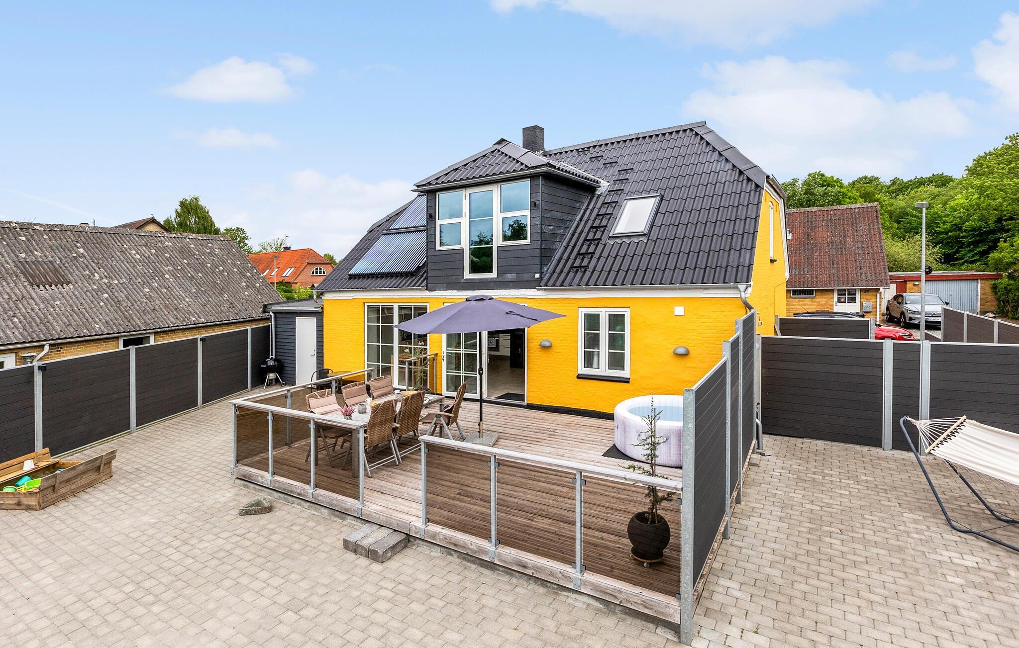 Ontdek dit ruim, energiezuinig vakantiehuis met hot tub en prachtig uitzicht in het zuiden van Denemarken.