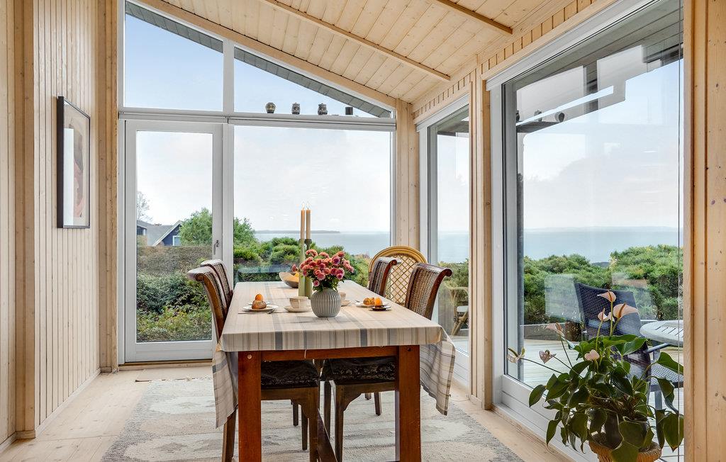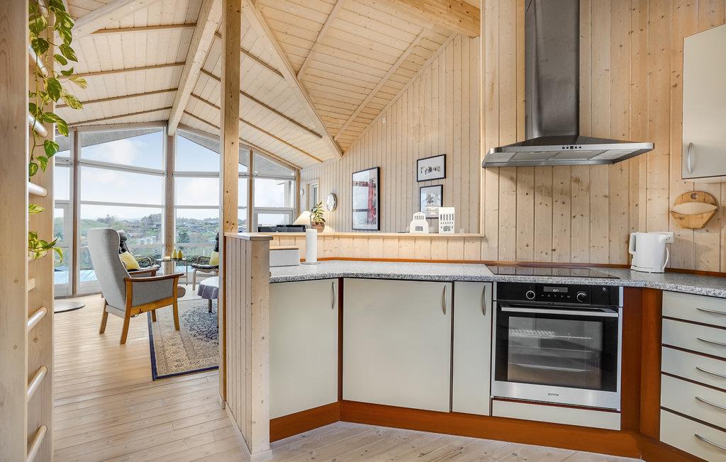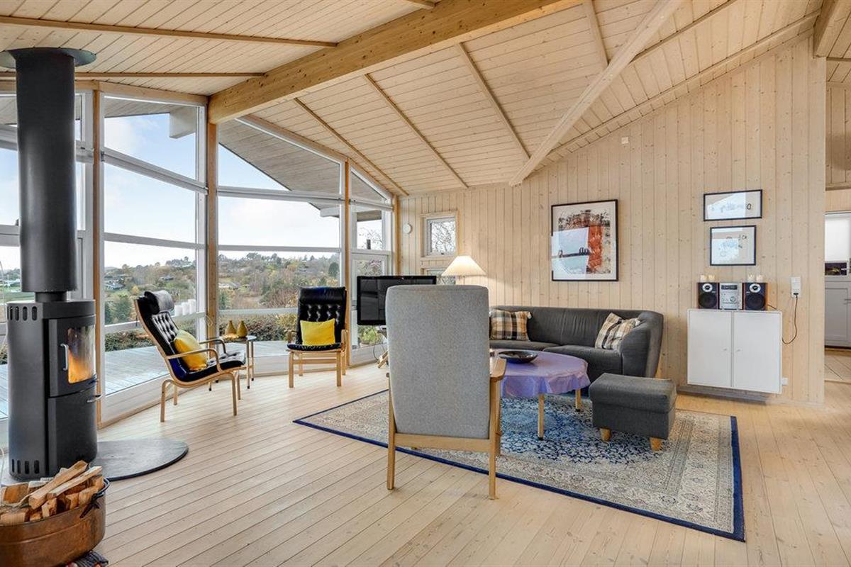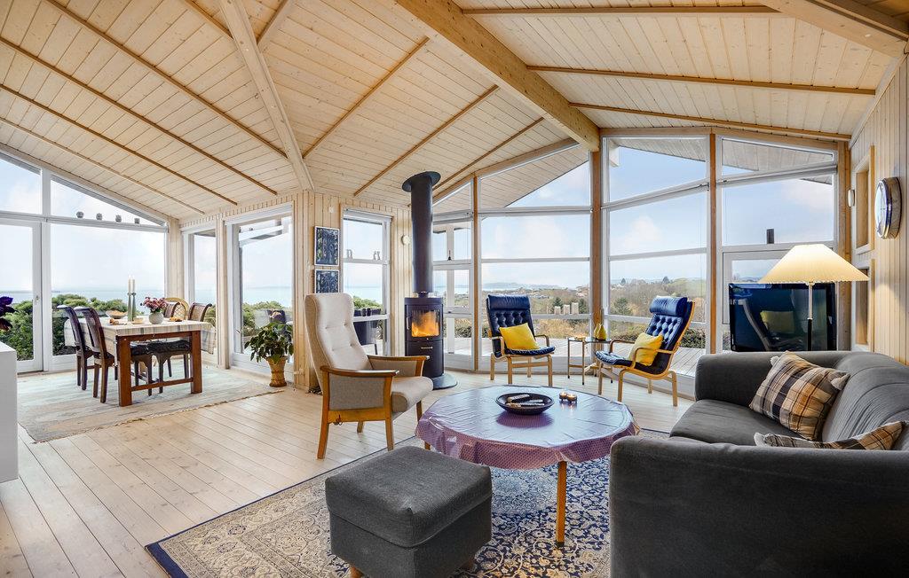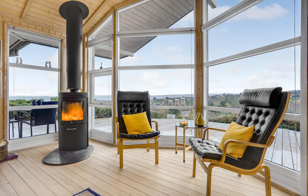 Dit prachtige en licht ingerichte houten huis nodigt u uit voor een aangename vakantie in een prachtige omgeving. In de goed uitgeruste keuken kunt u culinair genieten zonder het gezelschap van de andere gasten te hoeven missen, die het zich comfortabel kunnen maken in de gestoffeerde meubels. De hele woonkamer heeft panoramische ramen, zodat u kunt genieten van een ontbijt of diner met een prachtig uitzicht op zee. Deze kamer is helemaal open tot aan de gevel en heeft een prachtig houten plafond, wat zorgt voor een zeer open sfeer. Leg uw voeten omhoog in de bank na een lange dag in de frisse lucht en sluit de dag af met een glas wijn. In de winter kunt u zich natuurlijk ook warmen bij de open haard.