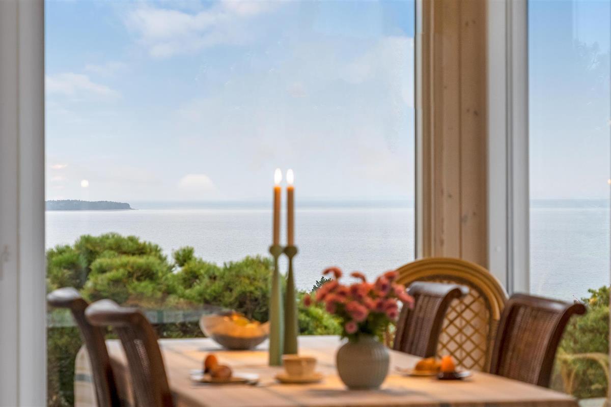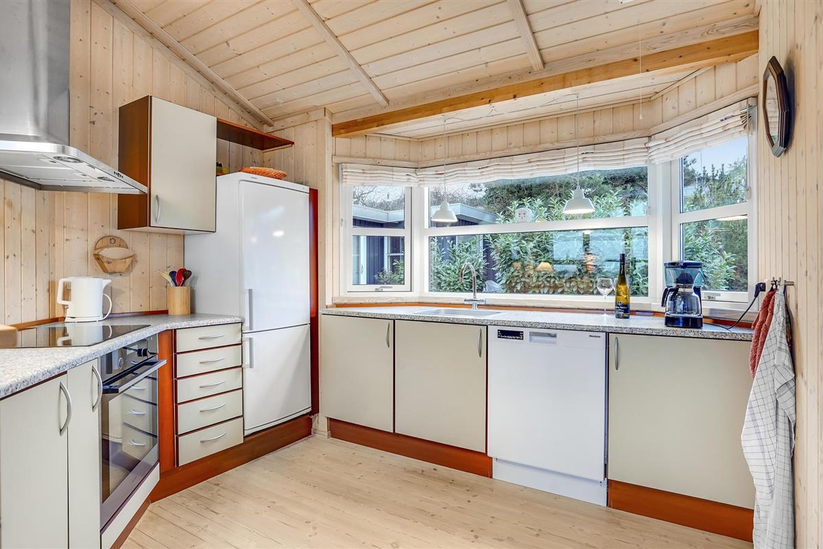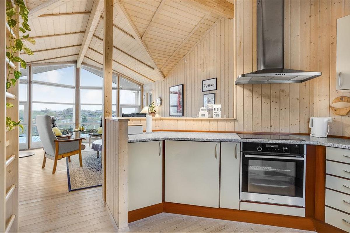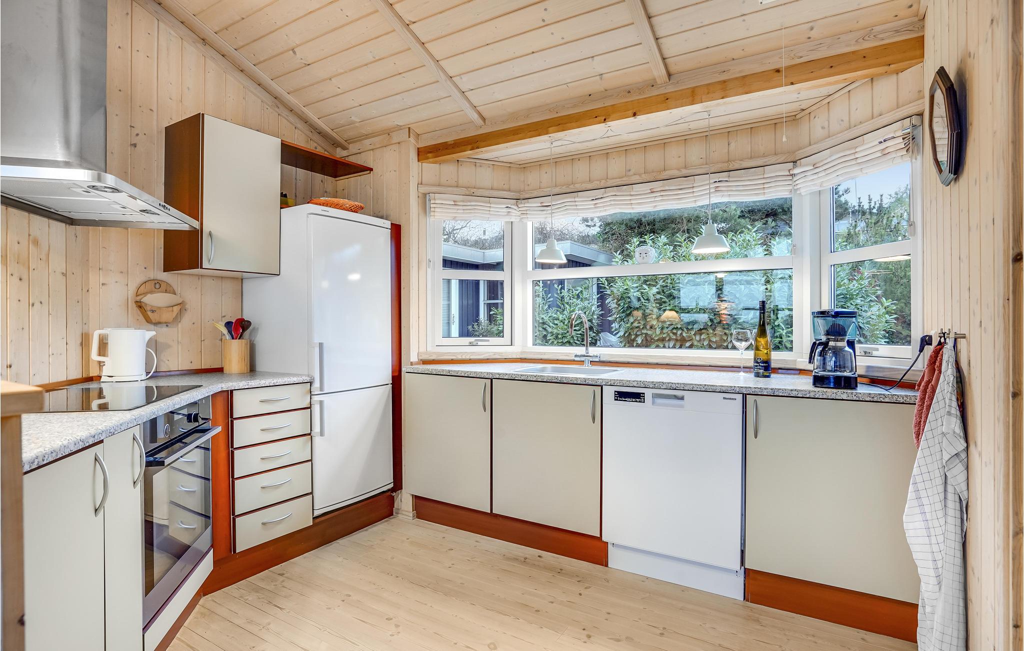 Dit prachtige en licht ingerichte houten huis nodigt u uit voor een aangename vakantie in een prachtige omgeving. In de goed uitgeruste keuken kunt u culinair genieten zonder het gezelschap van de andere gasten te hoeven missen, die het zich comfortabel kunnen maken in de gestoffeerde meubels. De hele woonkamer heeft panoramische ramen, zodat u kunt genieten van een ontbijt of diner met een prachtig uitzicht op zee. Deze kamer is helemaal open tot aan de gevel en heeft een prachtig houten plafond, wat zorgt voor een zeer open sfeer. Leg uw voeten omhoog in de bank na een lange dag in de frisse lucht en sluit de dag af met een glas wijn. In de winter kunt u zich natuurlijk ook warmen bij de open haard.