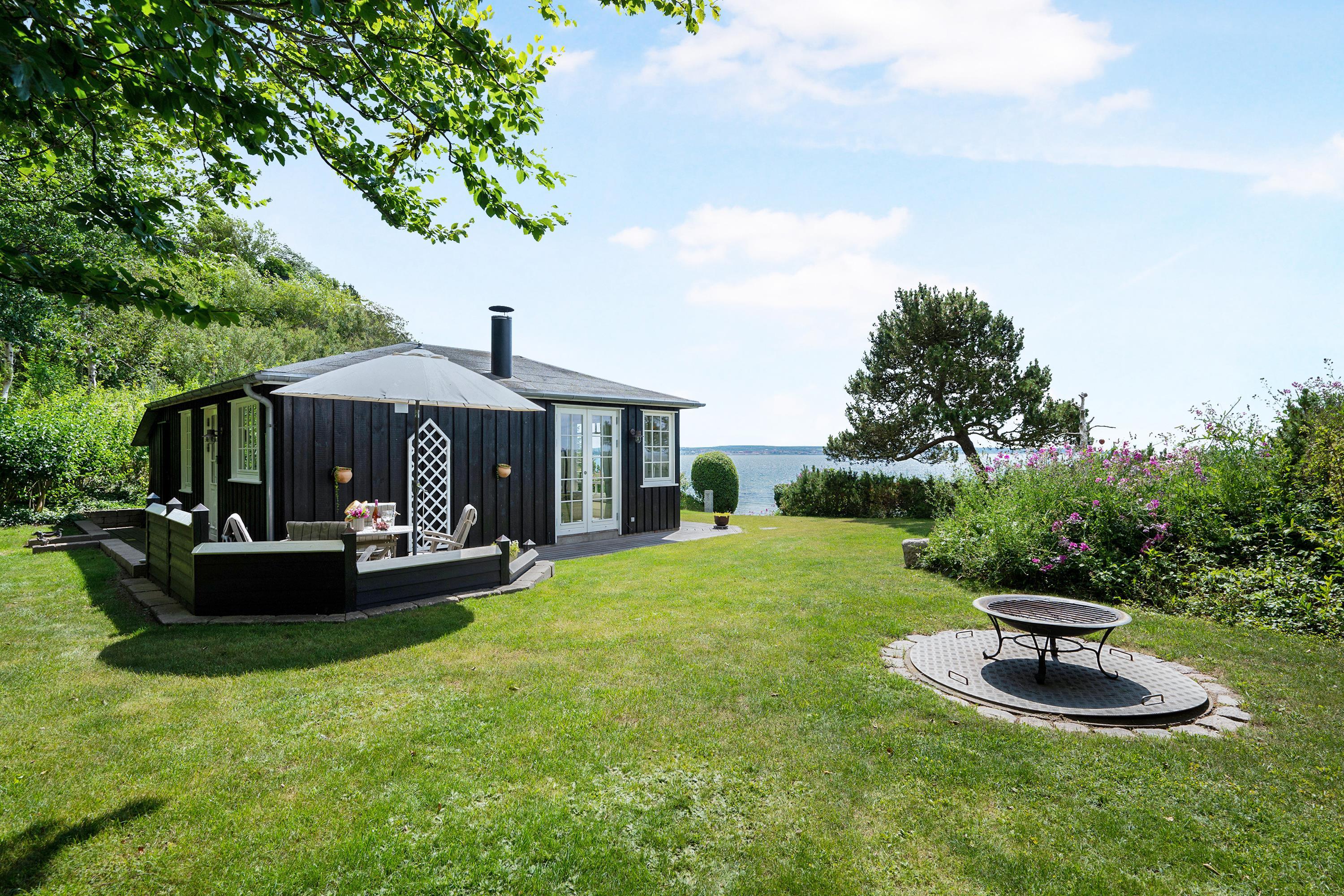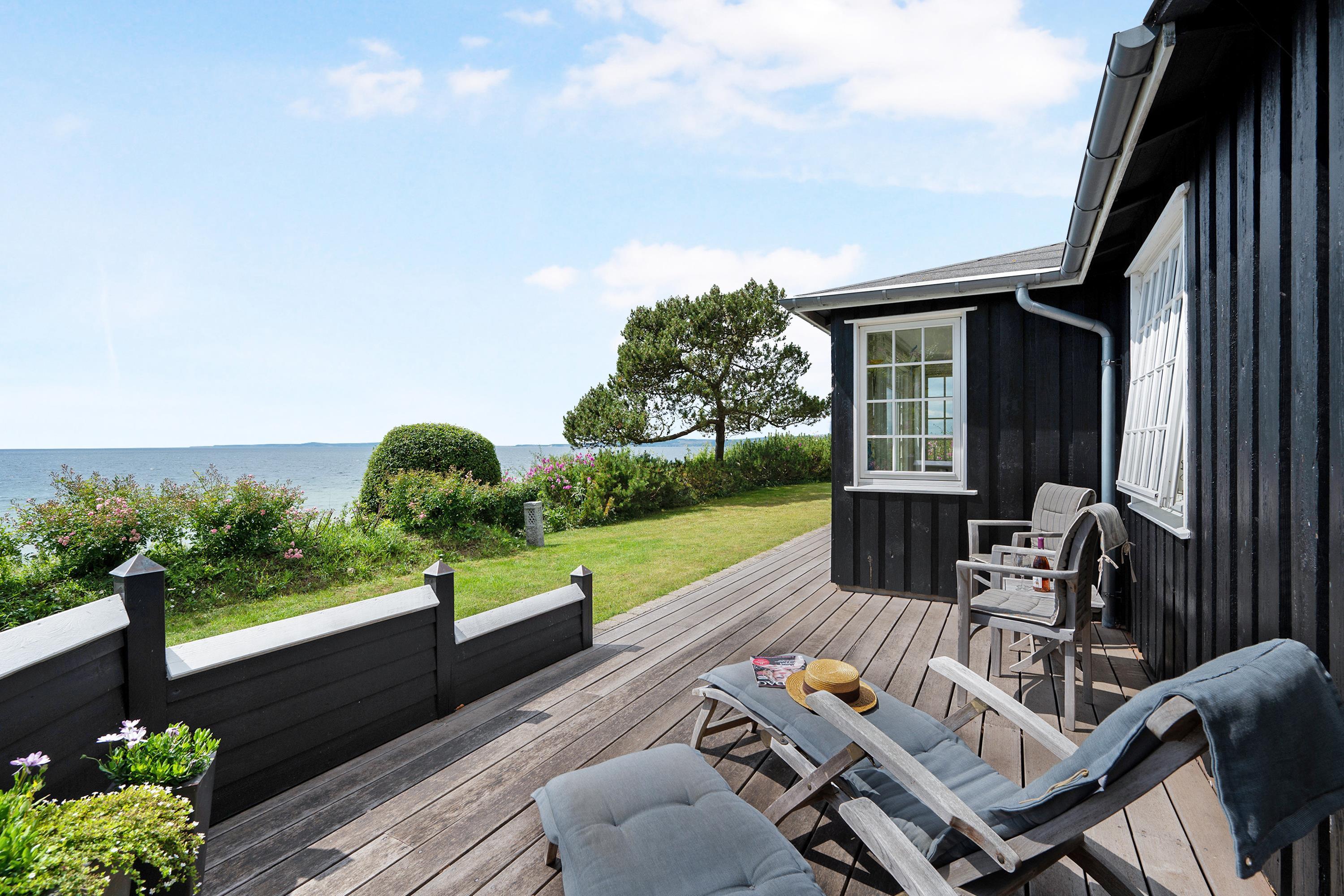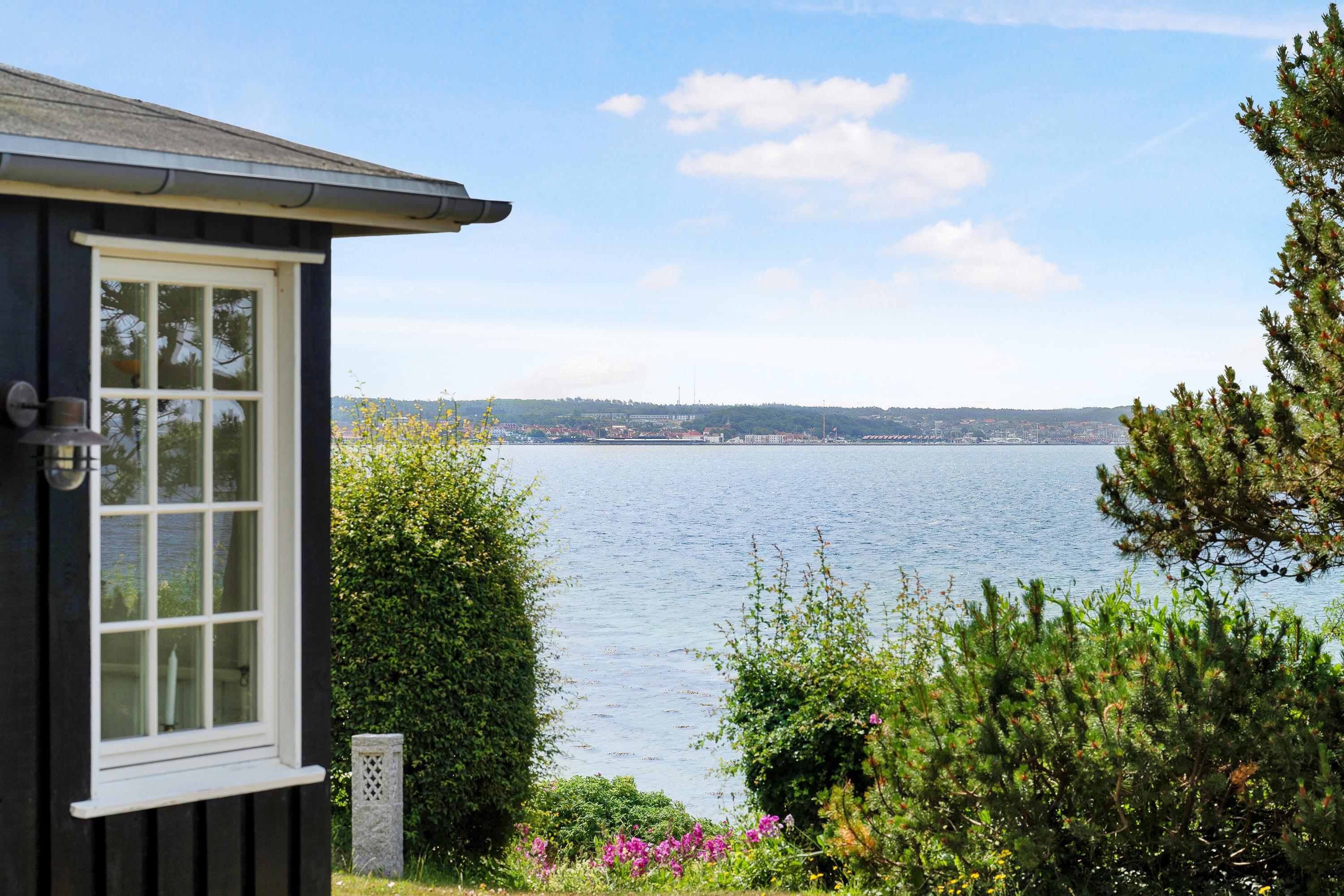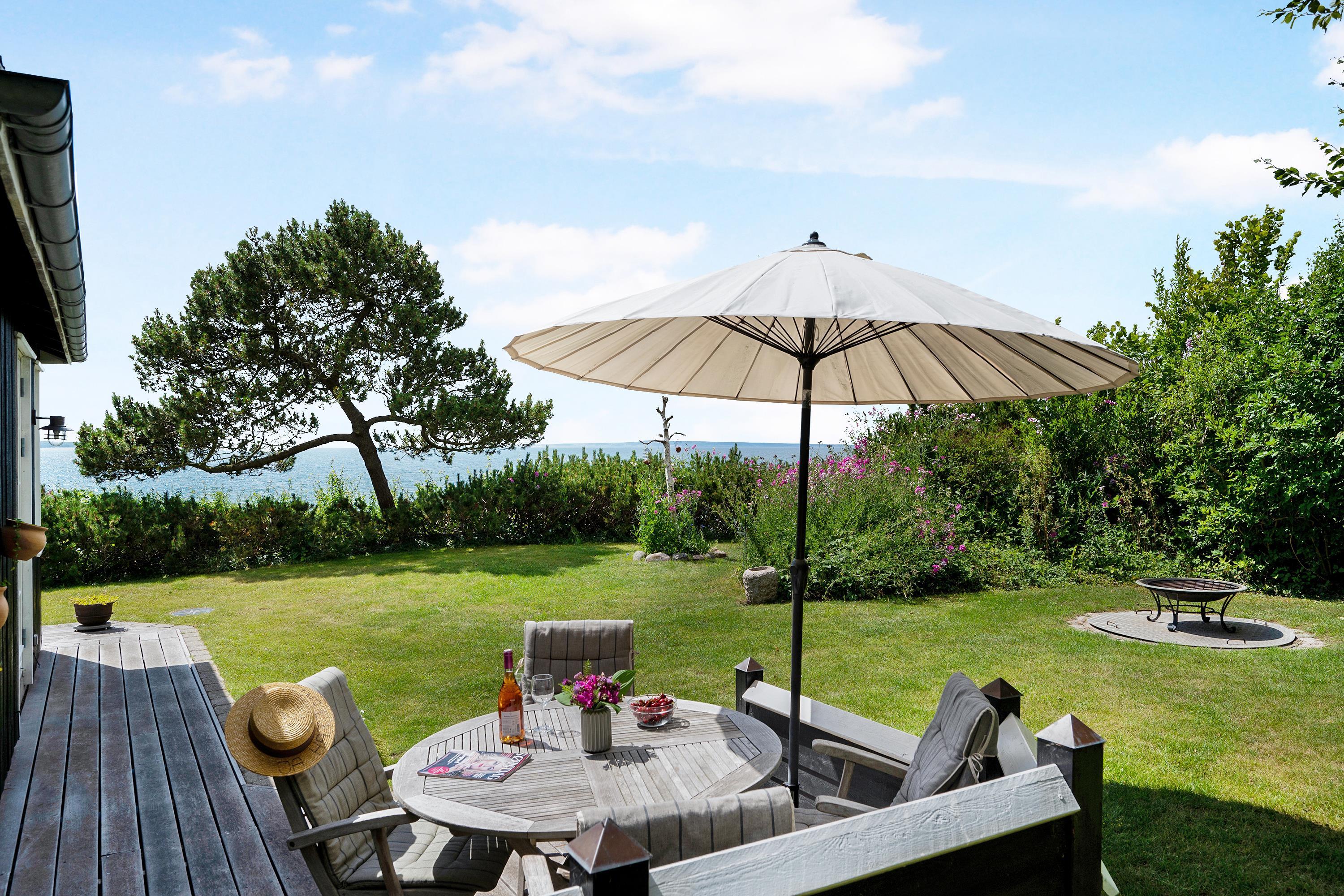 The sleeping arrangements are in two bedrooms, one with a double bed and one with two single beds. Whether you're in the living room or kitchen, you will enjoy the stunning sea view through the large panoramic window in the living room. The house is situated on a meticulously maintained plot with several lovely terraces and cozy corners. The property also features a charming bonfire pit, perfect for roasting marshmallows on a warm summer evening while watching the sun set over the bay and Mols Bjerge. Please note, the house is not suitable for those with mobility issues.