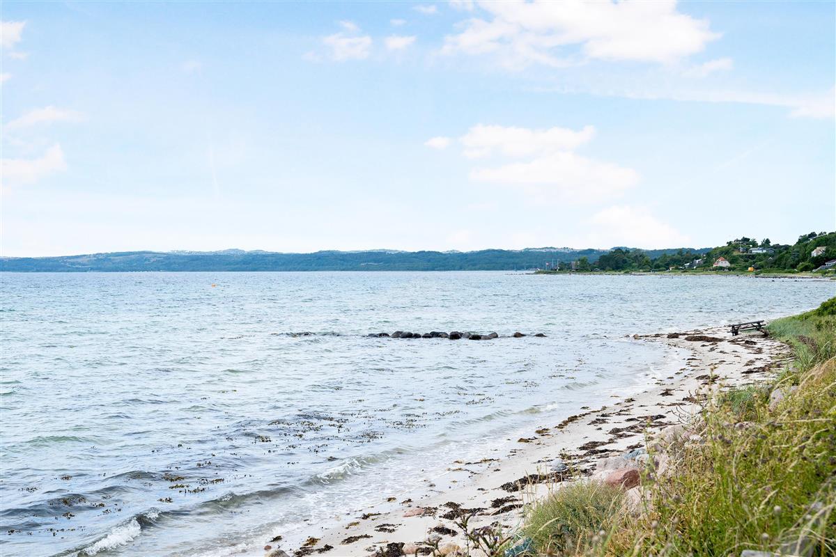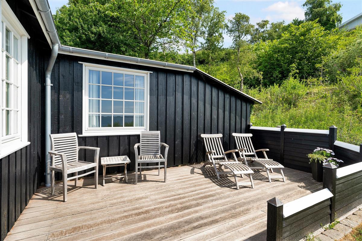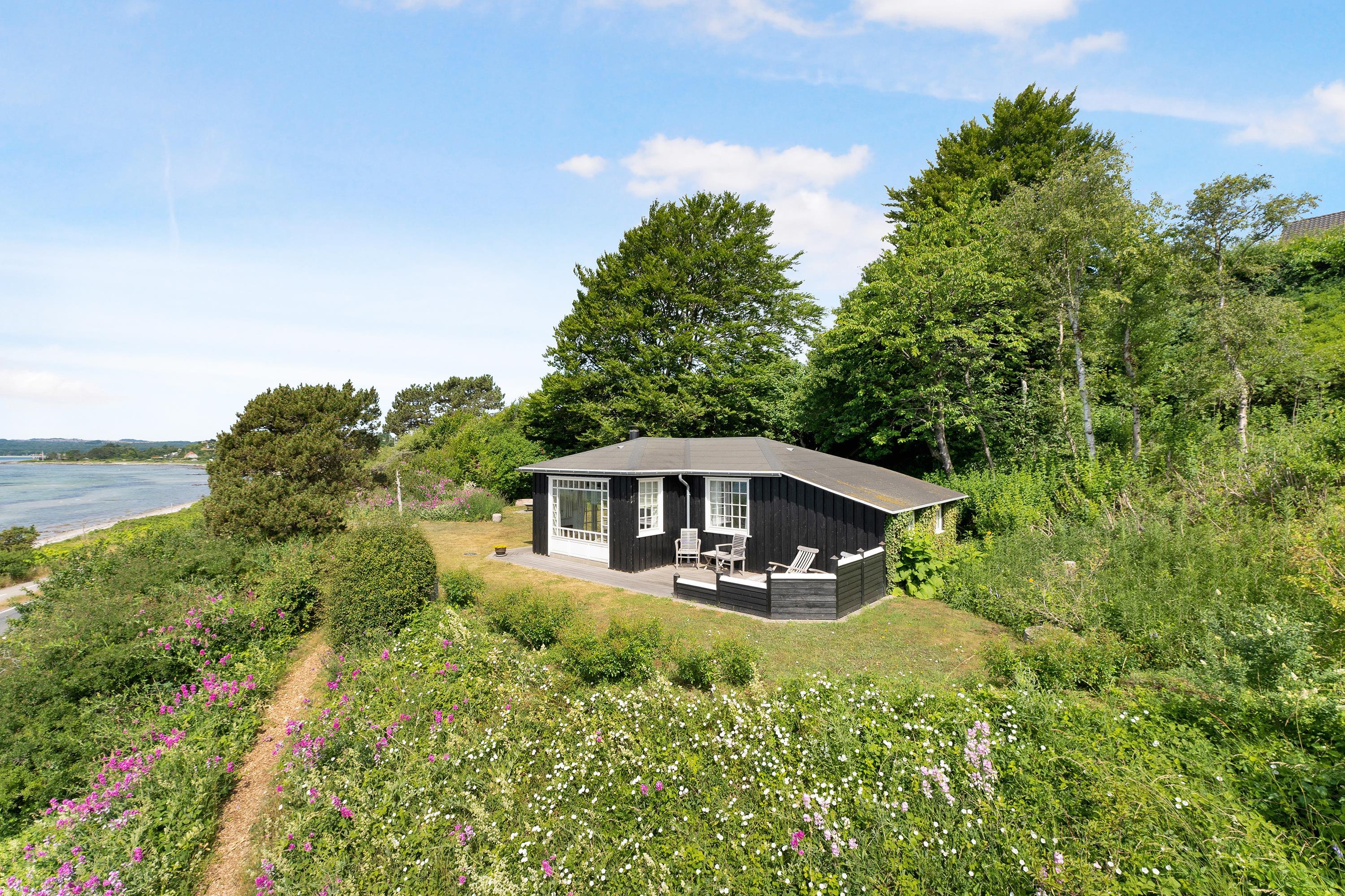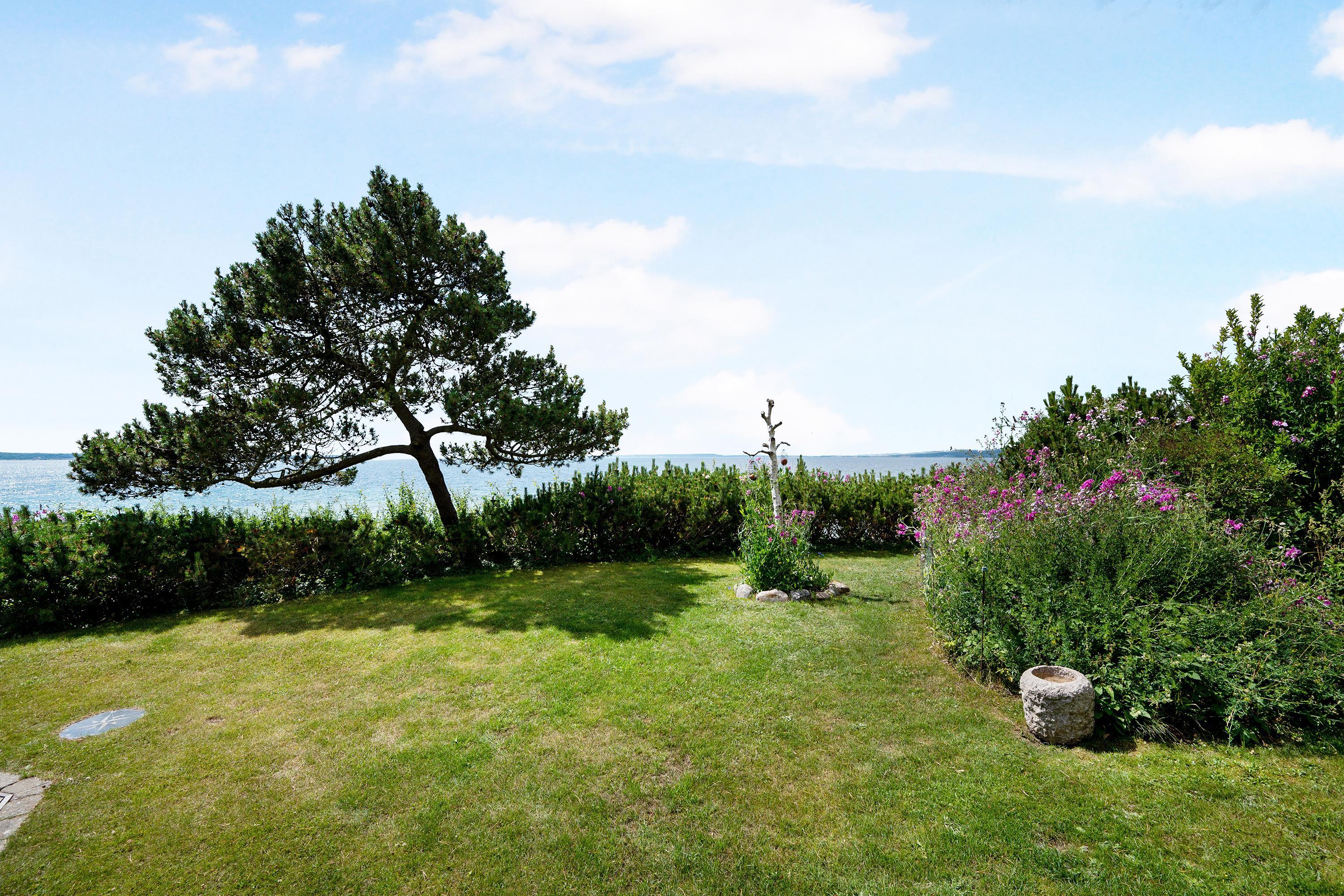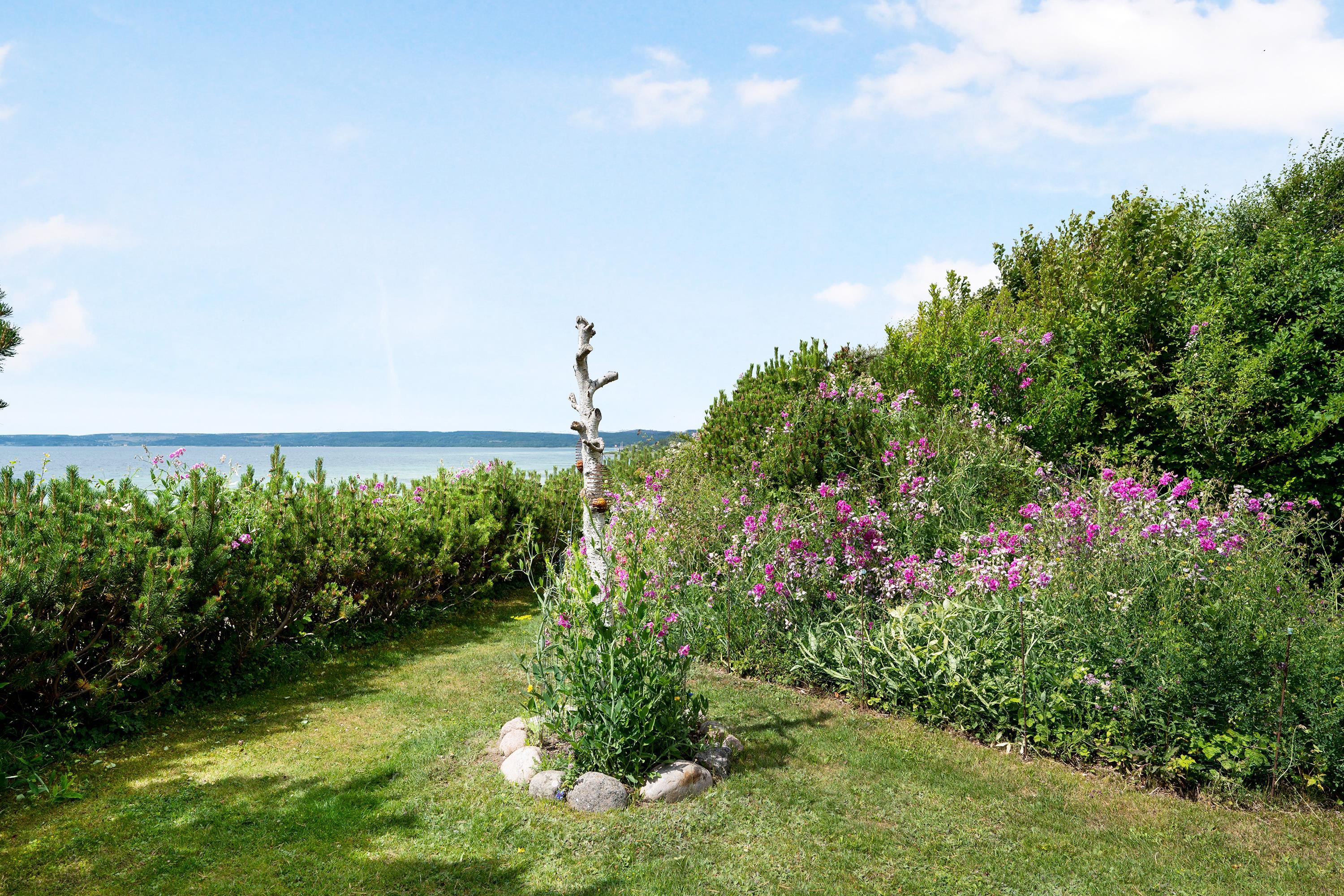 The sleeping arrangements are in two bedrooms, one with a double bed and one with two single beds. Whether you're in the living room or kitchen, you will enjoy the stunning sea view through the large panoramic window in the living room. The house is situated on a meticulously maintained plot with several lovely terraces and cozy corners. The property also features a charming bonfire pit, perfect for roasting marshmallows on a warm summer evening while watching the sun set over the bay and Mols Bjerge. Please note, the house is not suitable for those with mobility issues.