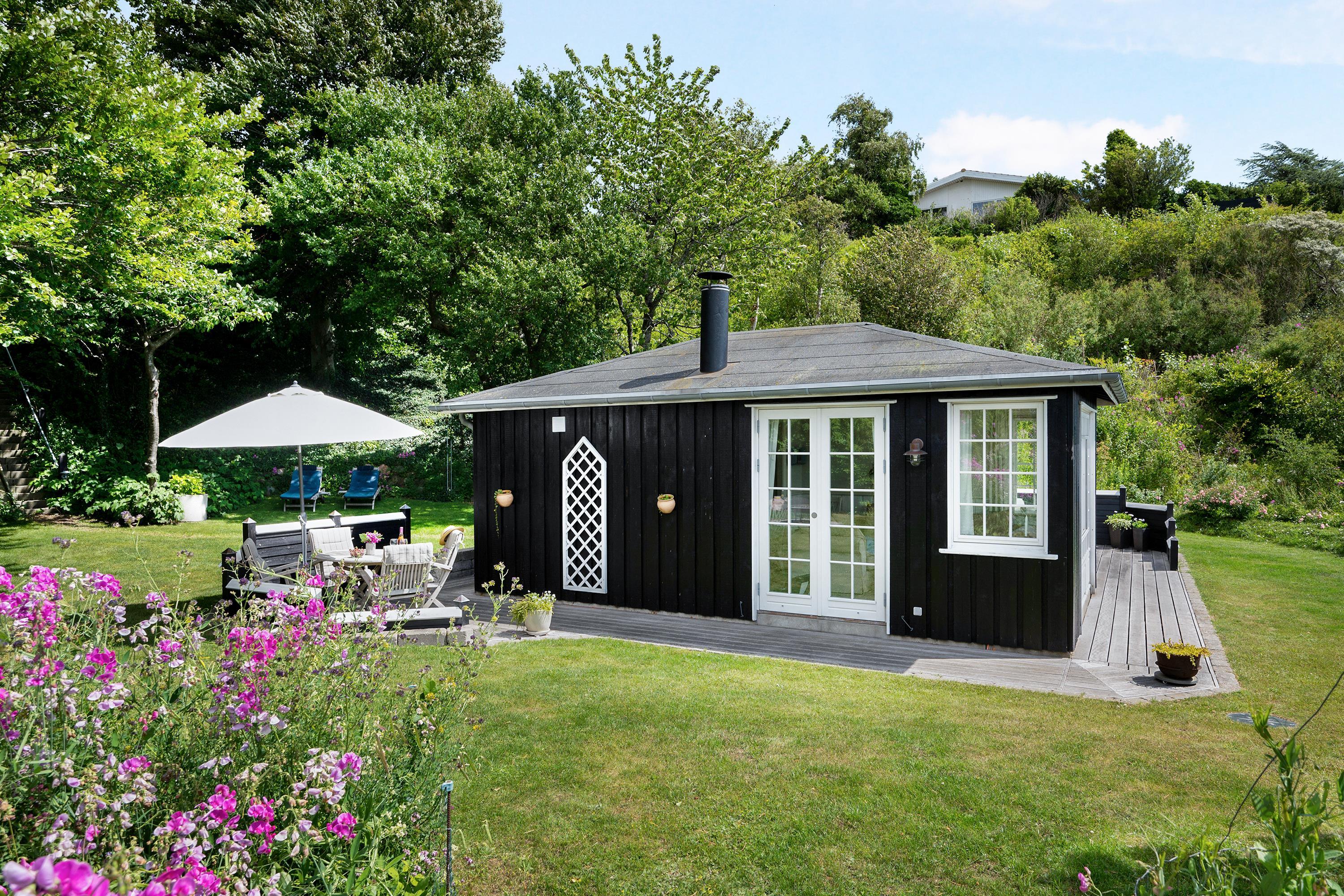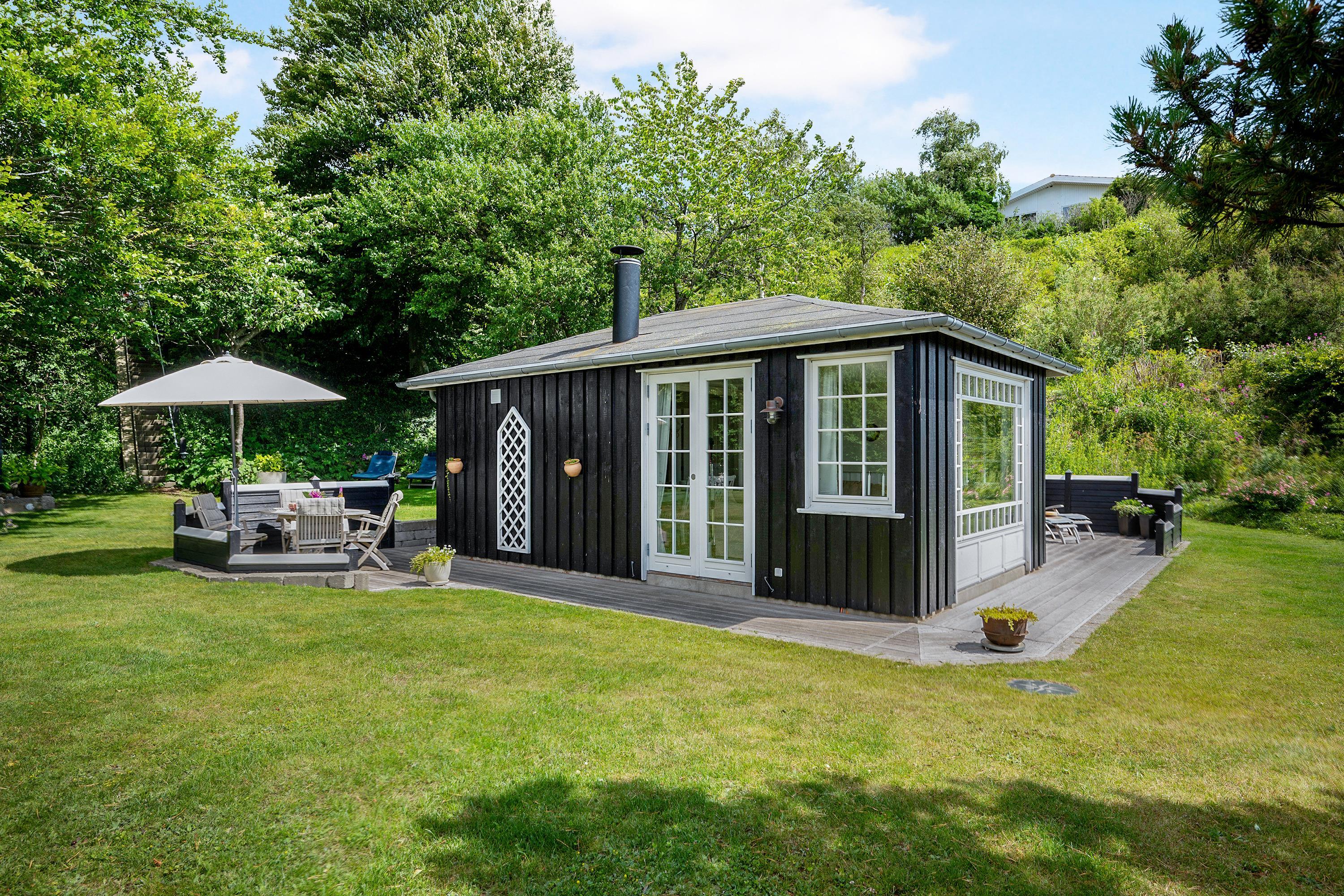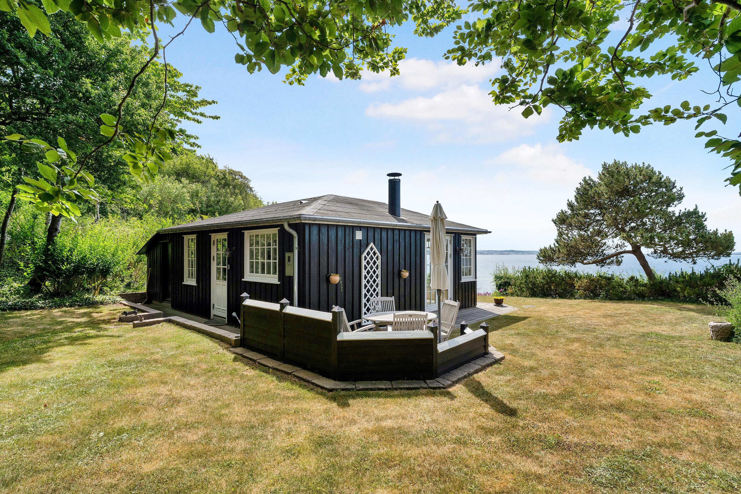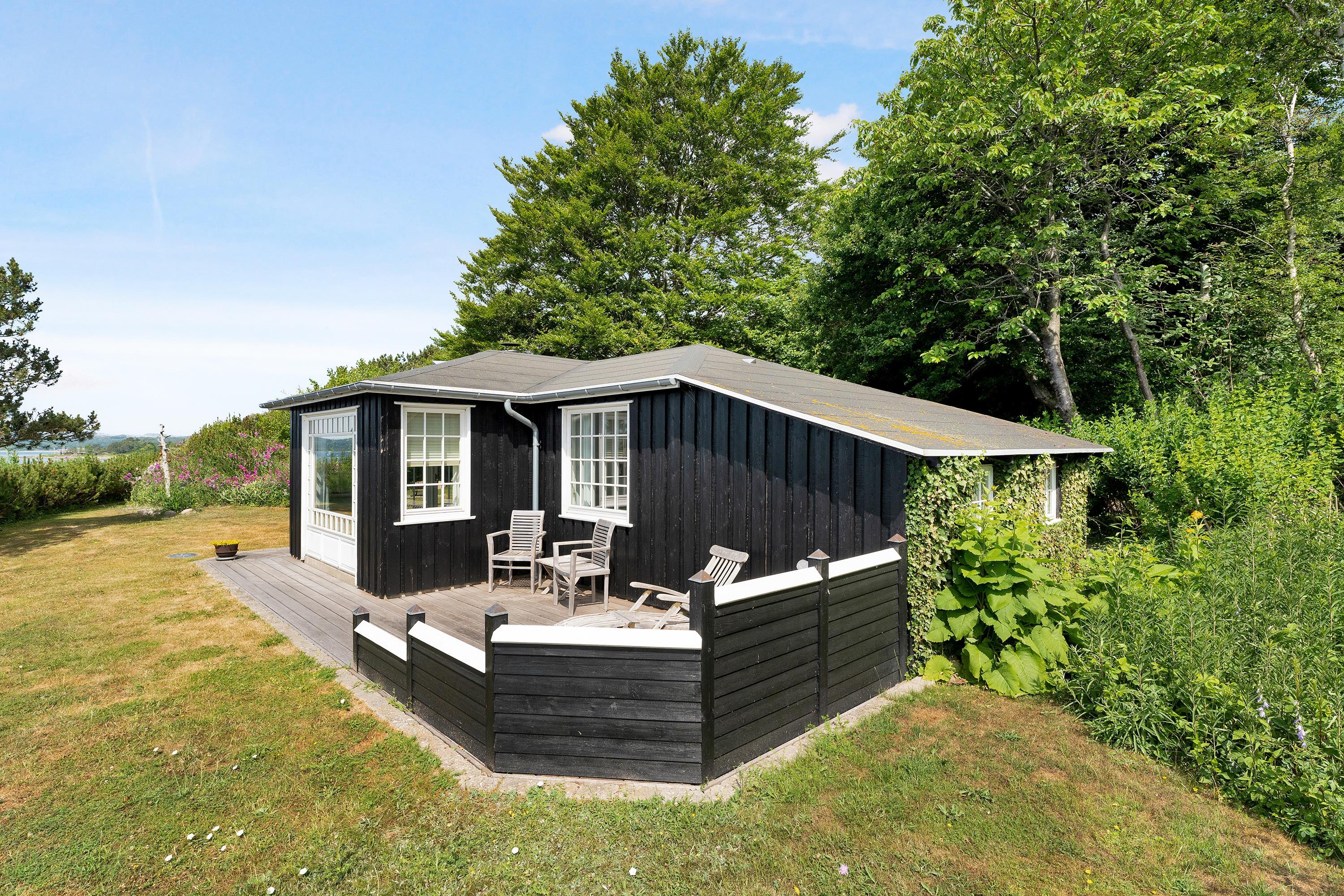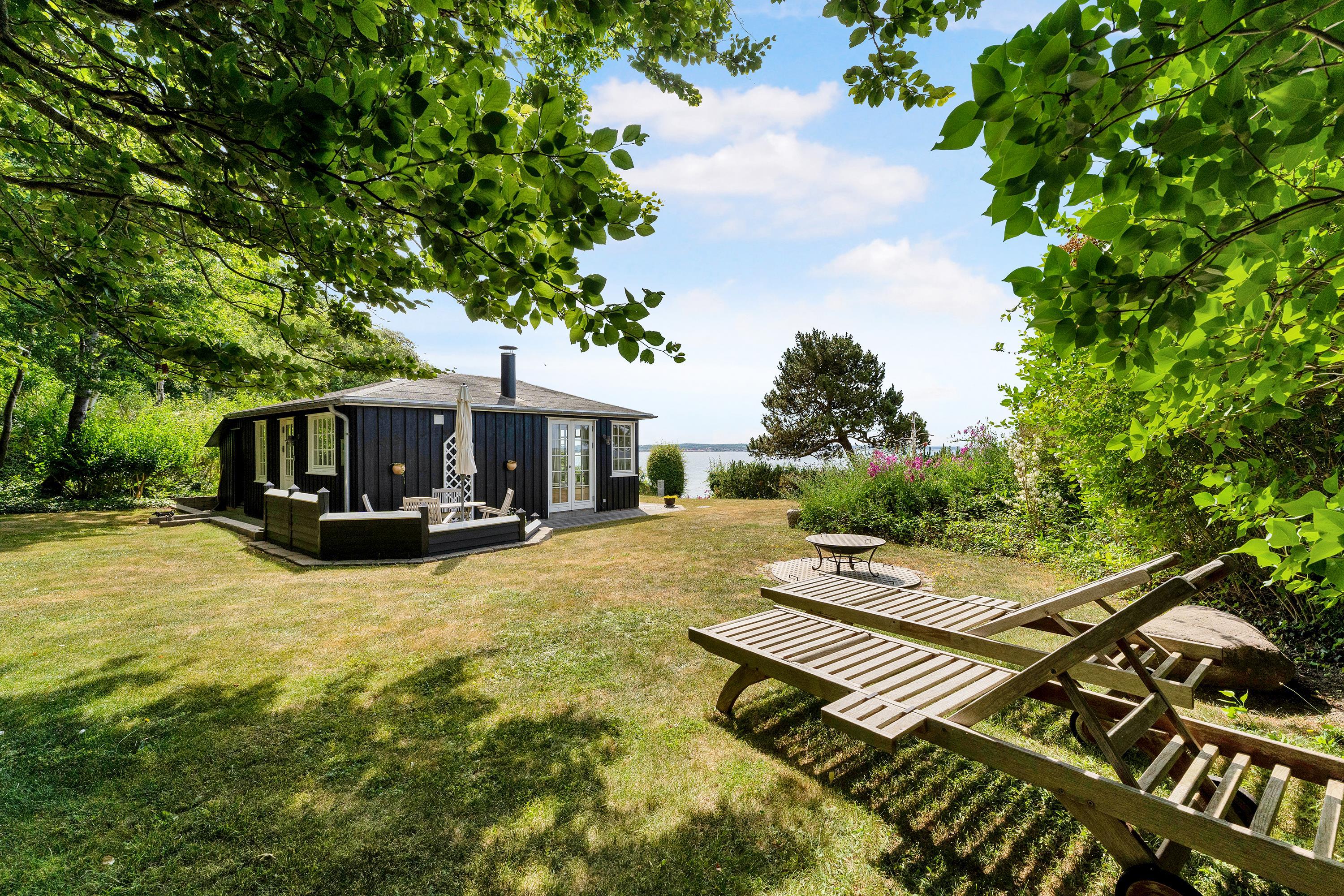 The sleeping arrangements are in two bedrooms, one with a double bed and one with two single beds. Whether you're in the living room or kitchen, you will enjoy the stunning sea view through the large panoramic window in the living room. The house is situated on a meticulously maintained plot with several lovely terraces and cozy corners. The property also features a charming bonfire pit, perfect for roasting marshmallows on a warm summer evening while watching the sun set over the bay and Mols Bjerge. Please note, the house is not suitable for those with mobility issues.