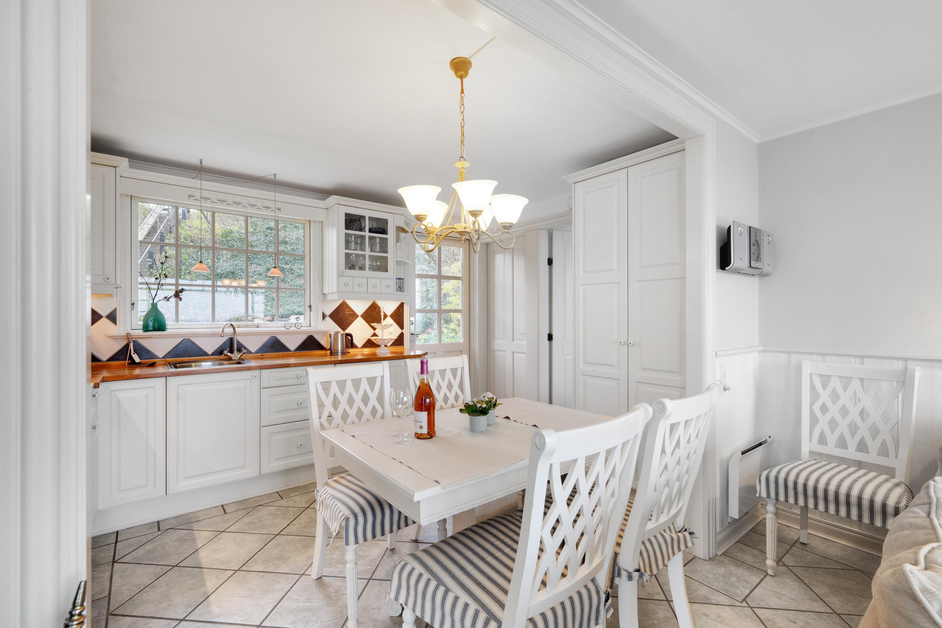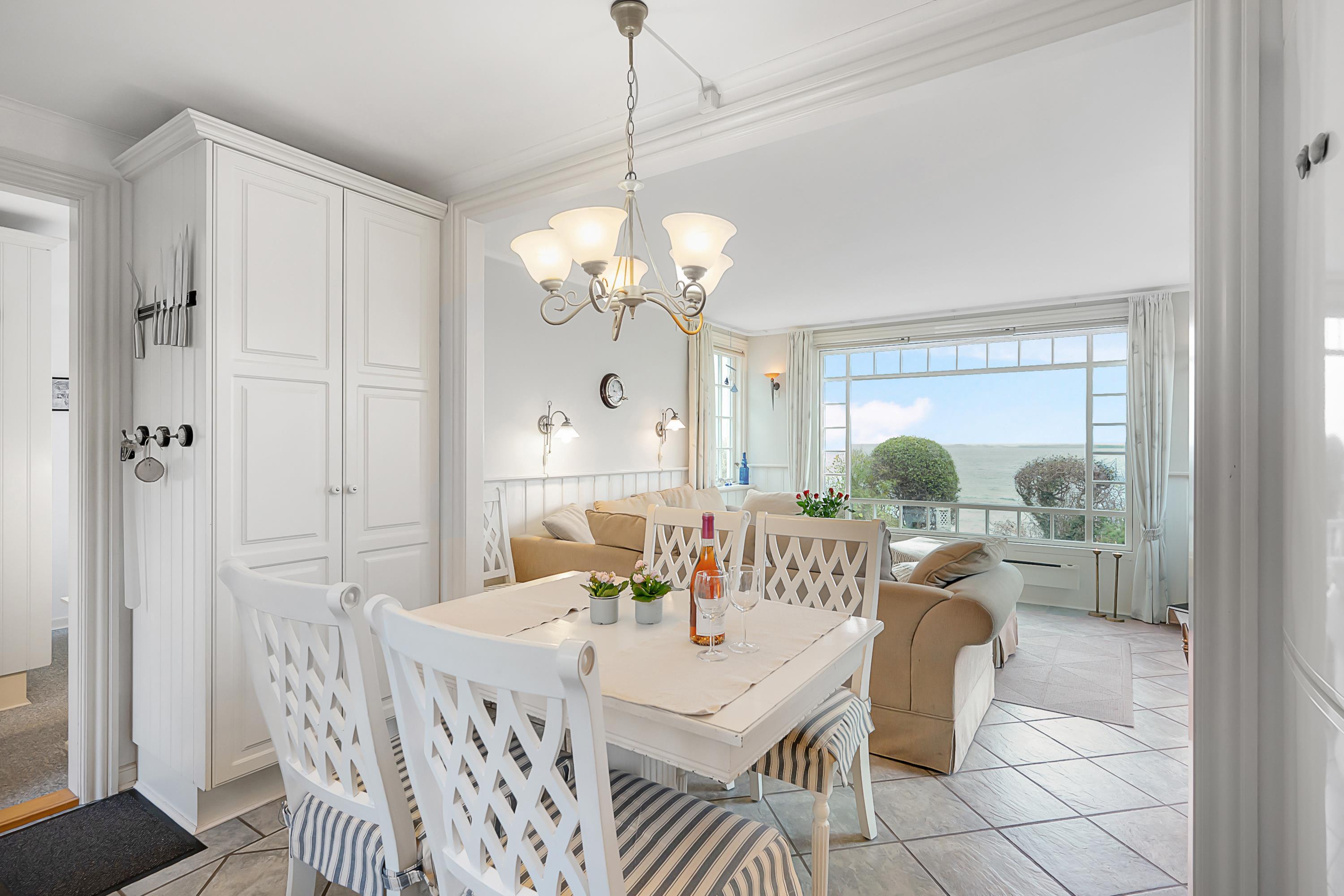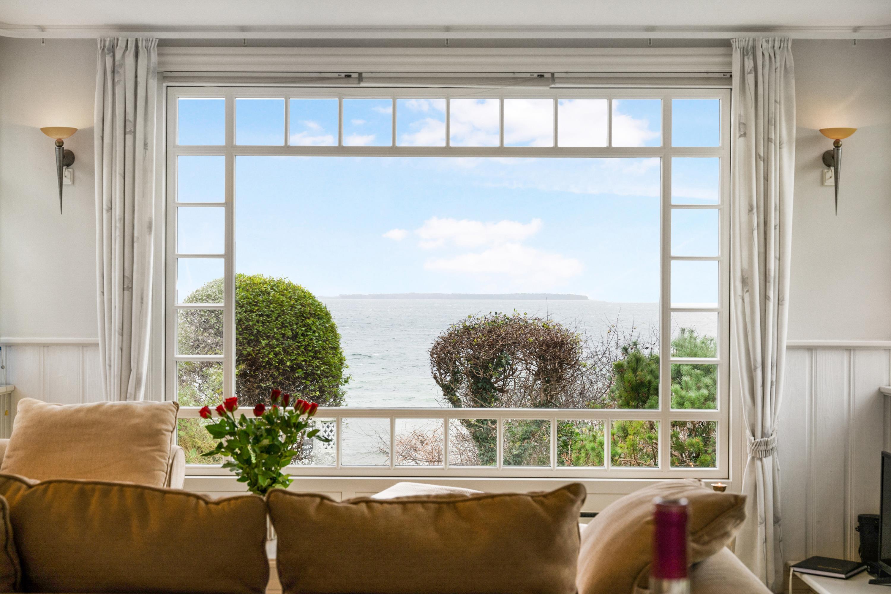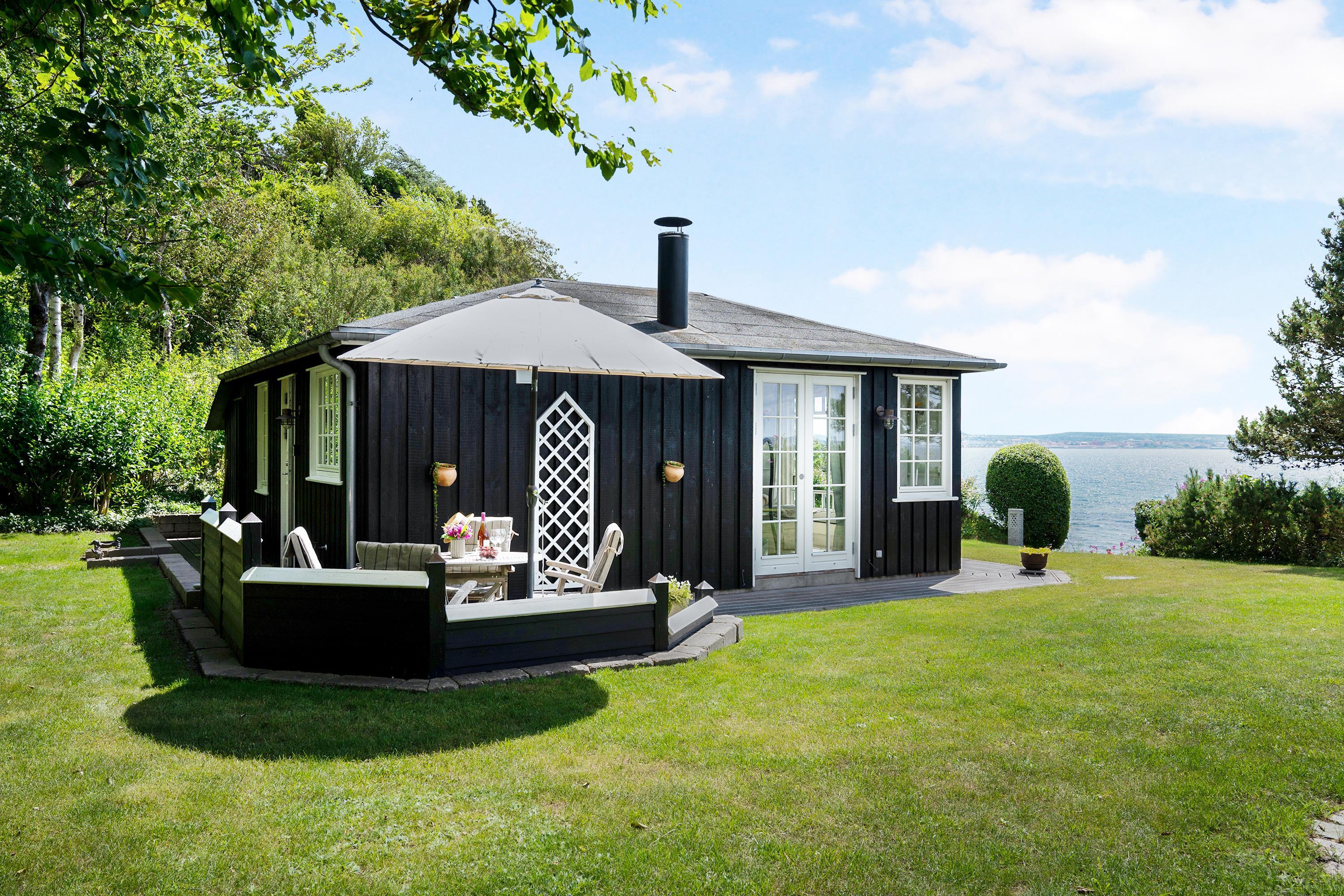 The sleeping arrangements are in two bedrooms, one with a double bed and one with two single beds. Whether you're in the living room or kitchen, you will enjoy the stunning sea view through the large panoramic window in the living room. The house is situated on a meticulously maintained plot with several lovely terraces and cozy corners. The property also features a charming bonfire pit, perfect for roasting marshmallows on a warm summer evening while watching the sun set over the bay and Mols Bjerge. Please note, the house is not suitable for those with mobility issues.
