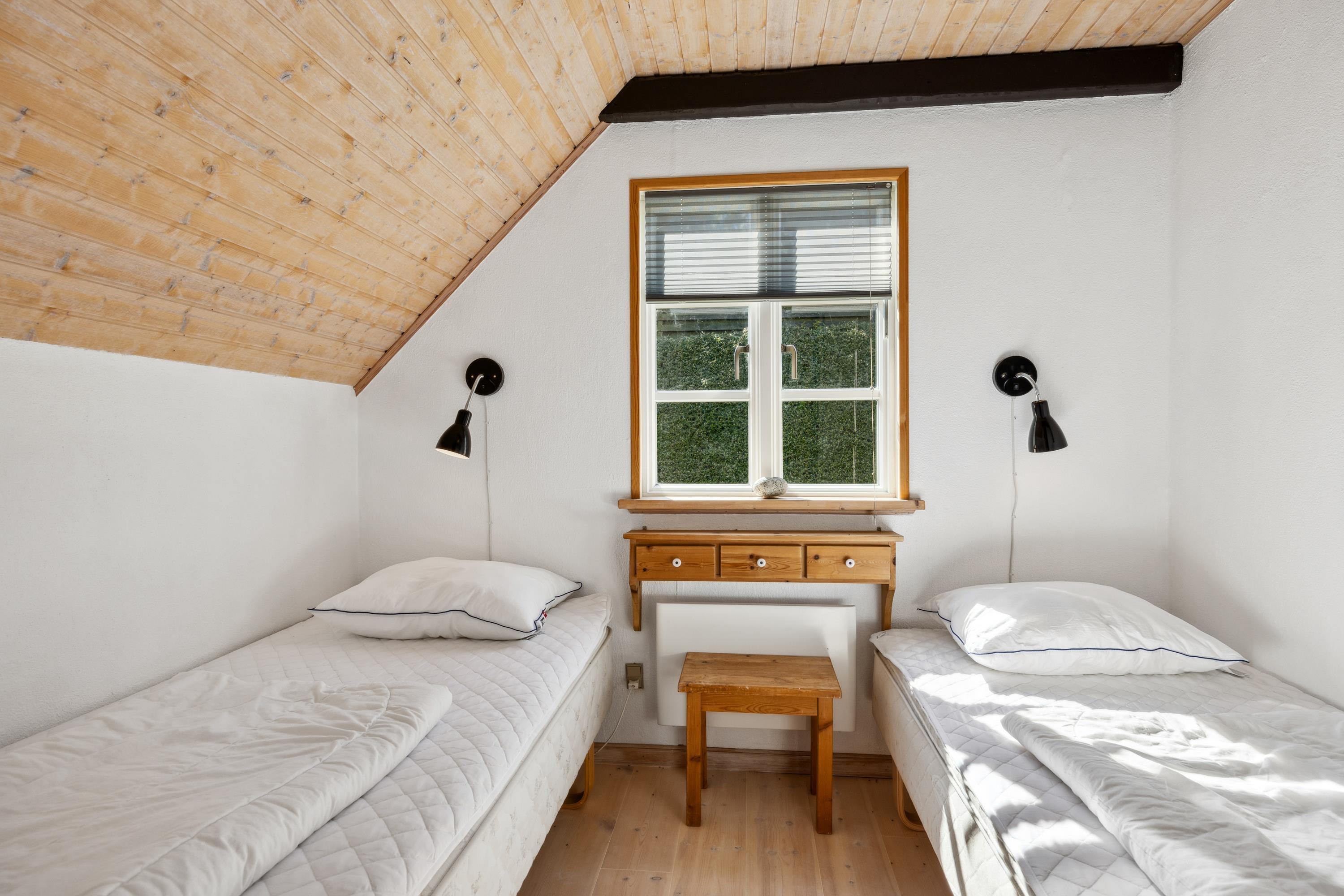The house accommodates 6 sleeping spaces, divided into a large, lovely bedroom with a double bed, a spacious room with a 1.5-person bed and a single bed, and a slightly smaller room with 2 single beds. There is a truly beautiful bathroom with a shower, a washing machine, and underfloor heating. The house also offers internet access.