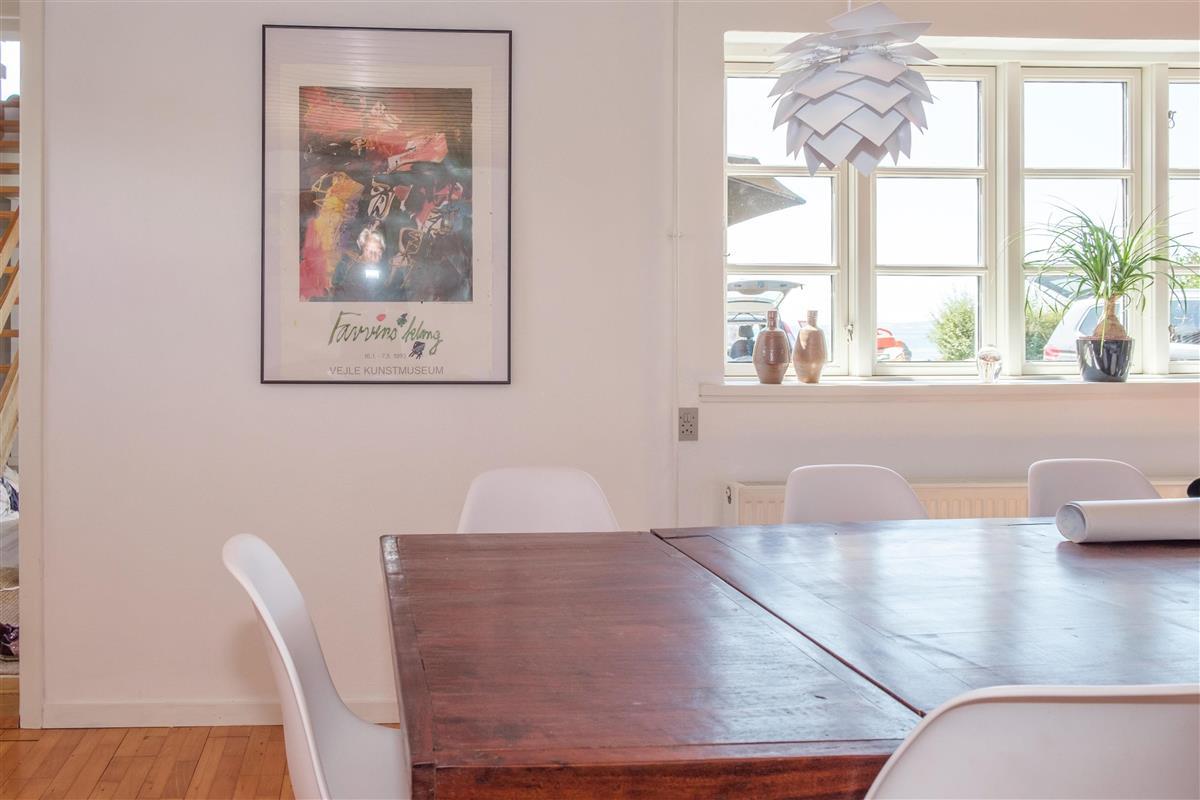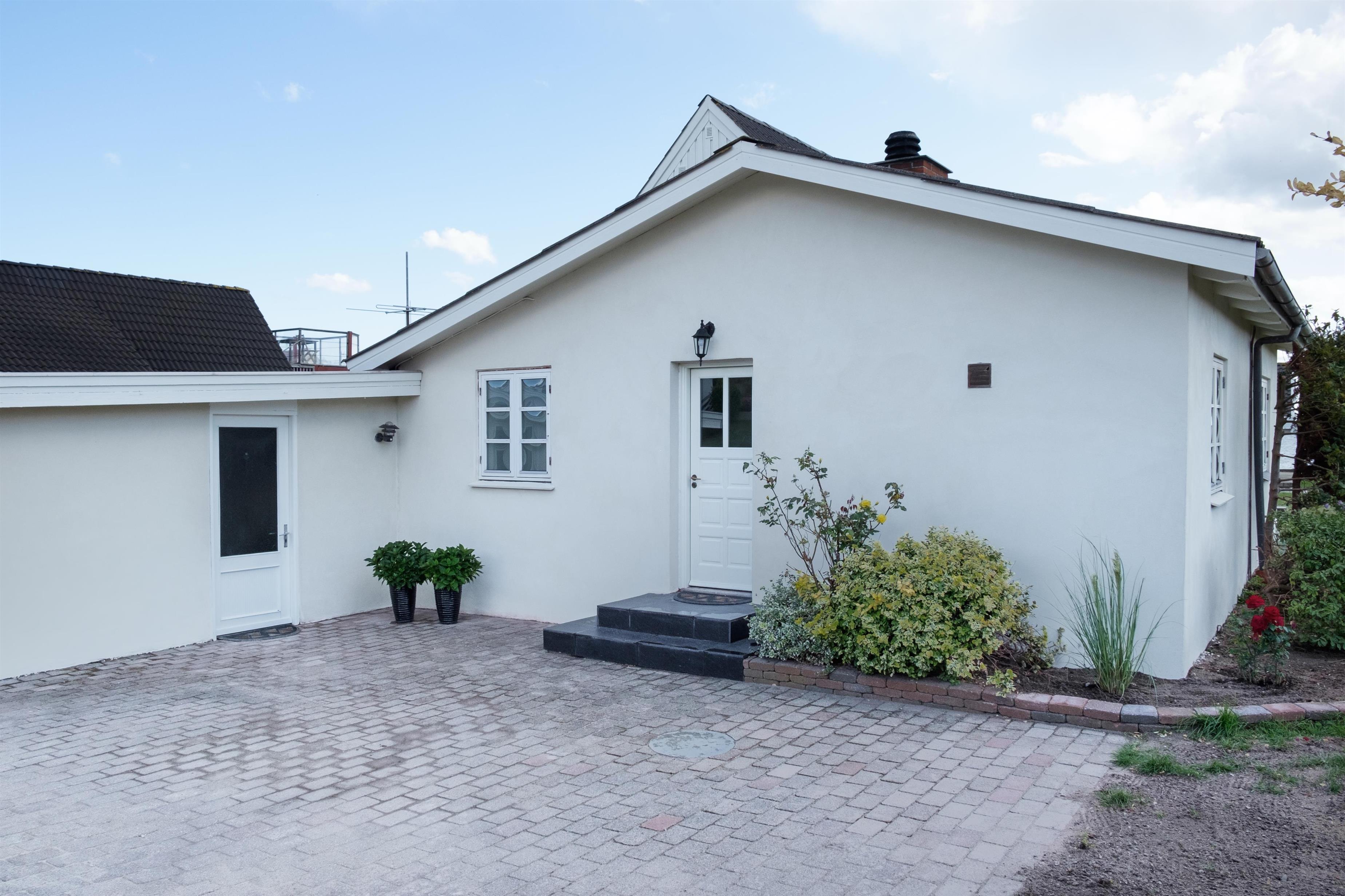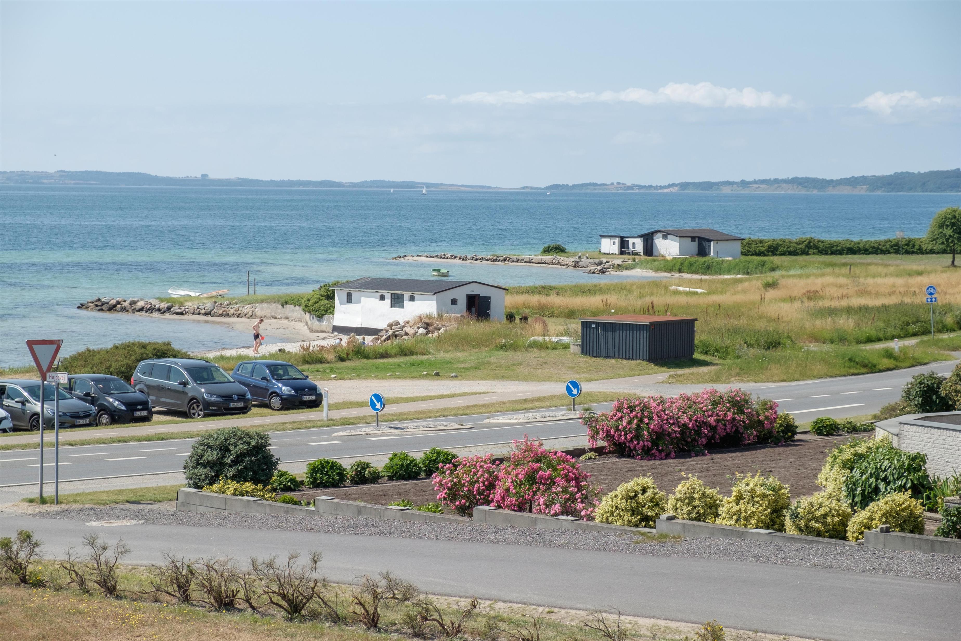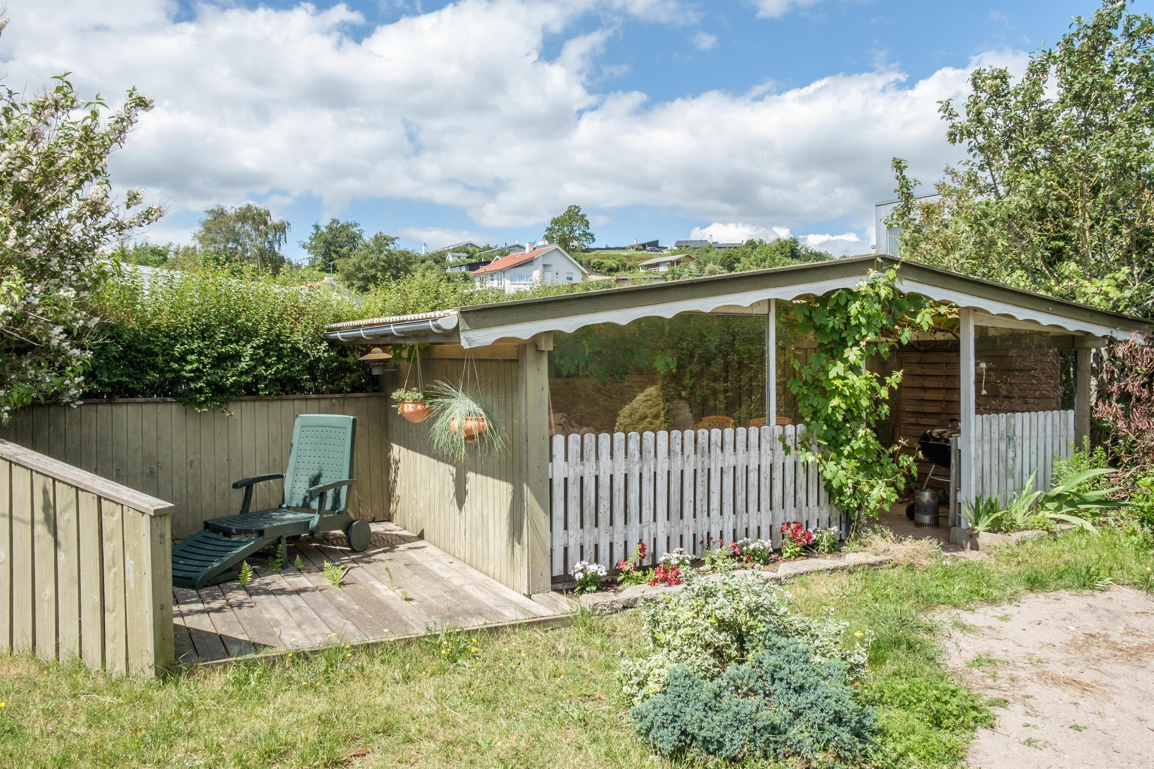 An older, newly renovated holiday home with a panoramic view over Ebeltoft Bay, located just 100 meters from the child-friendly sandy beach at Egsmark Strand. A truly spacious and well-appointed house on a secluded plot, featuring a cozy garden house and a tiled terrace with a sea view. Additionally, there is a viewing balcony accessible from the living room on the first floor. The property is equipped with good garden furniture, sun loungers, a parasol, and a barbecue.