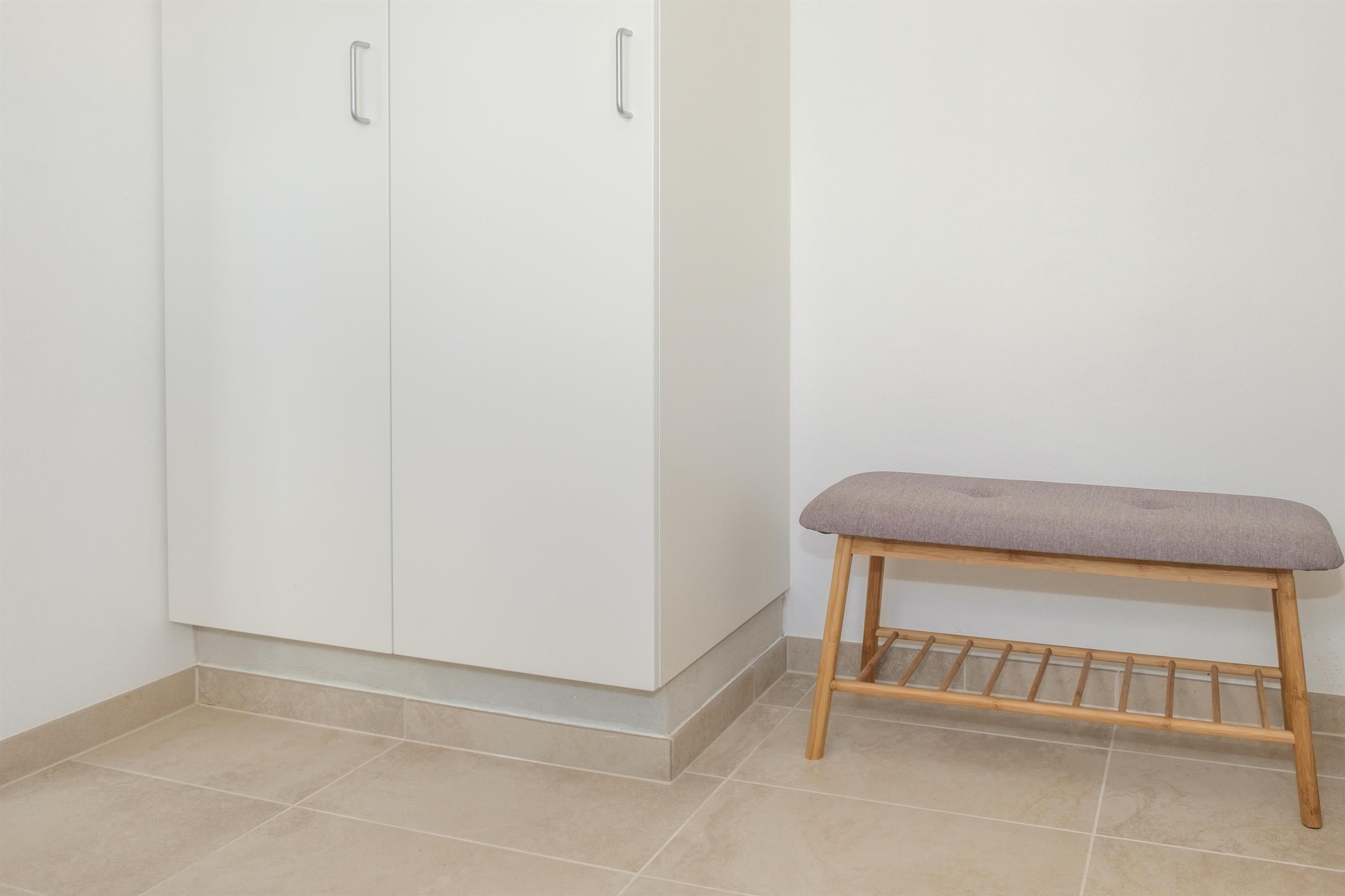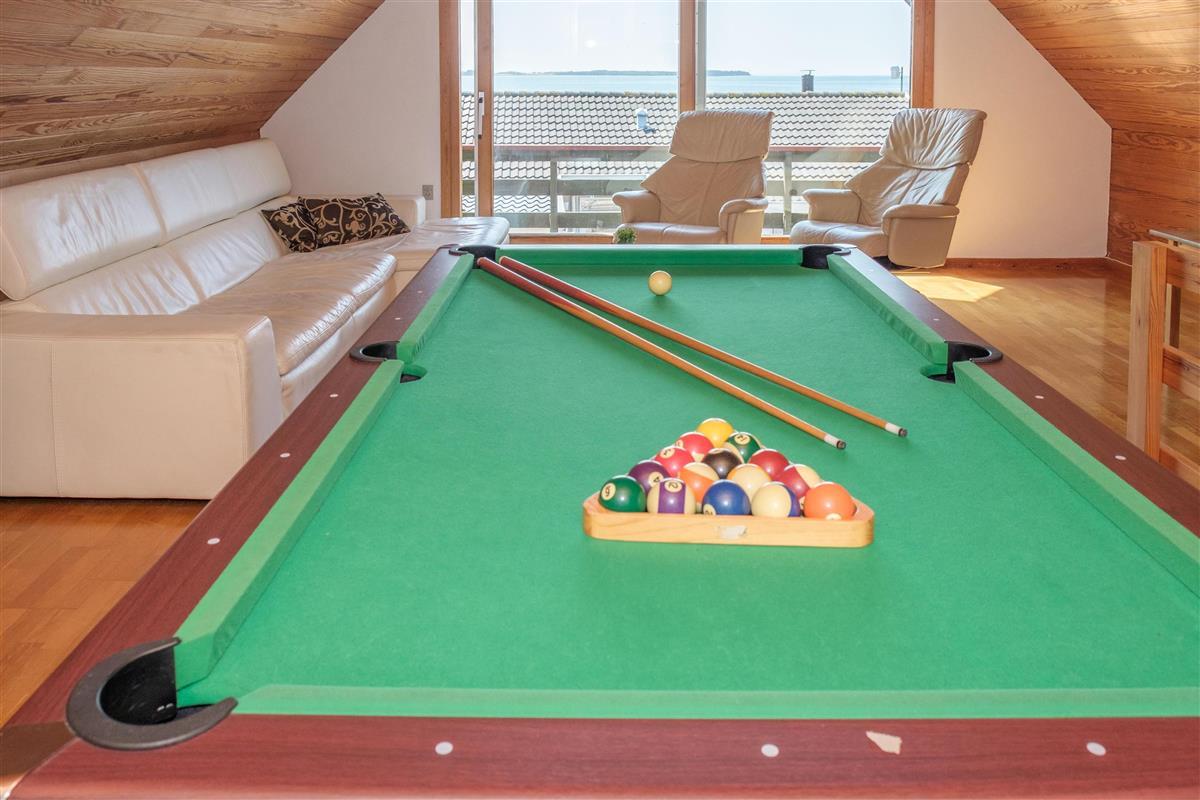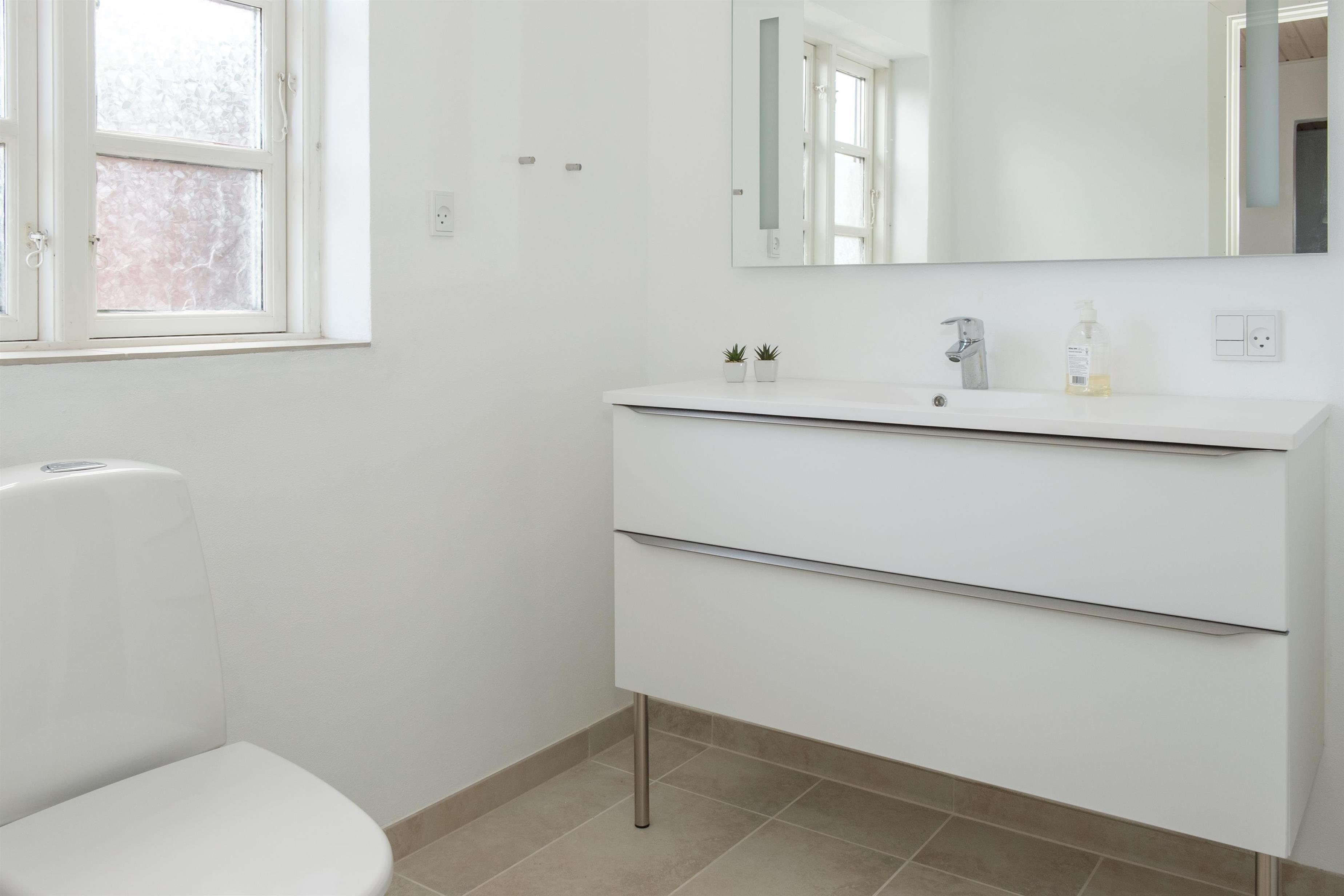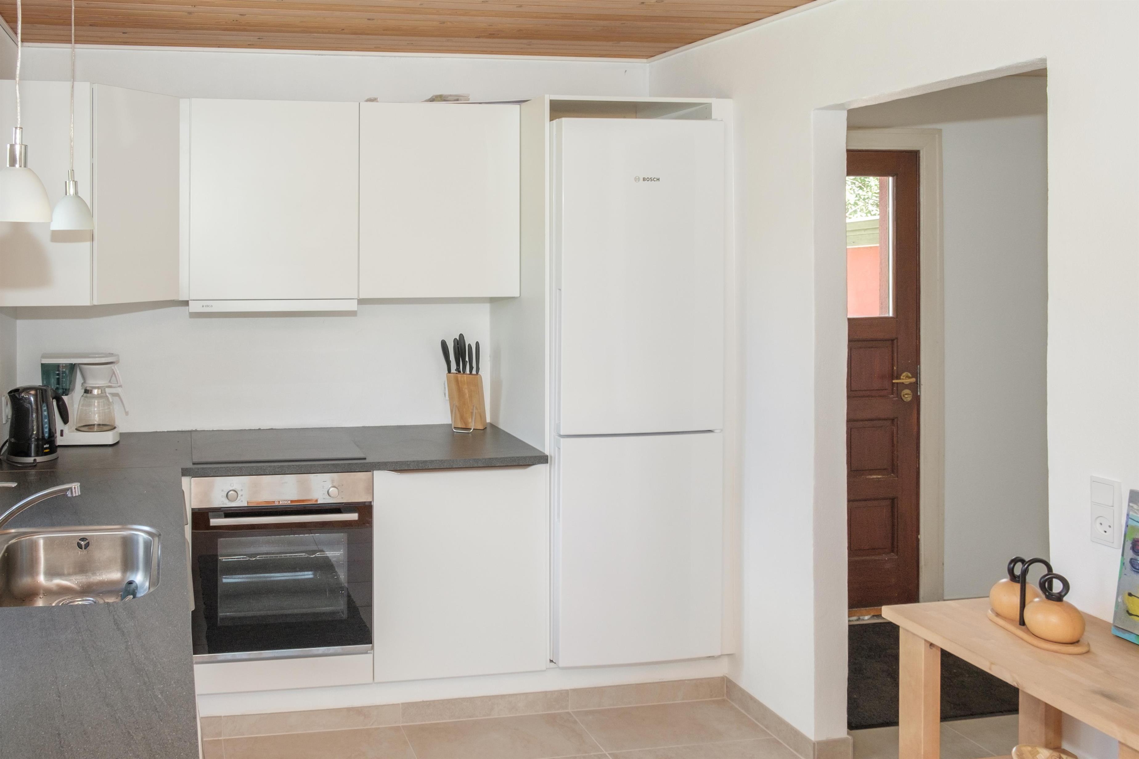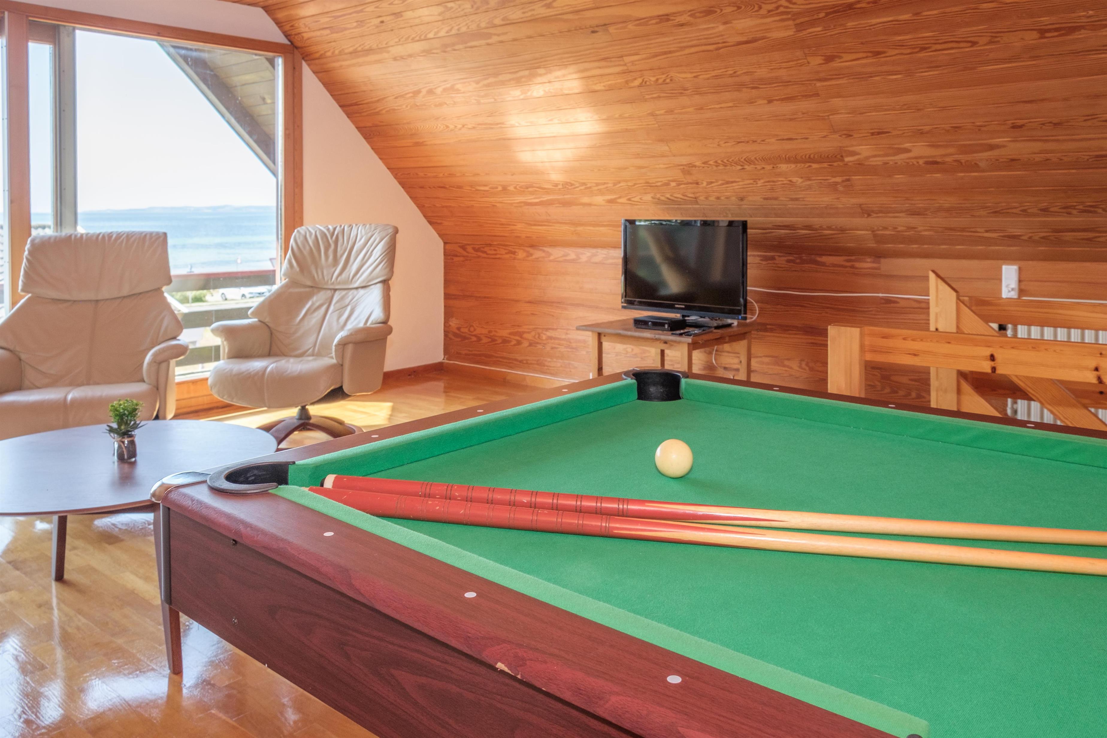 From the spacious entrance, you enter the large kitchen/dining area with a wood-burning stove and a dining table for 12 around the long wooden table. A high chair is available for the smallest. The new, beautiful kitchen is equipped with ceramic stovetops, an oven, a fridge/freezer, a dishwasher, and a microwave. On the first floor, there is a cozy, well-furnished living room with access to a small covered viewing balcony and a TV with Danish (including TV2) and German channels, as well as a radio. The house has a total of 12 sleeping spaces, which are divided into 2 large bedrooms with double beds, and 1 room with 2 bunk beds on the ground floor, as well as 2 bedrooms with double beds on the first floor. On the ground floor, there is a lovely new bathroom with a shower, a washing machine, and a dryer, as well as the most charming, original 60s bathroom with light blue tiles and a bathtub. Underfloor heating is available in both bathrooms. Internet access is provided.