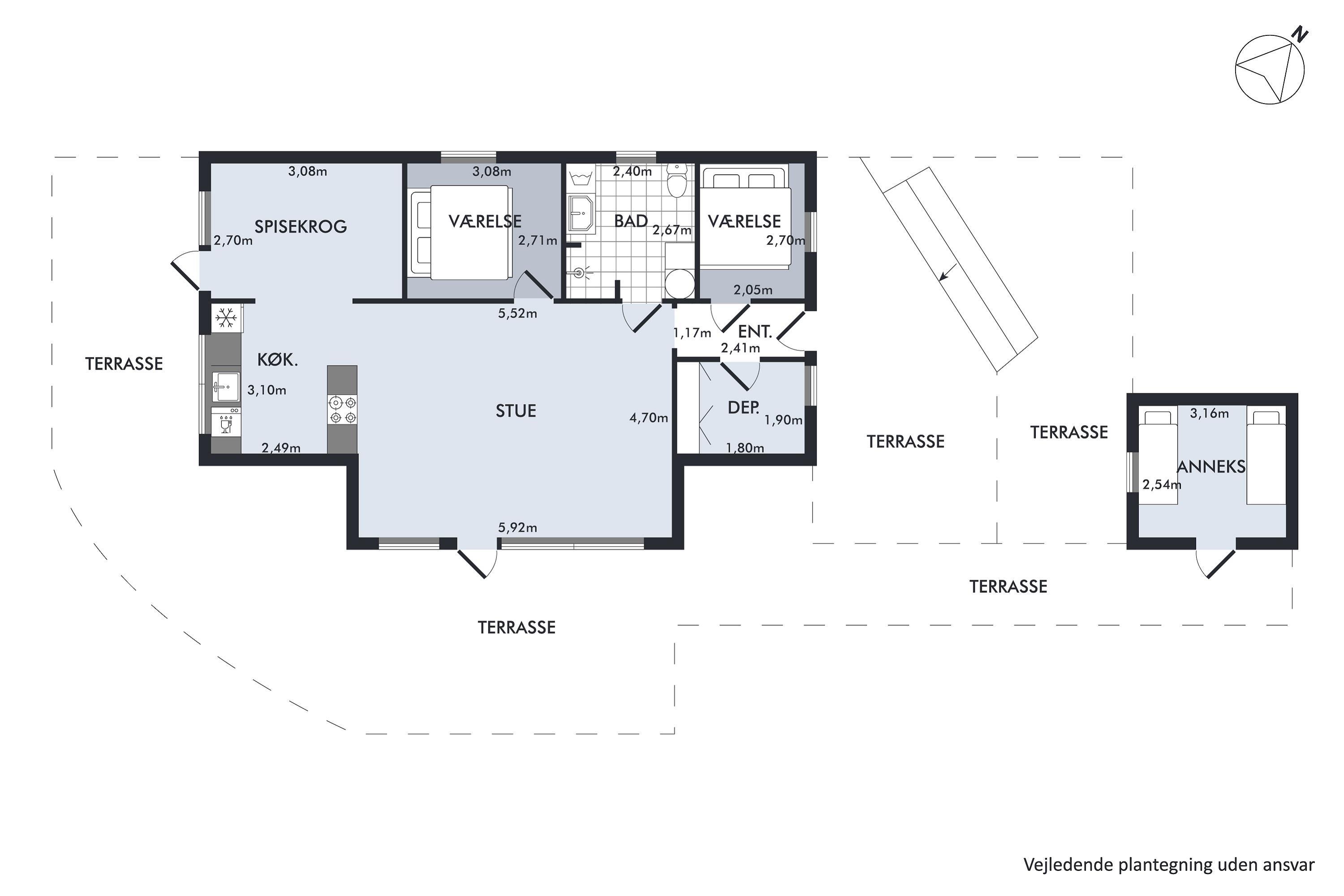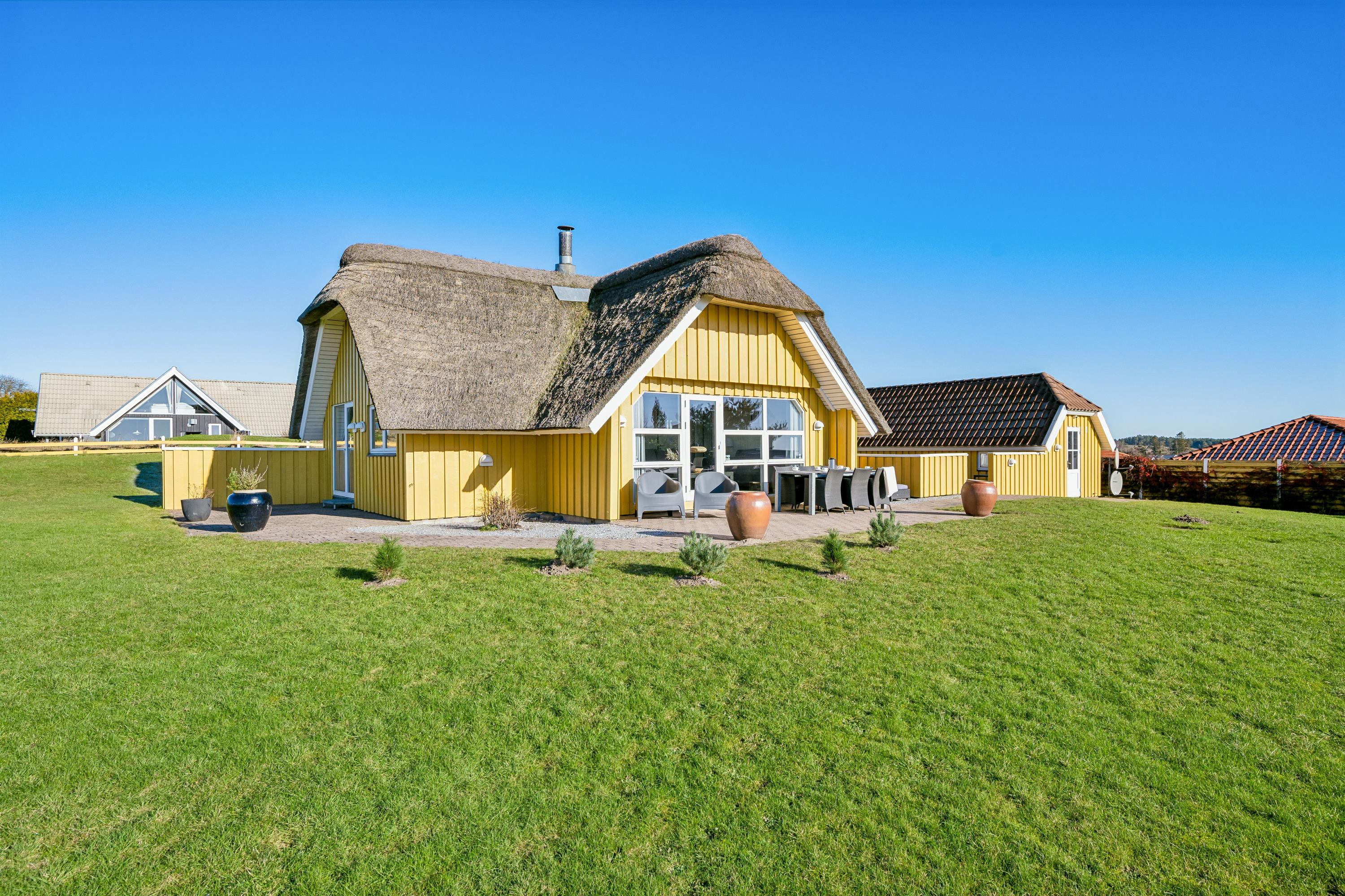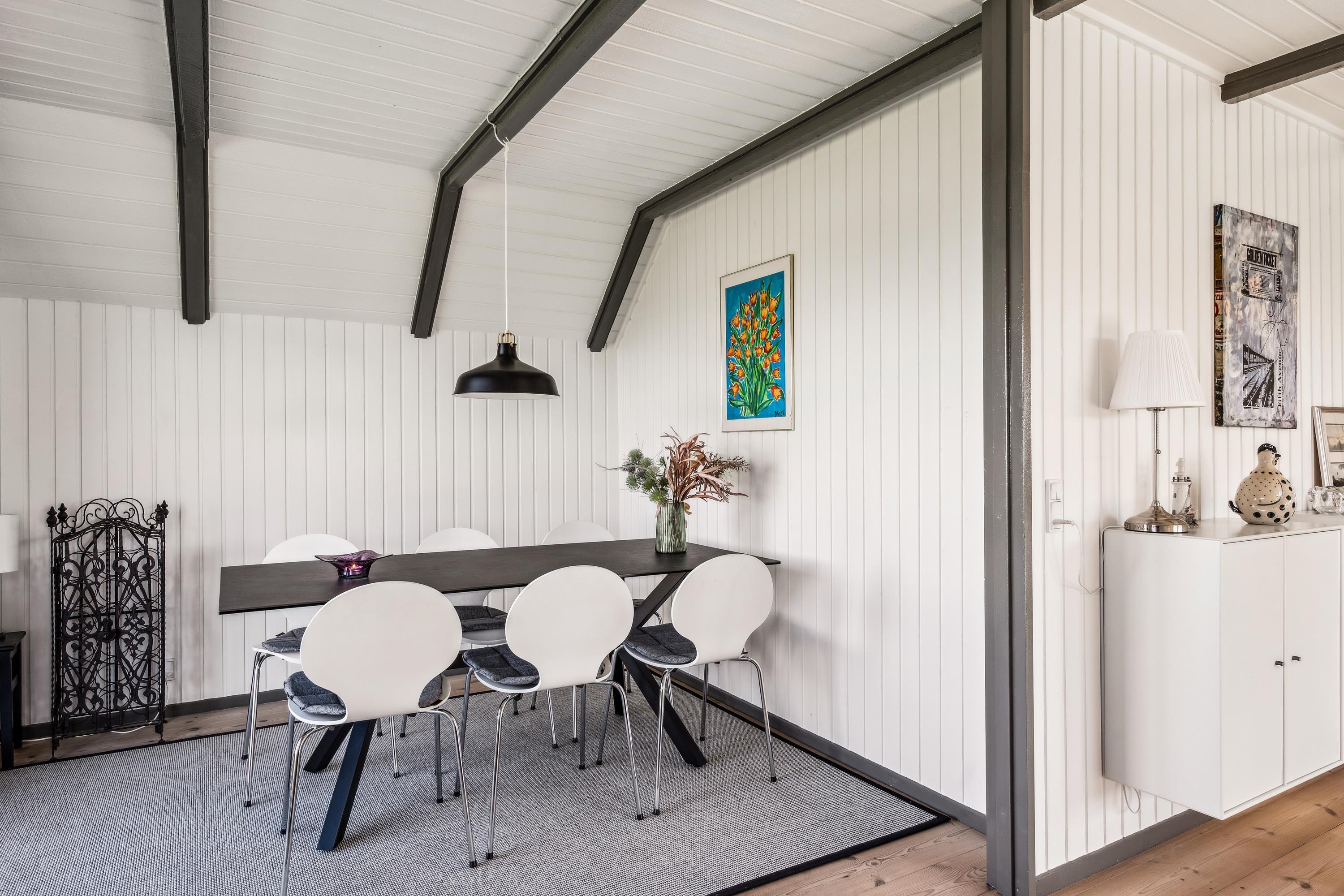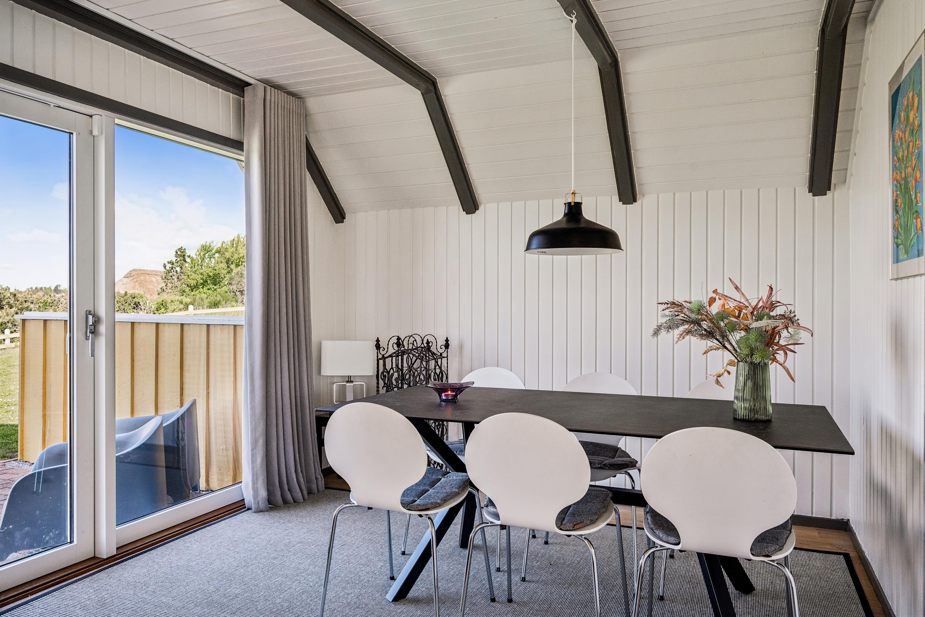 The house's sleeping arrangements include two bedrooms with double beds in the main house, while the remaining beds are located in the incredibly cozy annex, which has two single beds. For the little holiday guests, there is both a high chair and a baby cot available. The house is equipped with a TV with Chromecast, and one of the bedrooms also has an Apple TV. From both the house and the property, you can enjoy the most breathtaking views of the hilly landscape at Egsmark Strand and witness the beautiful sunset over Mols Bjerge and Ebeltoft Bay.