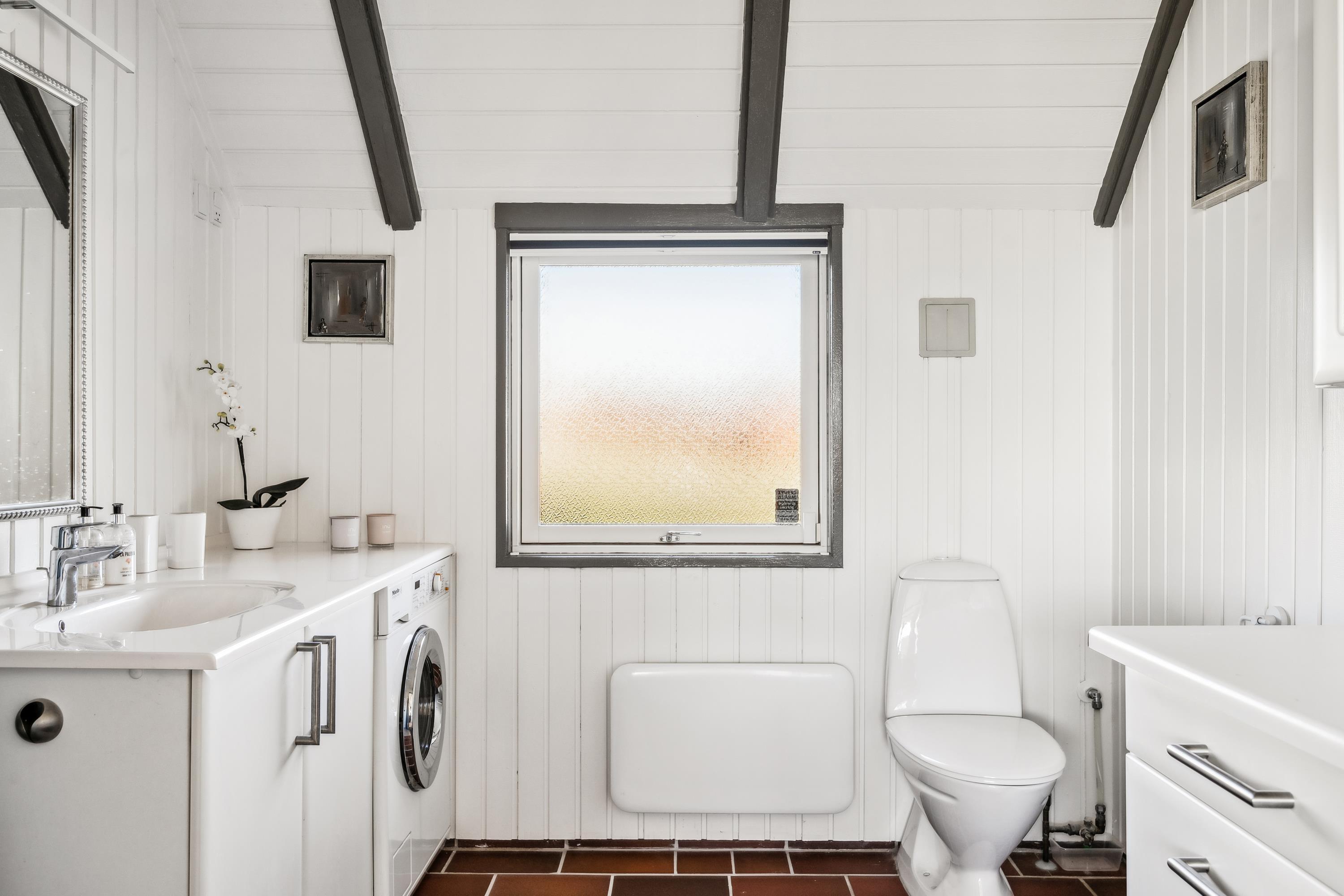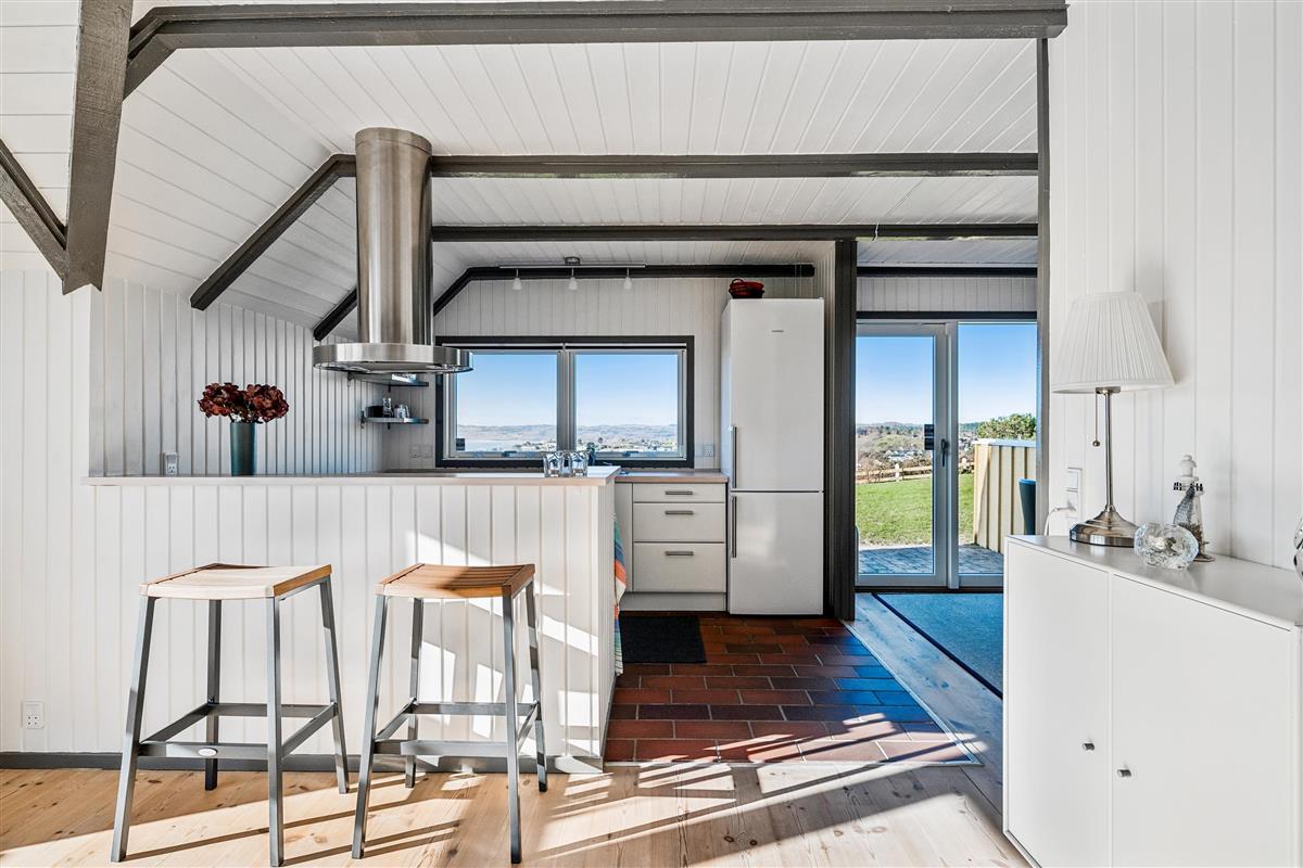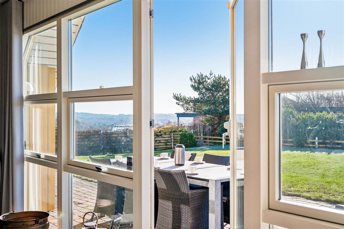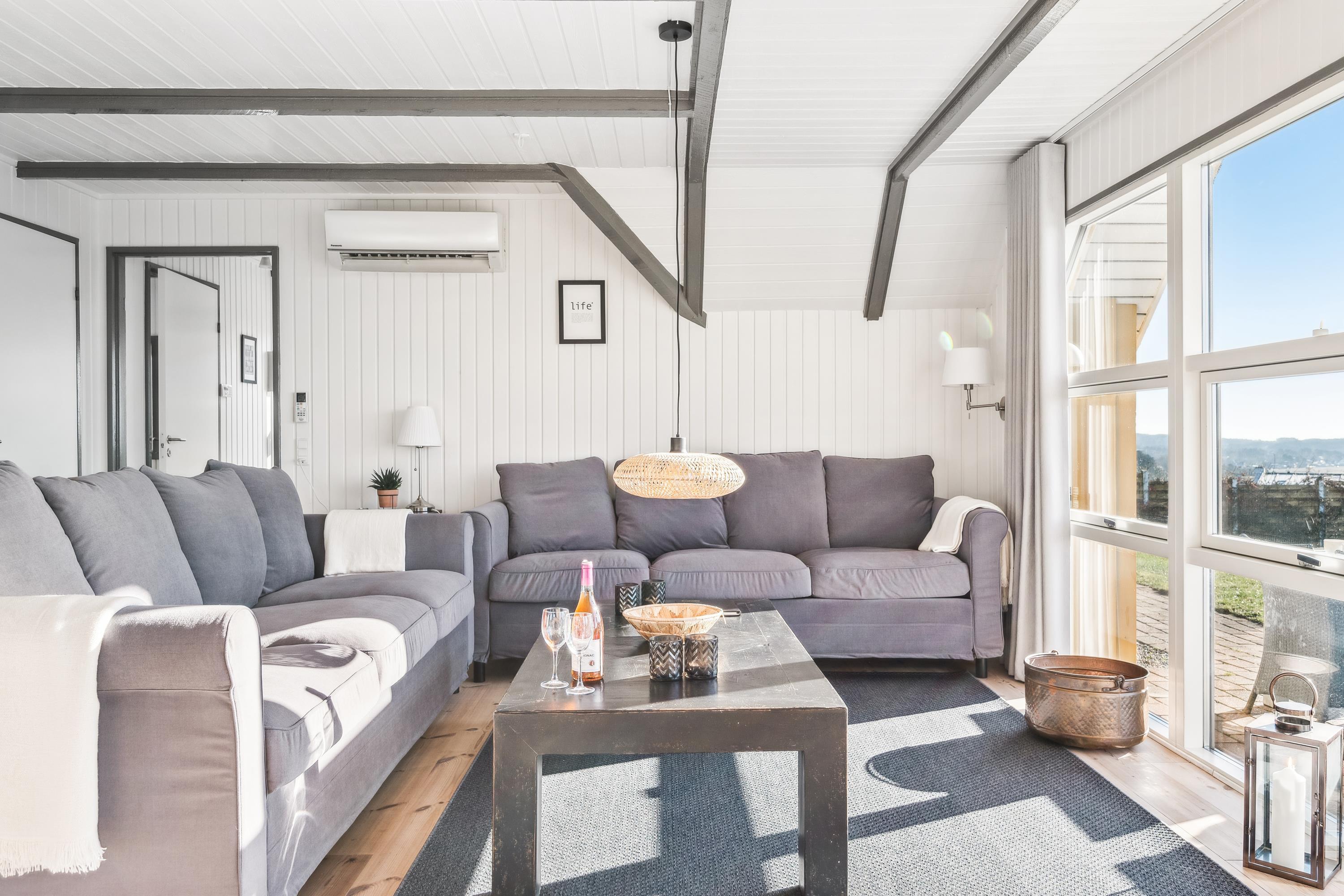 Welcome to this beautifully elevated holiday home at Egsmark Strand, offering one of the most stunning panoramic views in the area. Here, you will find an inviting living room, furnished with quality furniture and direct access to a fantastic terrace with comfortable outdoor seating. Adjacent to the living room is the kitchen, which includes a dishwasher, as well as a lovely and well-furnished dining area. The modern bathroom features a shower, underfloor heating, and access to a washing machine and dryer.