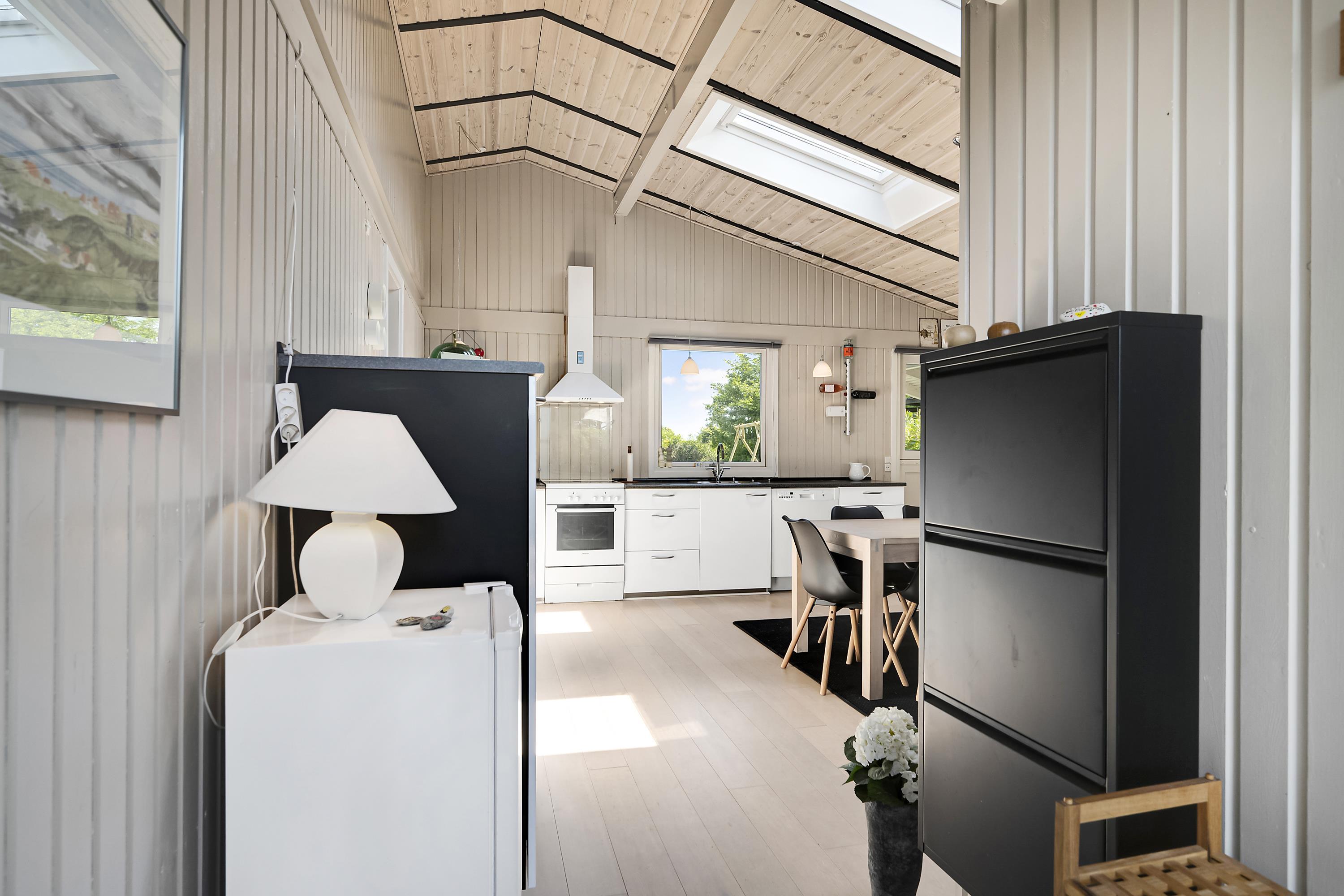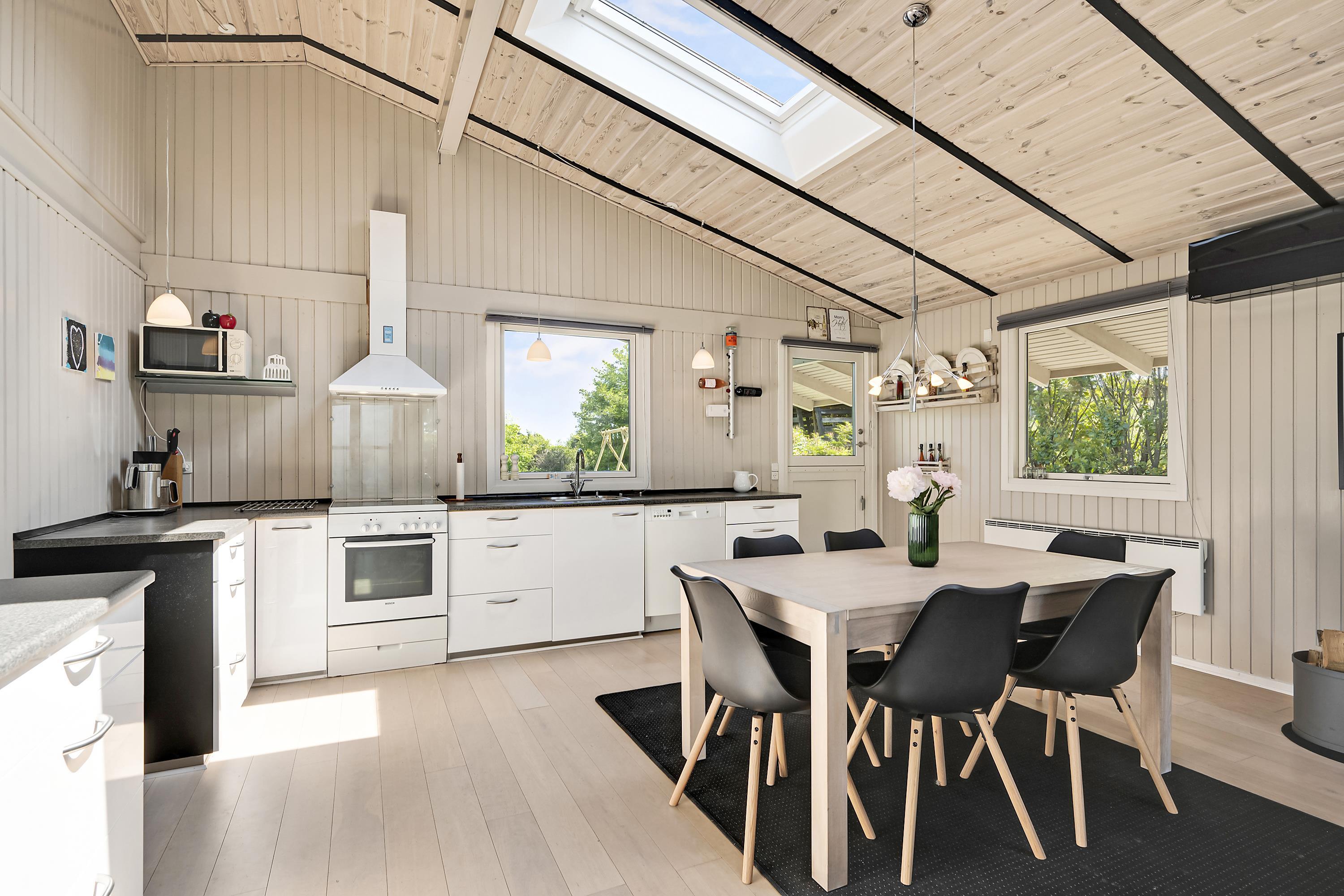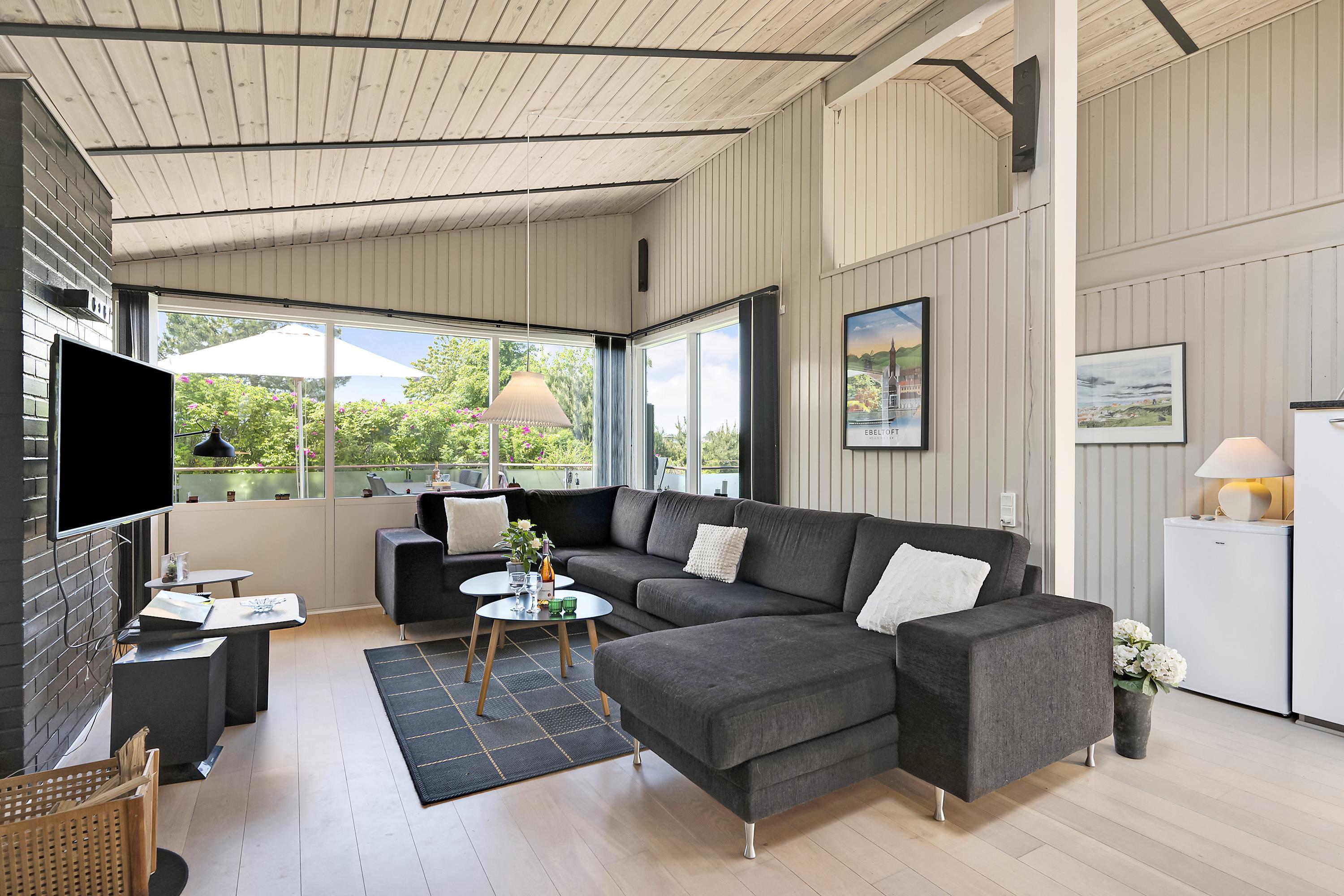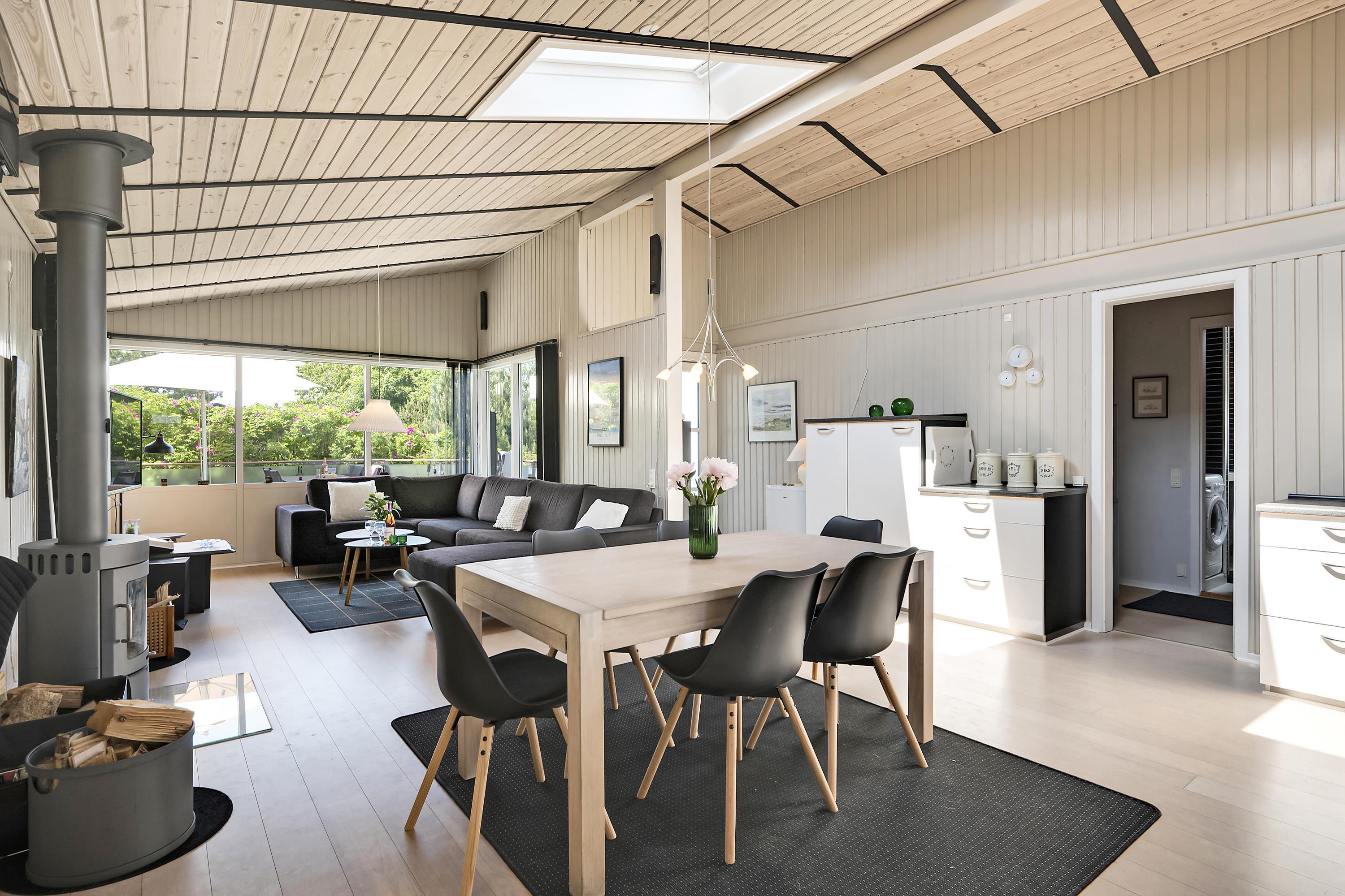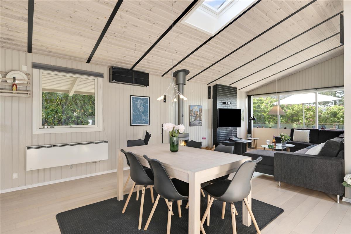 Just a 10-minute drive from Ebeltoft, you will find this beautiful and exceptionally well-maintained house, located close to a lovely beach. The house features a cozy living room, furnished with comfortable furniture, a wood-burning stove, and a heat pump. Adjacent to the living room is a well-equipped kitchen with a pleasant dining area, with access to the terrace.