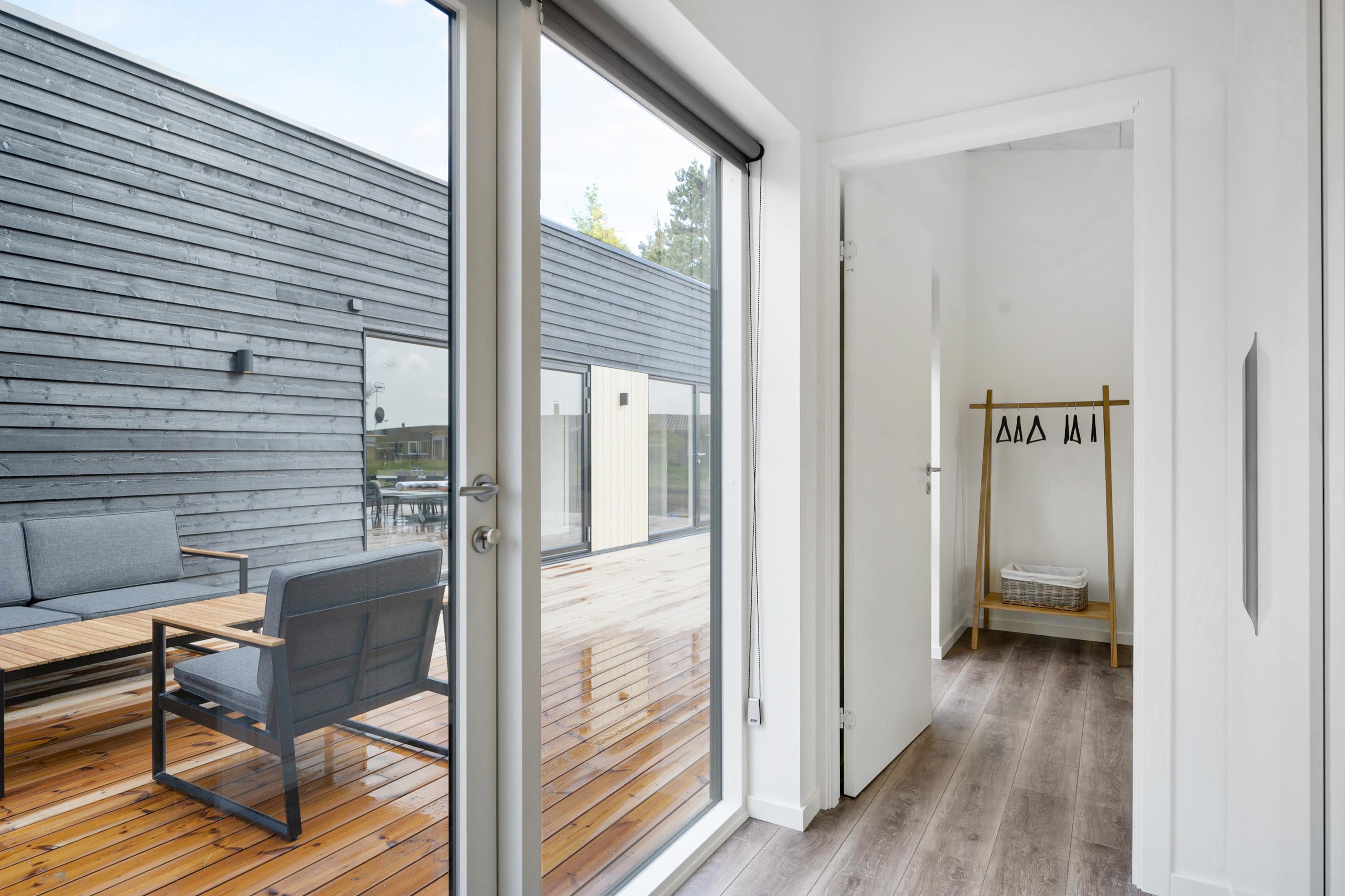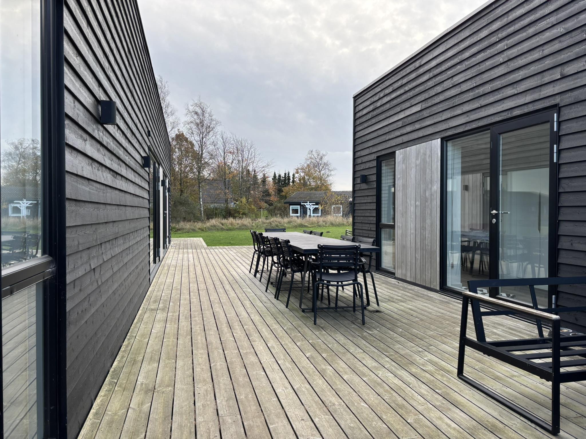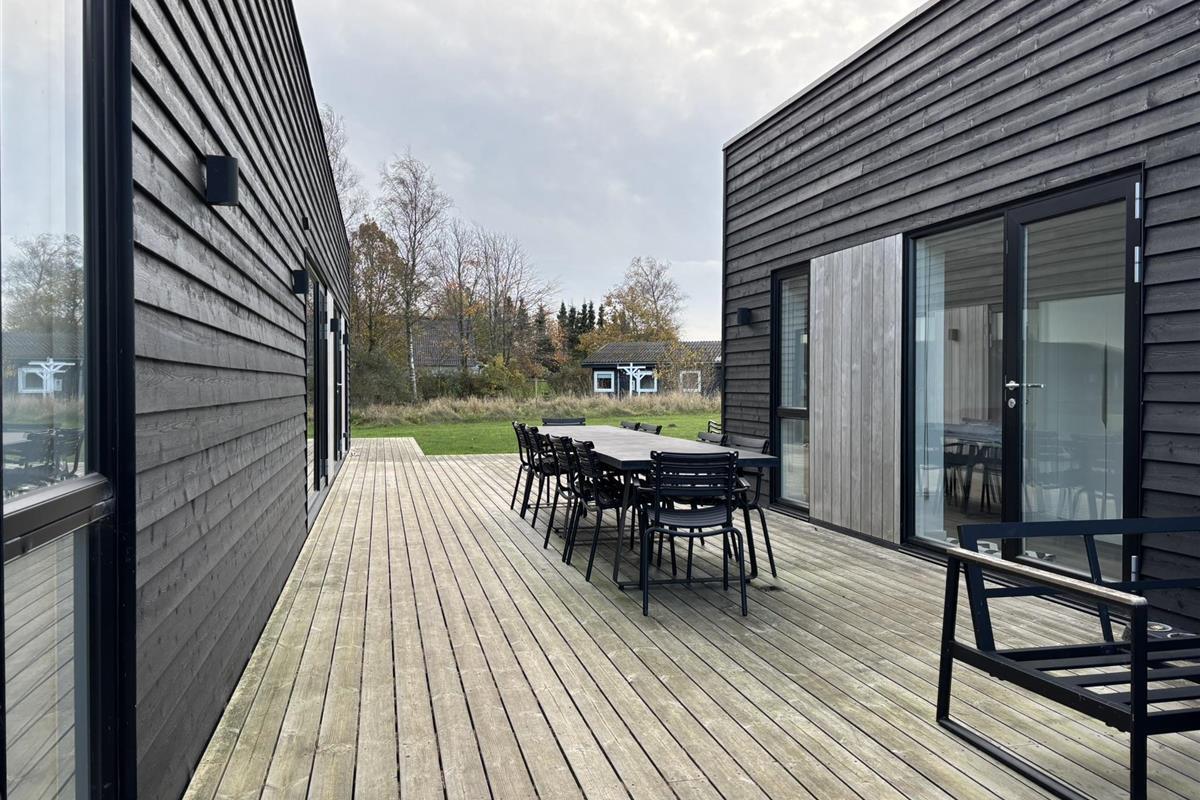 This spacious holiday home, accommodating up to 10 people, is situated on a large natural plot in the attractive Egsmark area north of Ebeltoft, close to a child-friendly sandy beach with a bathing jetty leading out to Ebeltoft Vig. The house is surrounded by a large southwest-facing wooden terrace furnished with outdoor furniture, sun loungers, a parasol, and a grill.