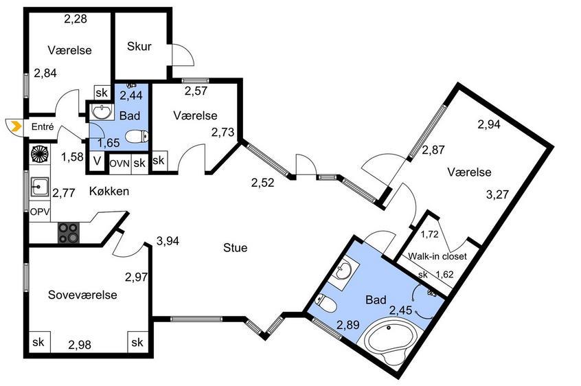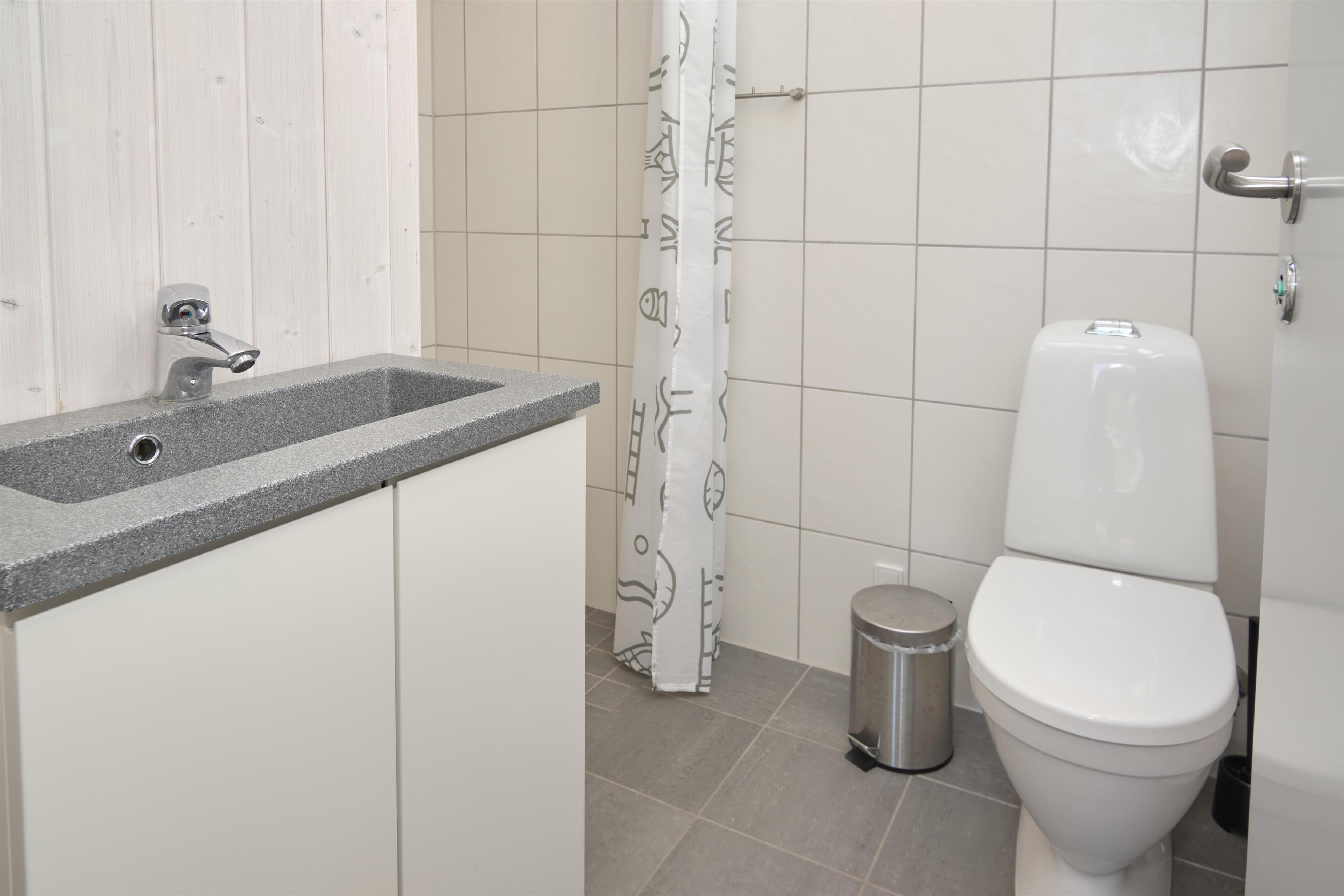 The large windows on the north and south sides flood the living room with light, where there is a dining area for eight people. The entertainment includes a TV with Chromecast, a DVD player, a Nintendo Wii, a Sonos music system, and many board games. The TV package includes Norlys Play (the large package), HBO Max, Amazon Prime, TV2 Play Basic and Netflix. Connected to the living area is the spacious and well-equipped kitchen with a refrigerator/freezer, dishwasher, induction cooktop, built-in oven, and microwave/convection oven. There are two bathrooms with underfloor heating: a large bathroom with a shower and a spa, and a guest bathroom with a shower and a washing machine.