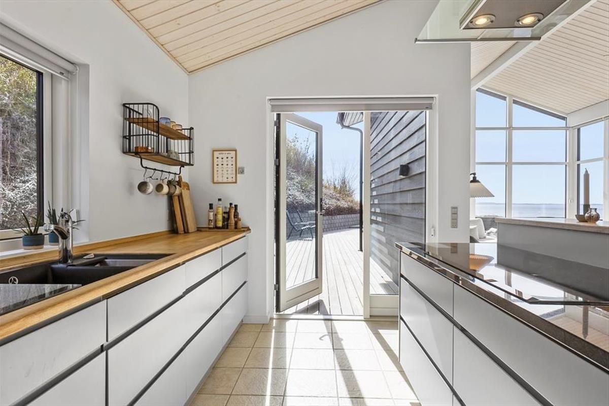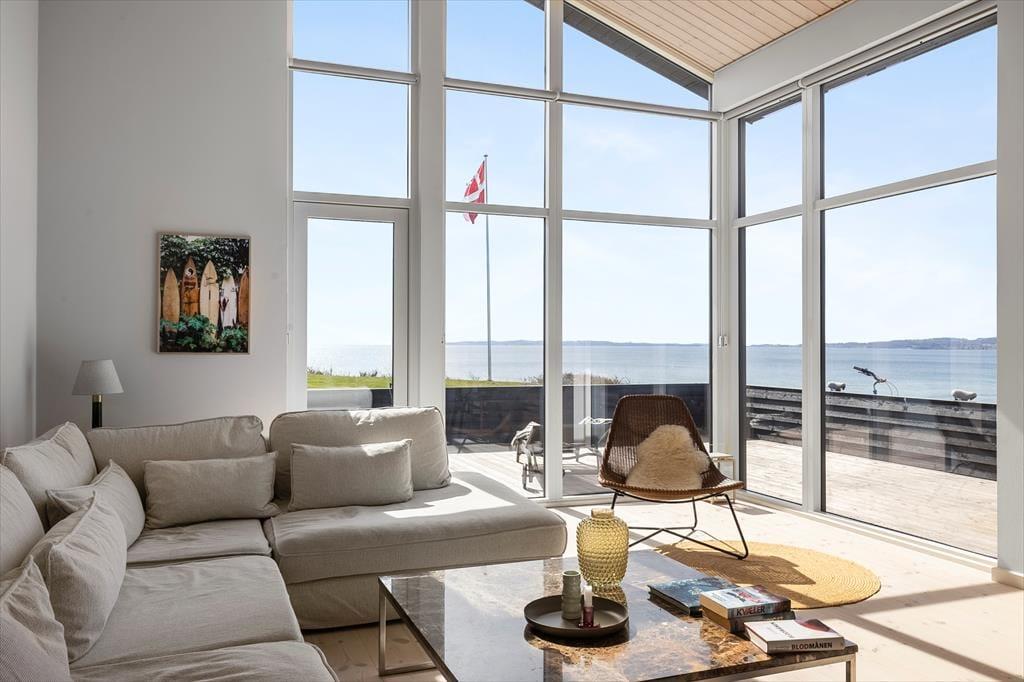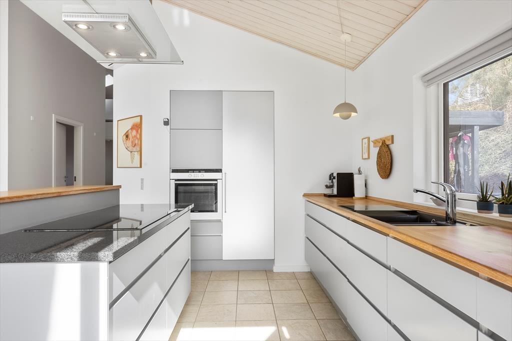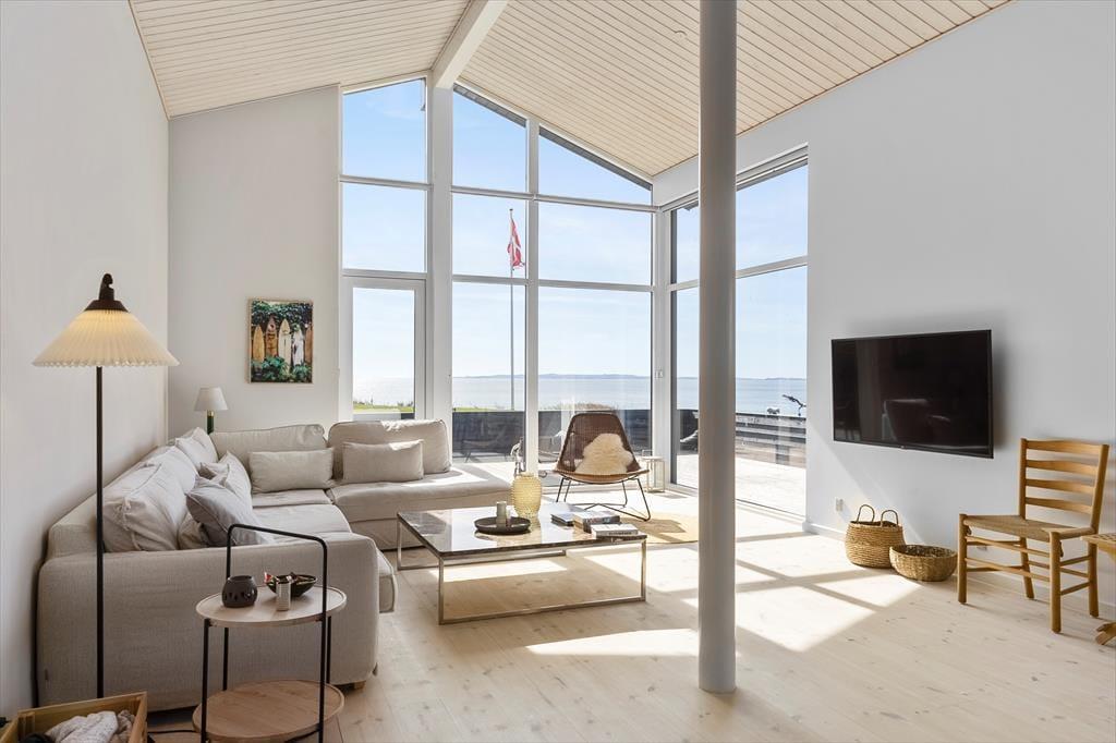 Tritt ein in dieses helle und freundliche Ferienhaus, in dem sofort Urlaubsstimmung aufkommt. Es ist mit viel Liebe zum Detail und einem Fokus auf Gemütlichkeit und Funktionalität eingerichtet – hier findest du alles, was du für einen entspannten Urlaub brauchst. Der offene Wohnbereich mit Küche und Wohnzimmer lädt zu gemeinsamen Stunden ein. Ob ihr zusammen kocht, am Esstisch spielt oder euch auf dem Sofa vor dem Kaminofen entspannt – hier fühlt ihr euch gleich wohl. Die großen Fensterfronten lassen viel Licht herein und geben dir das Gefühl, mitten in der Natur zu sein. Durch die schöne Aussicht auf das Wasser genießt du auch drinnen den Zauber der Umgebung. Das Haus verfügt über drei gemütliche Schlafzimmer, einen ausgebauten Schlafboden (Hems) und ein modernes Badezimmer – perfekt für Familien oder Freunde, die gemeinsam reisen.