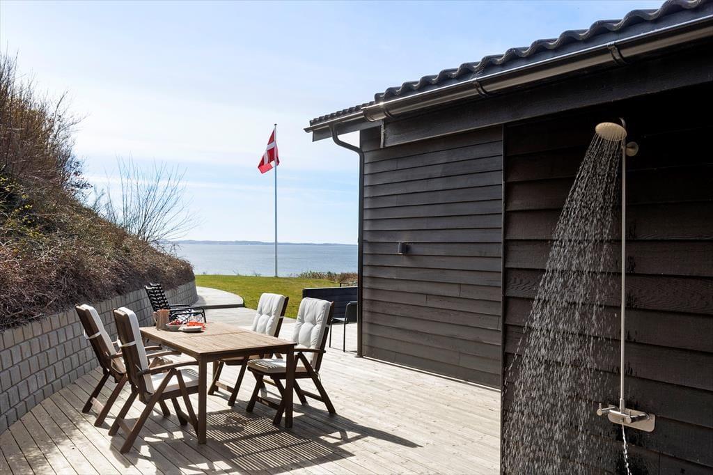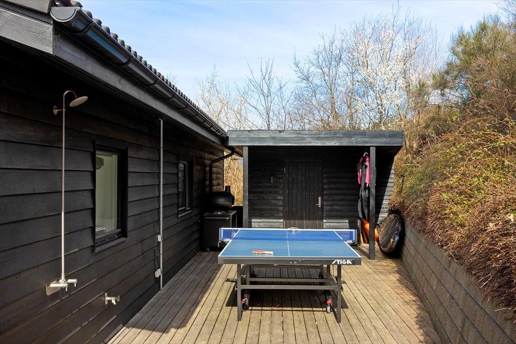 Draußen erwartet dich ein herrlicher Garten – und der Meerblick ist kaum zu übertreffen. Der Garten bietet viel Platz zum Spielen, Entspannen und Genießen. Auf der teilweise überdachten Terrasse kannst du den Grill anzünden und lange Sommerabende unter freiem Himmel verbringen. Vielleicht mit einem Glas Wein und Klängen aus der Natur im Hintergrund. Hier findest du sicher dein eigenes sonniges Plätzchen, kannst in Ruhe ein Buch lesen oder mit den Kindern auf dem Rasen Ball spielen. Wer Lust auf Bewegung hat, kann sich bei einer Runde Tischtennis austoben. Das Ferienhaus liegt in ruhiger Gegend, sodass du deinen Urlaub in friedlicher Atmosphäre genießen kannst – hier fällt der Alltagsstress ganz von selbst ab.