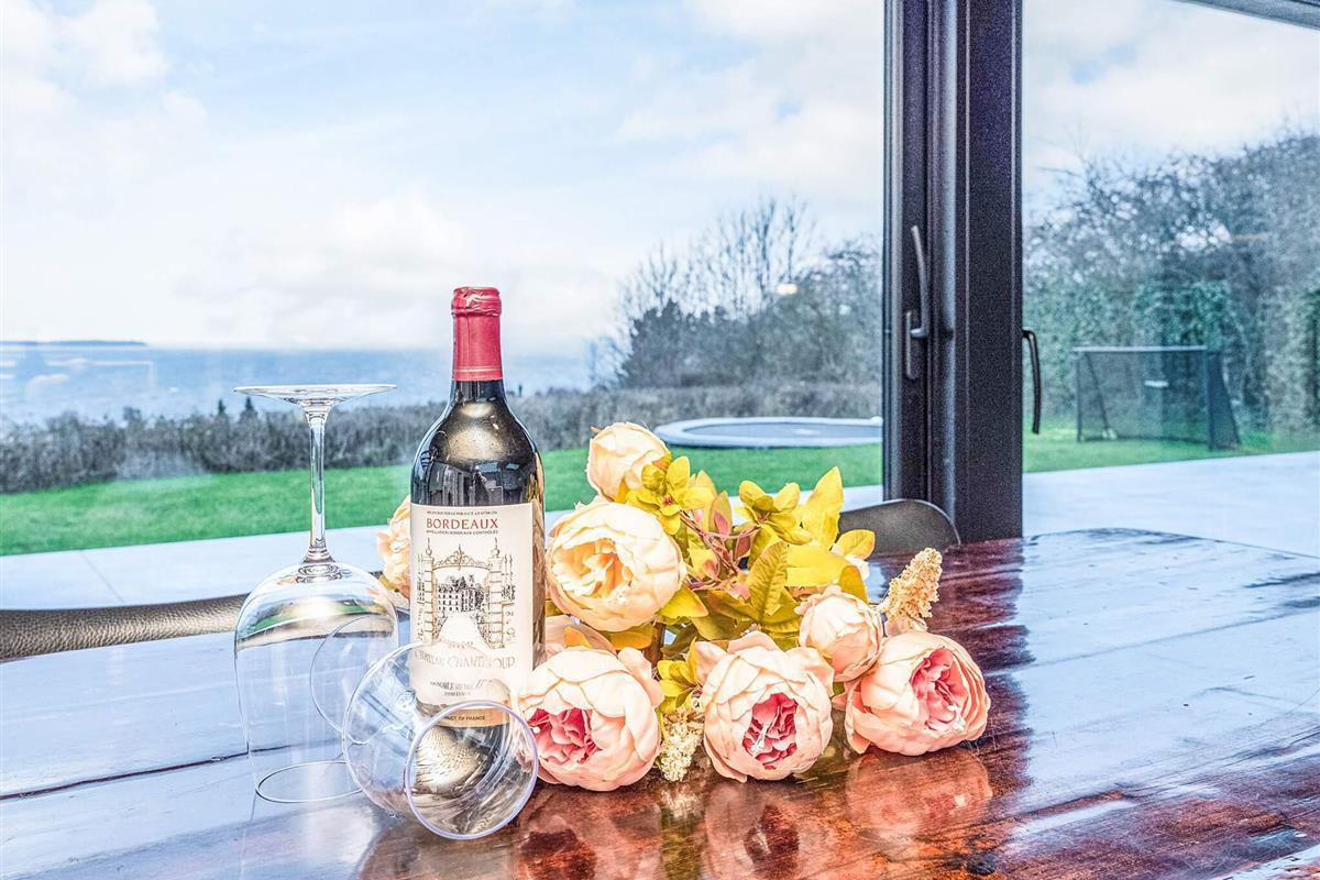 Und: Terrasse, Luft-Luft-Wärmepumpe, Luft-Wasser-Wärmepumpe, Grill, Naturgrundst. m. Bäumen 2000 m2, moderne Möblierung, Panorama-Seeblick, Nichtraucherhaus