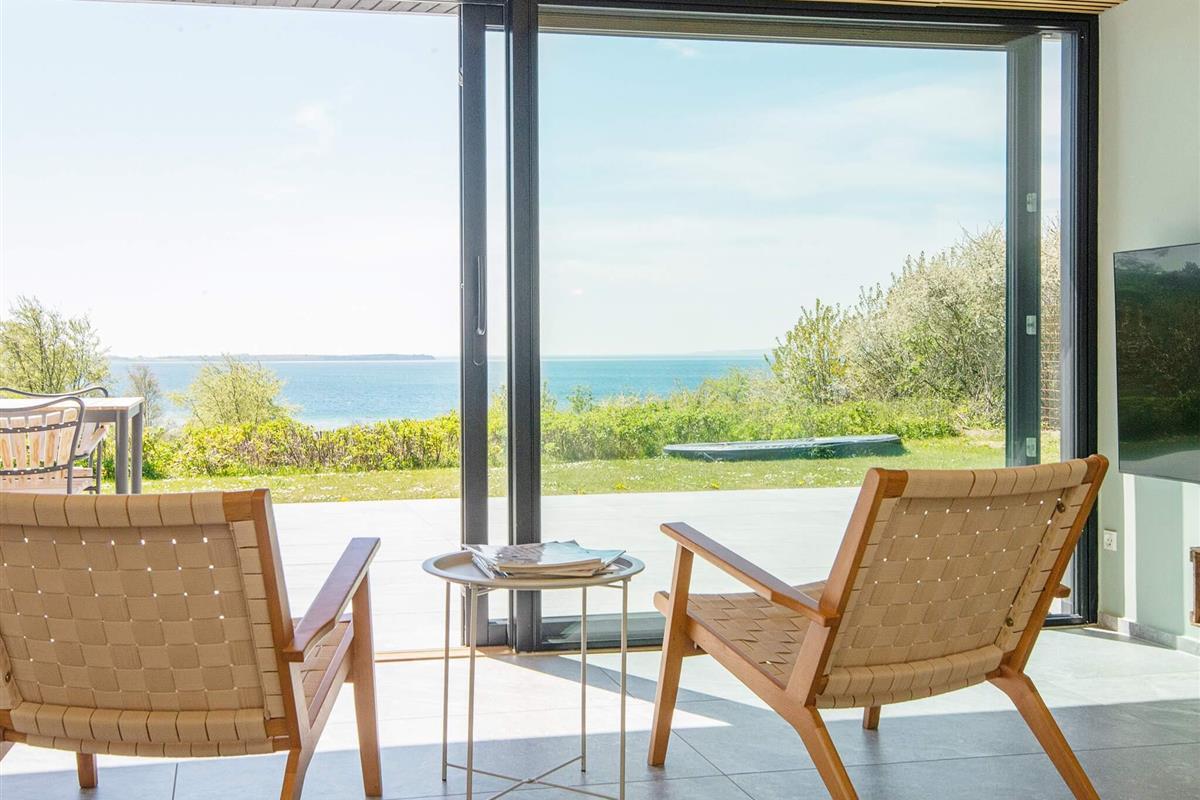 Das Ferienhaus verfügt über große Fenster, die viel Licht hereinlassen und einen fantastischen Blick auf das Wasser bieten! Mit fünf geräumigen Schlafzimmern gibt es viel Platz für Familie und Freunde. Das offene Wohnzimmer schafft eine gemütliche Atmosphäre, in der Sie die Gesellschaft des anderen genießen können, während die moderne Fußbodenheizung mit Luft-Wasser-System das ganze Jahr über für eine angenehme Innentemperatur sorgt.