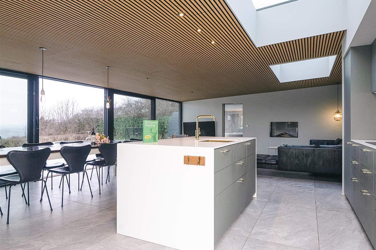 Dieses renovierte Ferienhaus bietet Luxus, Komfort und eine einzigartige Lage mit Panoramablick zum Wasser im Ebeltoft Vig! Hier bekommen Sie die perfekte Kombination aus Erholung und Aktivität in herrlicher Naturumgebung.