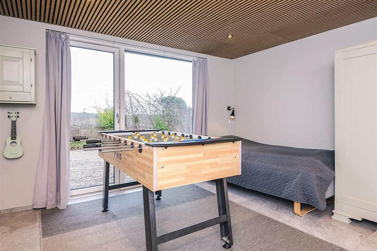 Draußen erwartet Sie eine große Holzterrasse, auf der Sie Ihren Morgenkaffee genießen oder Ihr Abendessen grillen können. Bitte beachten Sie, dass die Nutzung des Gasgrills auf eigene Kosten erfolgt. Im Garten finden Sie eine schöne Fass-Sauna, die zum Entspannen nach einem Tag voller Erlebnisse einlädt. Für zusätzlichen Komfort bietet das Ferienhaus einen großen Wellnessbereich, wo Sie ein erfrischendes Bad im Pool nehmen oder das Sprudeln im Whirlpool genießen können. Für aktive Gäste gibt es zudem einen Aktivitätsraum mit Tischfußball und PlayStation, sodass für viel Unterhaltung sowohl für Kinder als auch für Erwachsene gesorgt ist.\