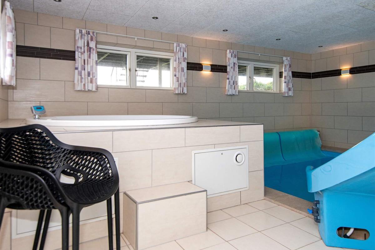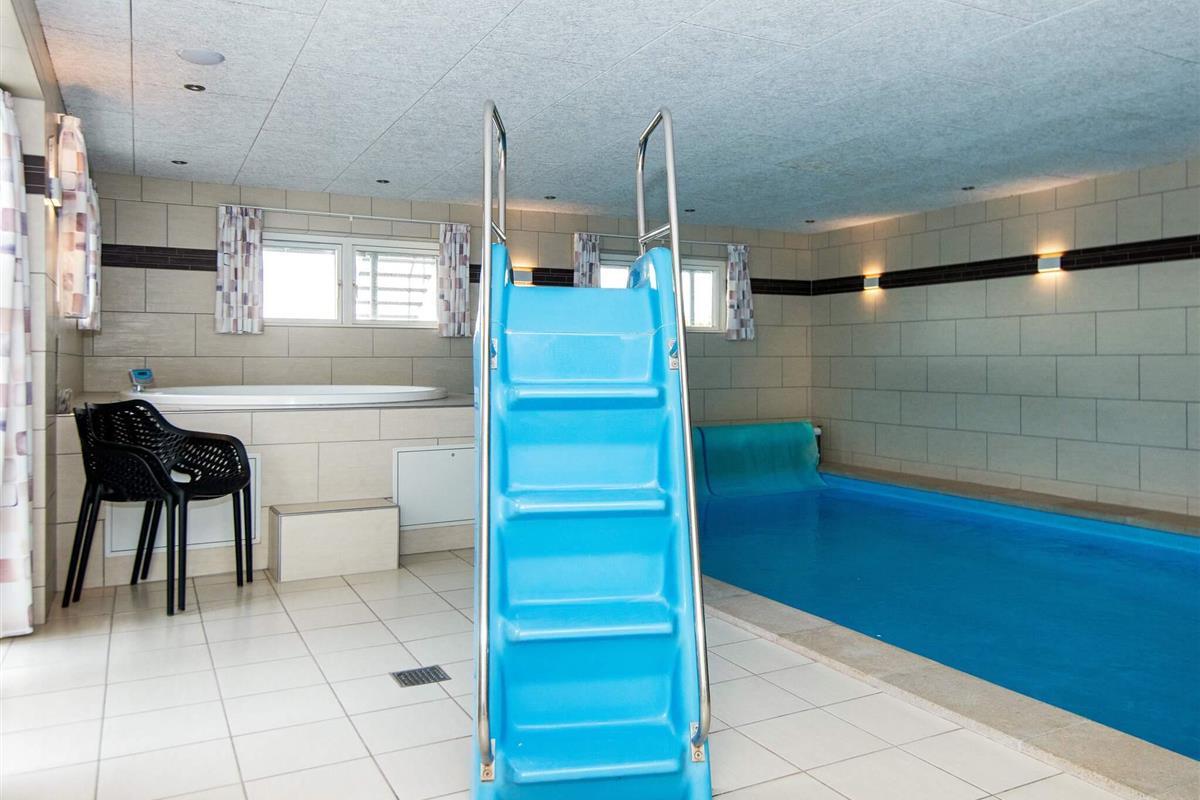 Der beeindruckende Poolbereich in der Kelleretage des Hauses verfügt über einen 20 m² großen Swimmingpool mit Wasserrutsche und Gegenstromanlage sowie über einen herrlichen Whirlpool mit Platz für max. 6 Personen und eine Sauna.