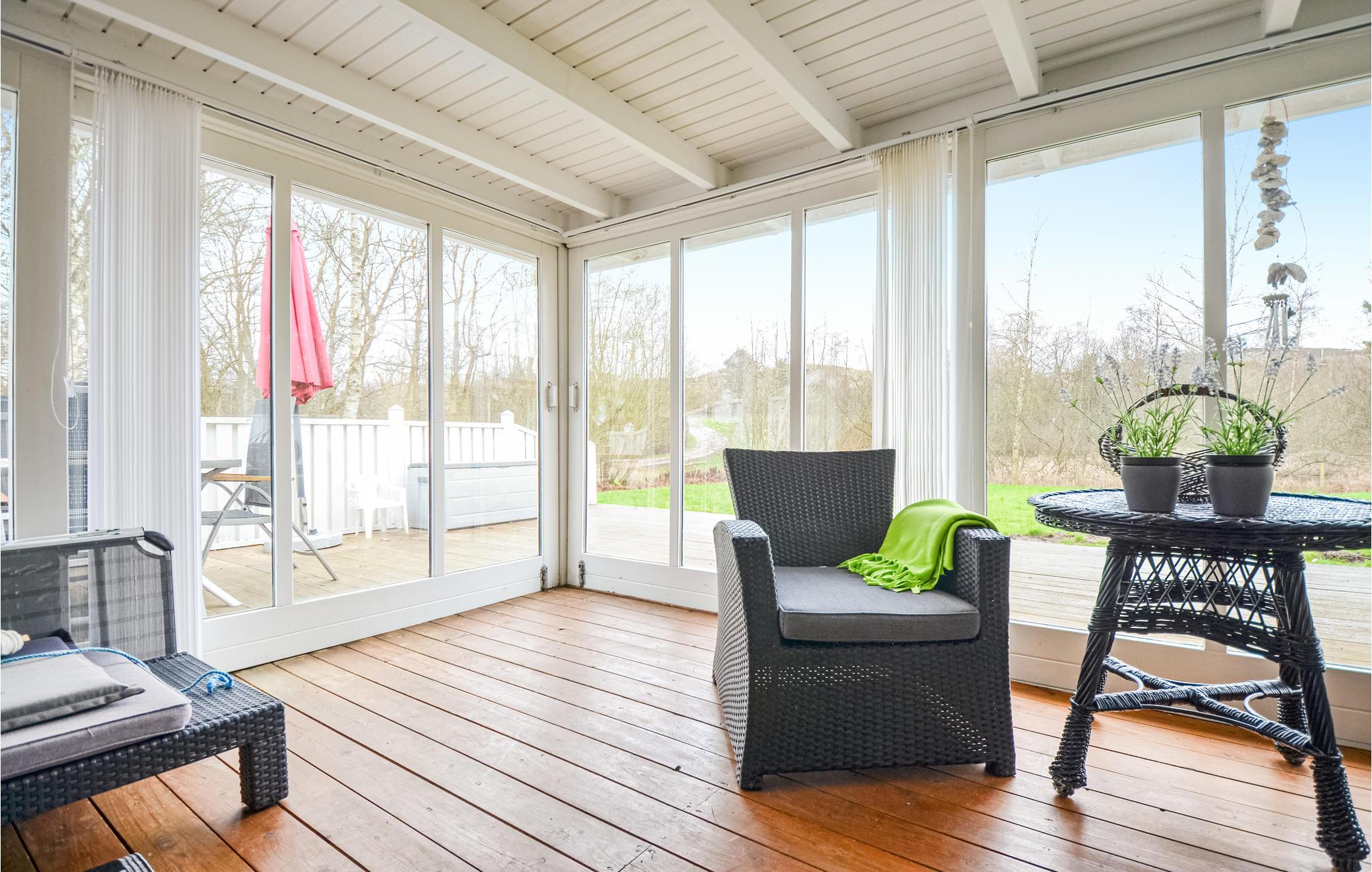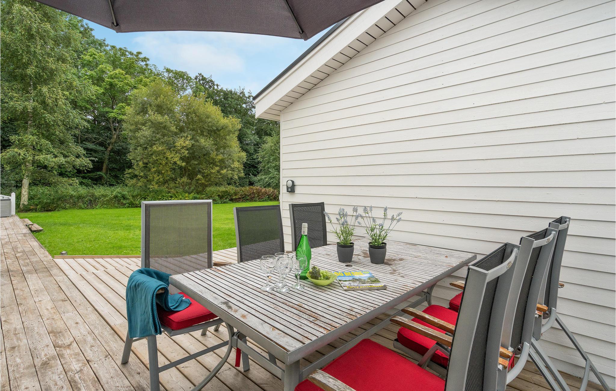 Dit mooie vakantiehuis, gelegen aan het einde van een straat, biedt gezellige kamers en is ideaal voor een gezin. Het grote gazon nodigt uit tot spelen en ravotten. Aan het einde van de tuin ligt een klein omheind meertje. Het padenstelsel biedt gemakkelijke toegang tot het strand, dat een aanlegsteiger heeft.