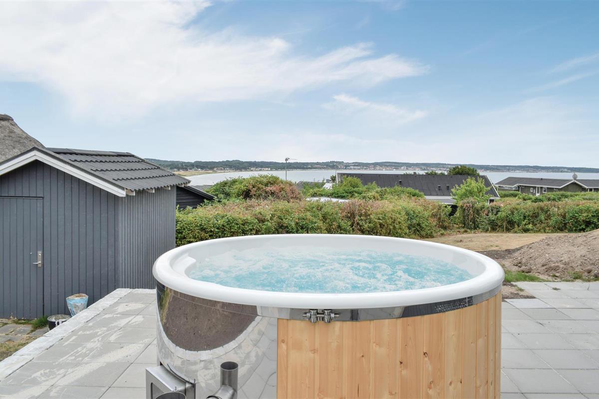 Groot, mooi terrein met gazon en verschillende terrassen. Hier woon je op vijf minuten van Ebeltoft en kun je ontspannende wandelingen of fietstochten langs het water maken. Vanuit de outdoor wellnessruimte met sauna en houtgestookte hot tub heb je een fantastisch uitzicht over de baai van Ebeltoft Vig. Hier kun je echt genieten van het buitenleven.