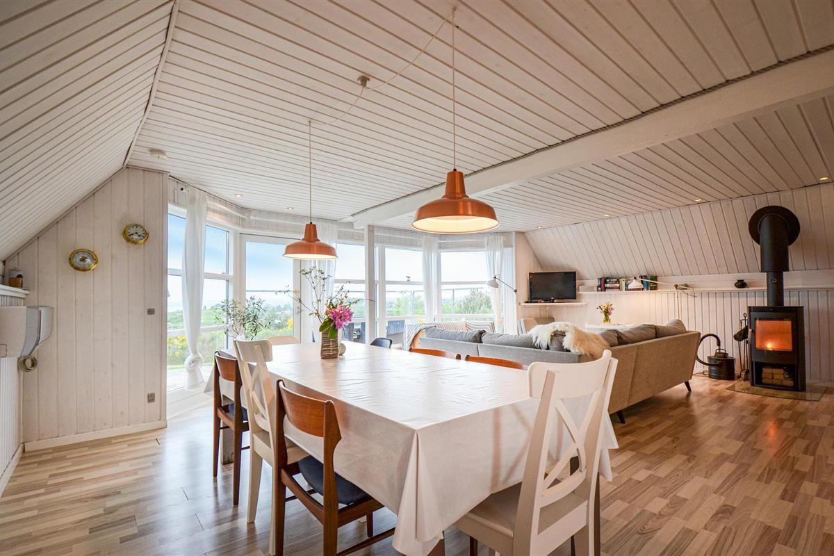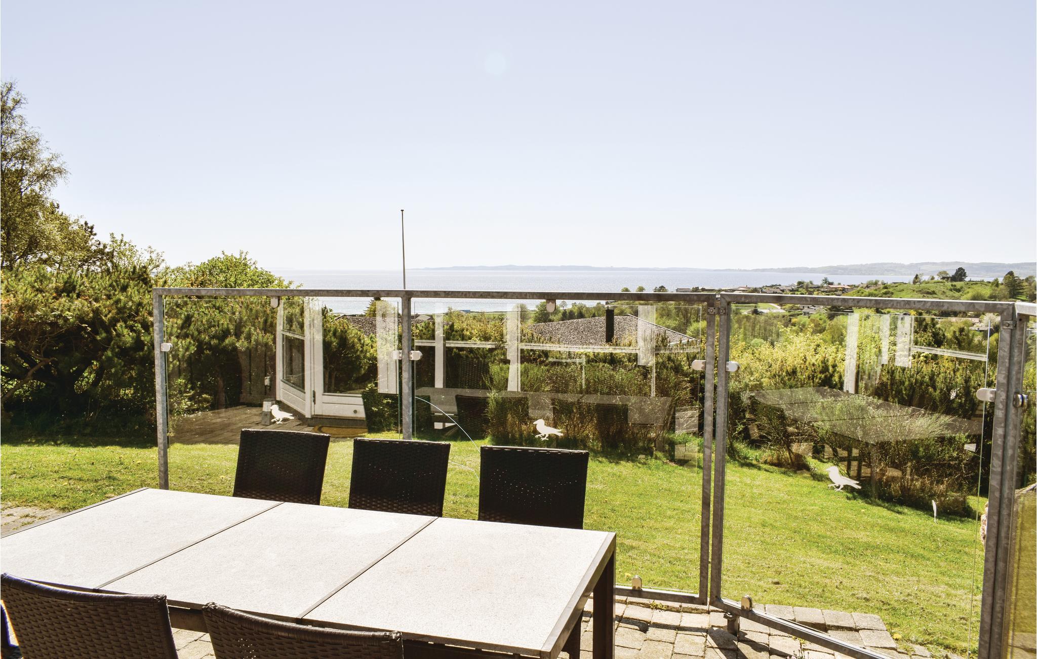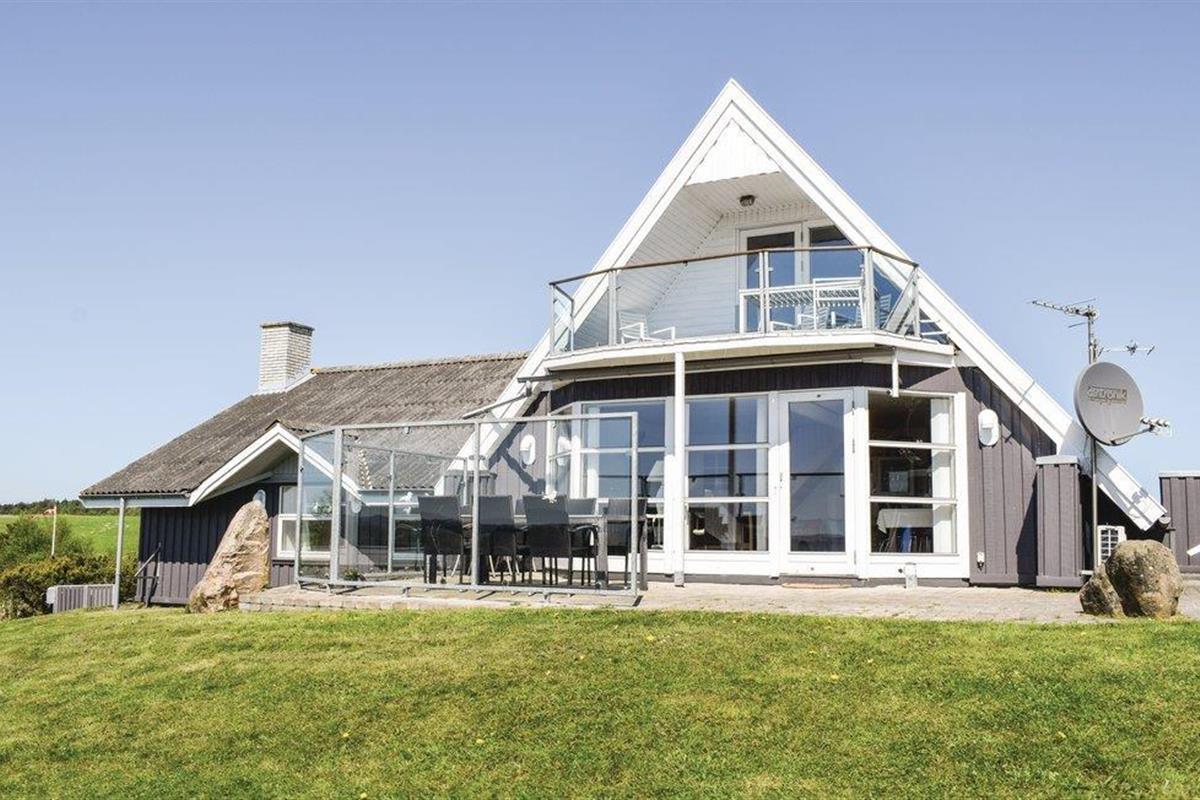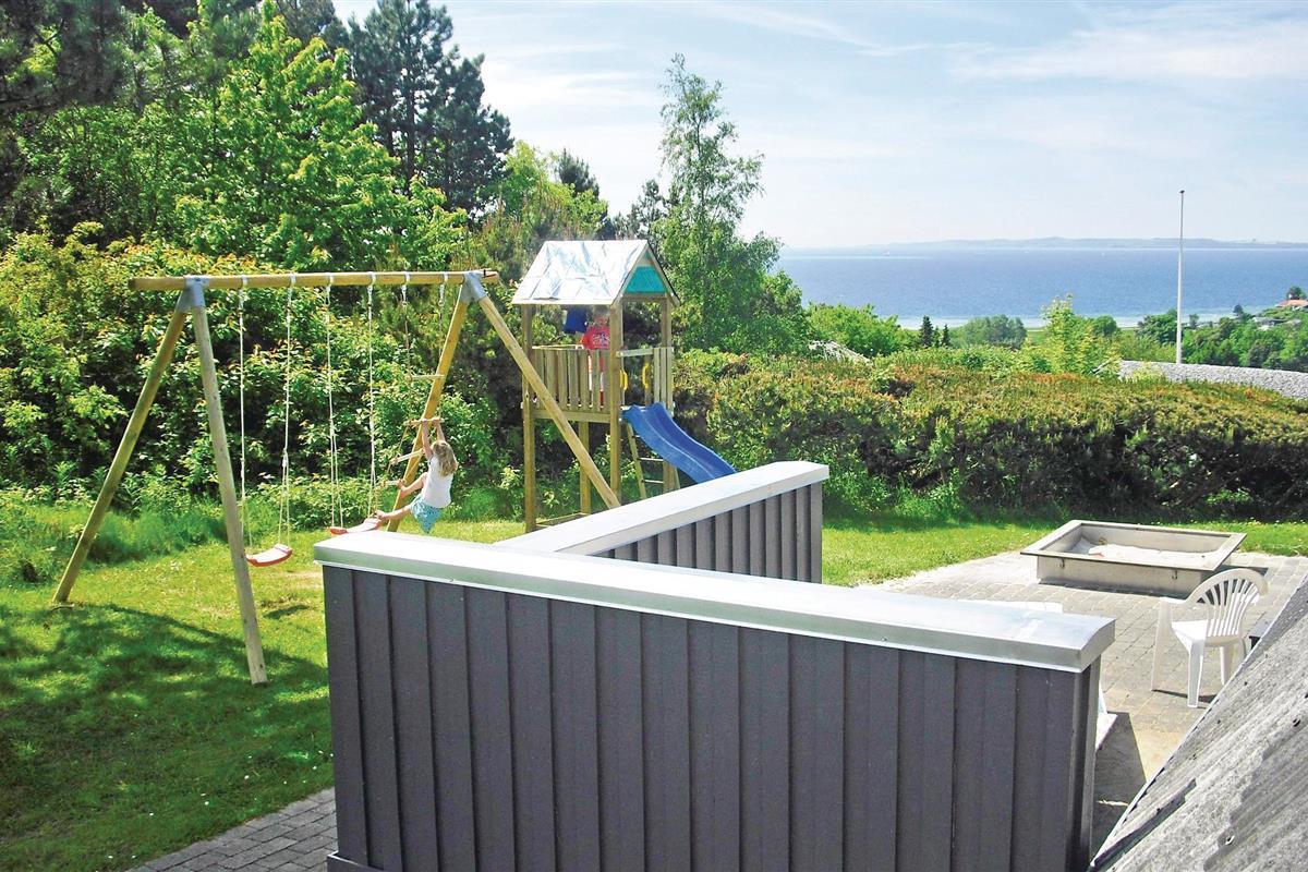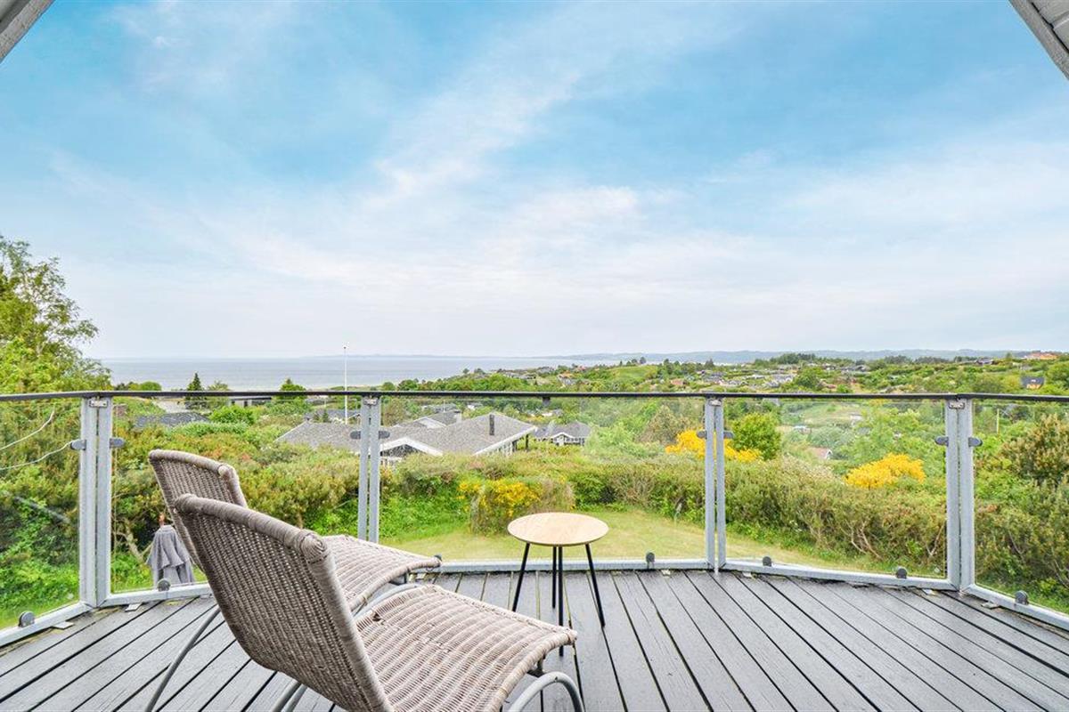 Vanuit het hooggelegen huis heeft u een prachtig uitzicht op Ebeltoft Vig en de omgeving. Het huis is stijlvol ingericht in lichte, vriendelijke kleuren, met mooie meubels en een keuken-woonkamer. Op de 1e verdieping bevindt zich een slaapkamer en de kijkkamer met balkon, waar u zeker graag zult vertoeven om de zonsondergang over Mols Bjerge te bewonderen. Op de begane grond zijn er twee badkamers, de grote met een sauna en een whirlpool, vier goede slaapkamers en al met al veel ruimte voor het hele gezin. Het huis ligt aan het einde van een rustige laan in het recreatiegebied, op een goed onderhouden perceel met gazons en aantrekkelijke beplanting.