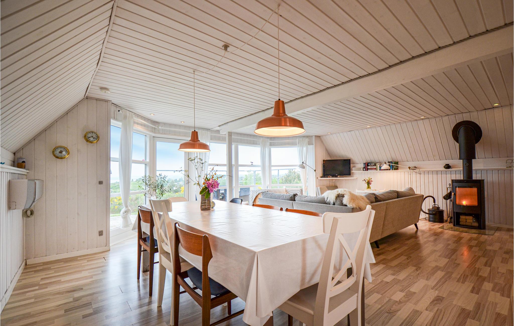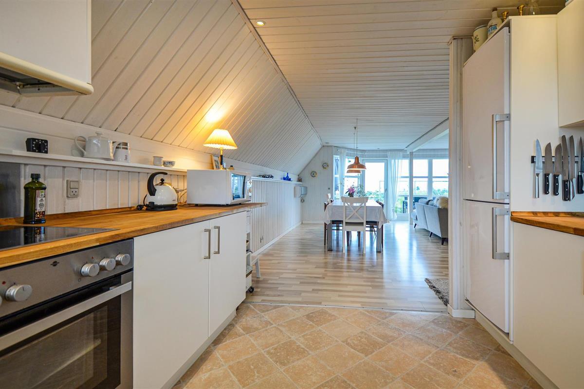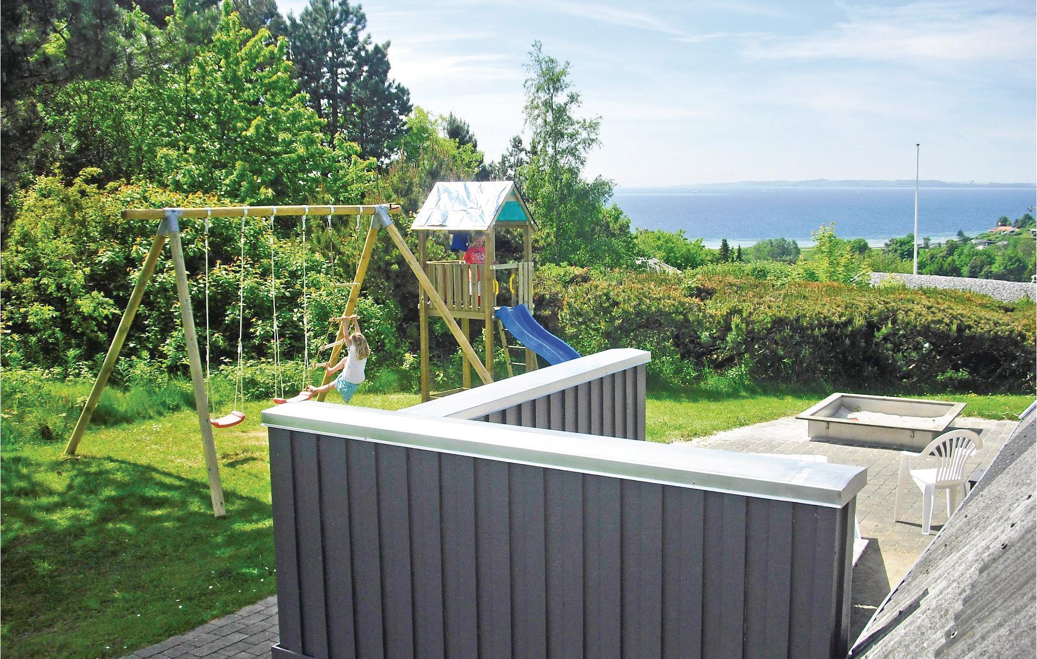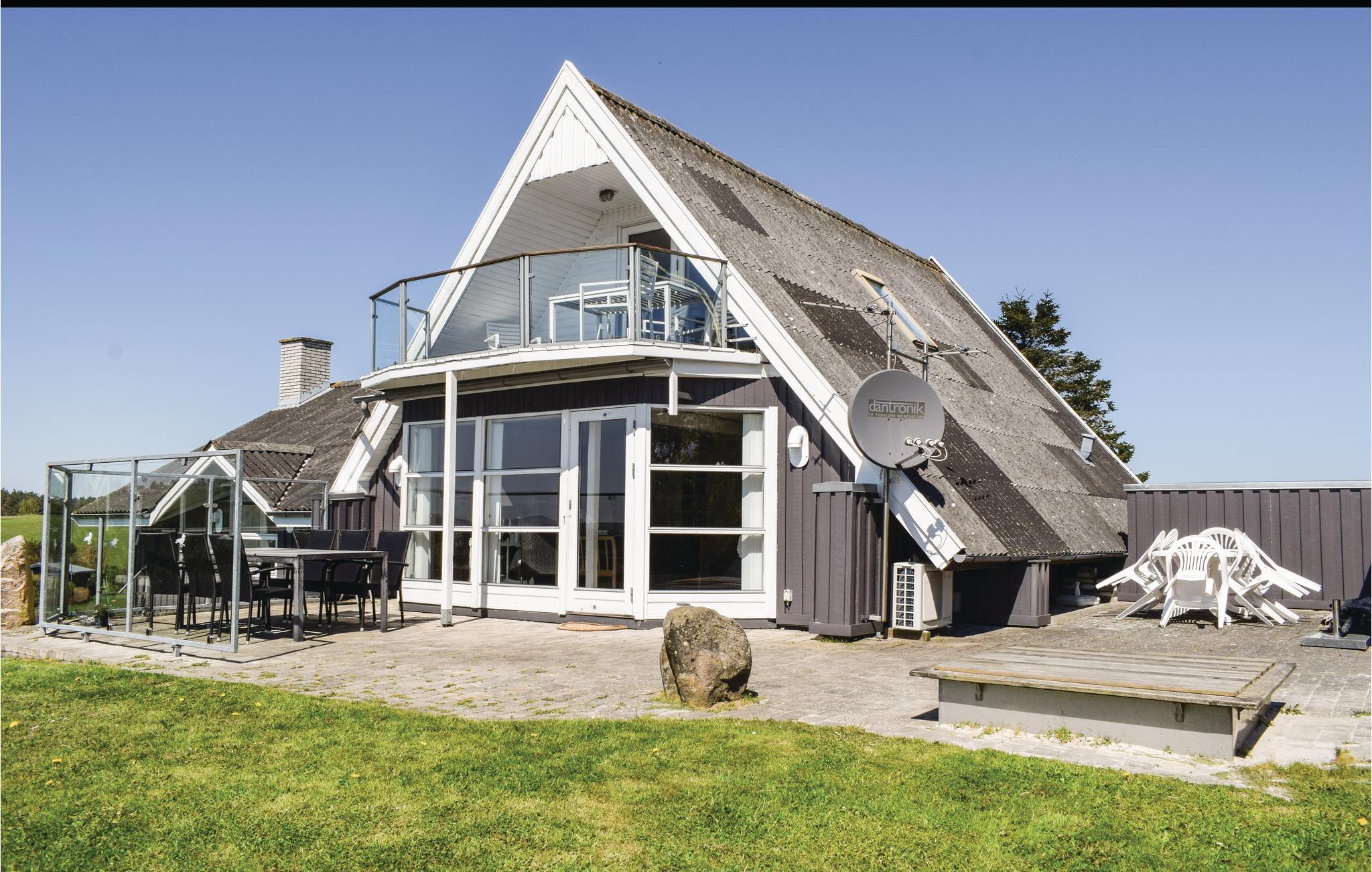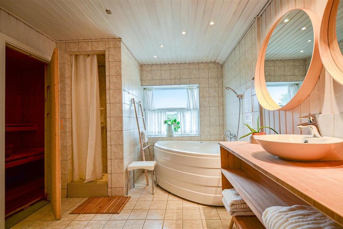 Vanuit het hooggelegen huis heeft u een prachtig uitzicht op Ebeltoft Vig en de omgeving. Het huis is stijlvol ingericht in lichte, vriendelijke kleuren, met mooie meubels en een keuken-woonkamer. Op de 1e verdieping bevindt zich een slaapkamer en de kijkkamer met balkon, waar u zeker graag zult vertoeven om de zonsondergang over Mols Bjerge te bewonderen. Op de begane grond zijn er twee badkamers, de grote met een sauna en een whirlpool, vier goede slaapkamers en al met al veel ruimte voor het hele gezin. Het huis ligt aan het einde van een rustige laan in het recreatiegebied, op een goed onderhouden perceel met gazons en aantrekkelijke beplanting.