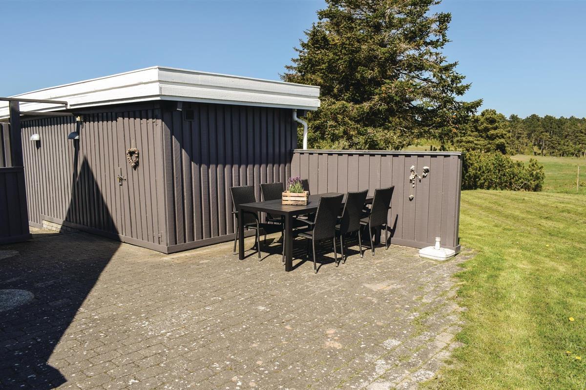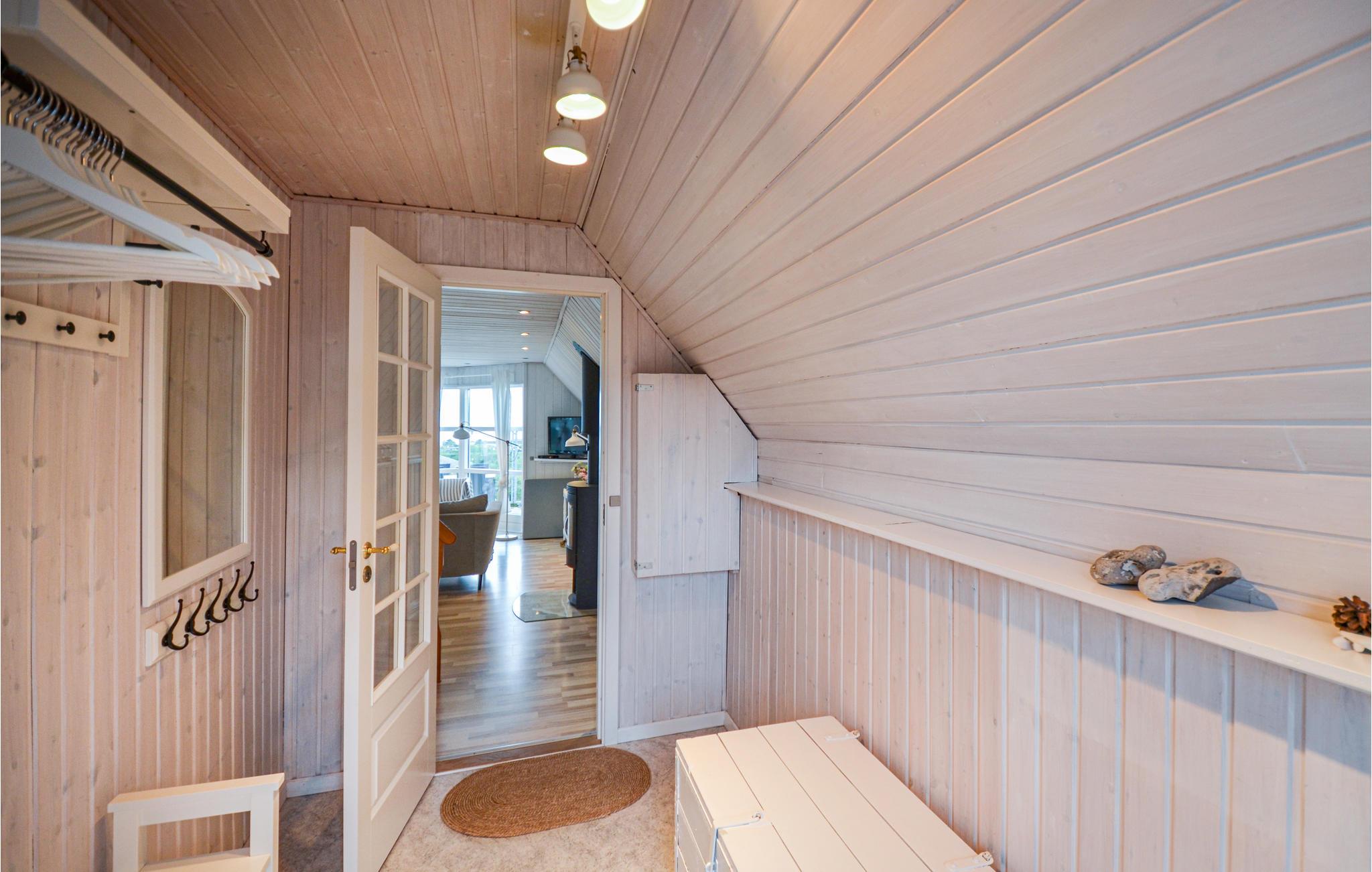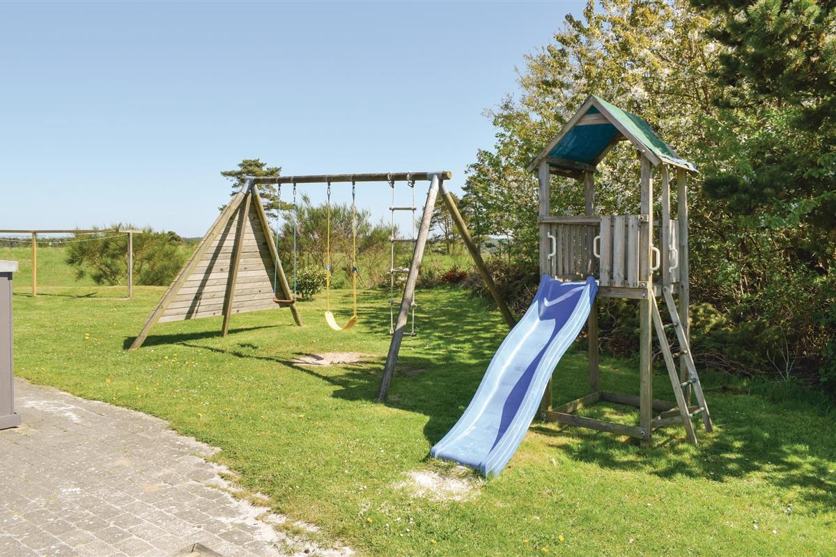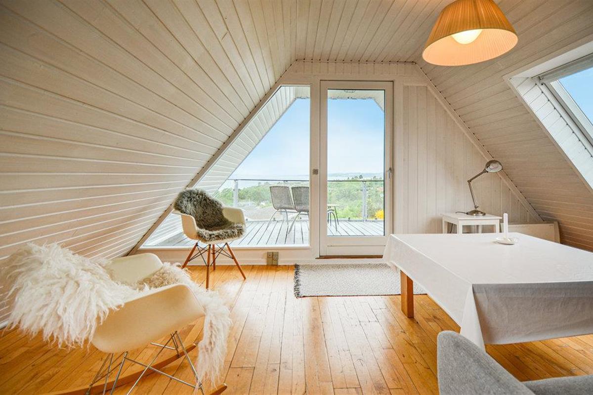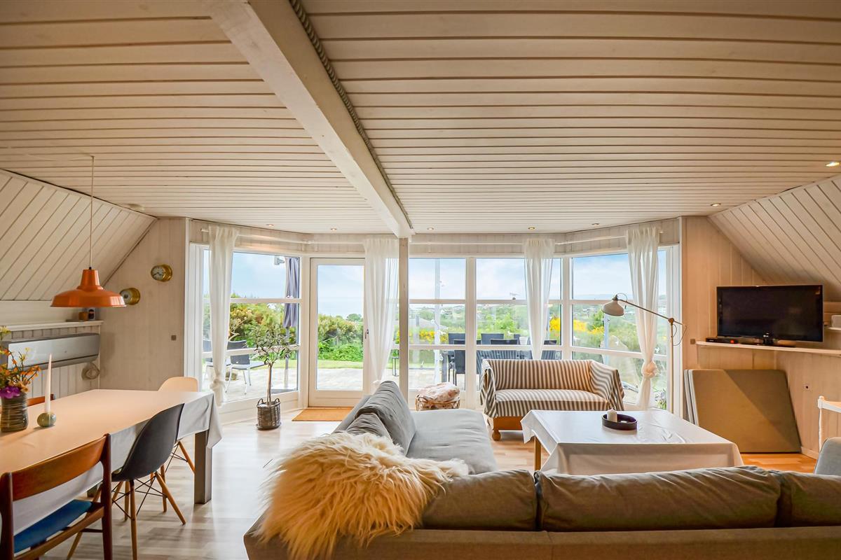 Vanuit het hooggelegen huis heeft u een prachtig uitzicht op Ebeltoft Vig en de omgeving. Het huis is stijlvol ingericht in lichte, vriendelijke kleuren, met mooie meubels en een keuken-woonkamer. Op de 1e verdieping bevindt zich een slaapkamer en de kijkkamer met balkon, waar u zeker graag zult vertoeven om de zonsondergang over Mols Bjerge te bewonderen. Op de begane grond zijn er twee badkamers, de grote met een sauna en een whirlpool, vier goede slaapkamers en al met al veel ruimte voor het hele gezin. Het huis ligt aan het einde van een rustige laan in het recreatiegebied, op een goed onderhouden perceel met gazons en aantrekkelijke beplanting.
