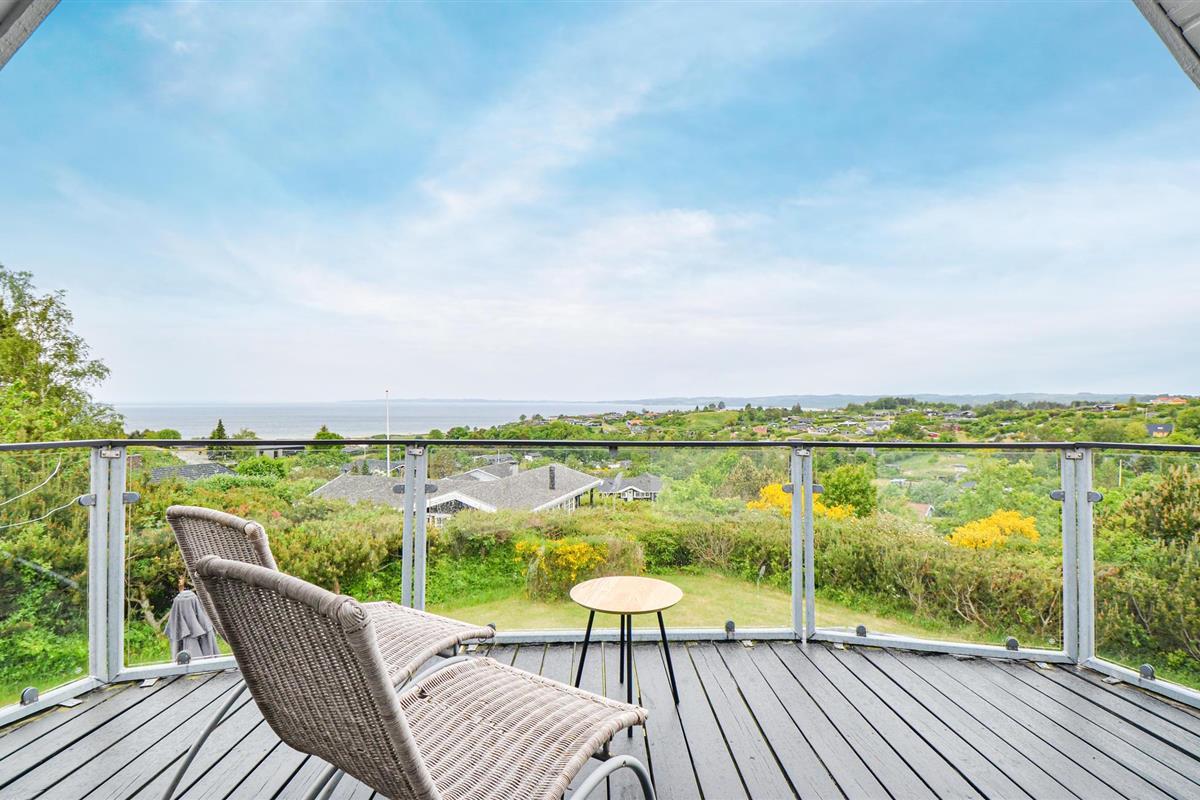 Stijlvol vakantiehuis met panoramisch uitzicht en sauna aan Egsmark Strand.