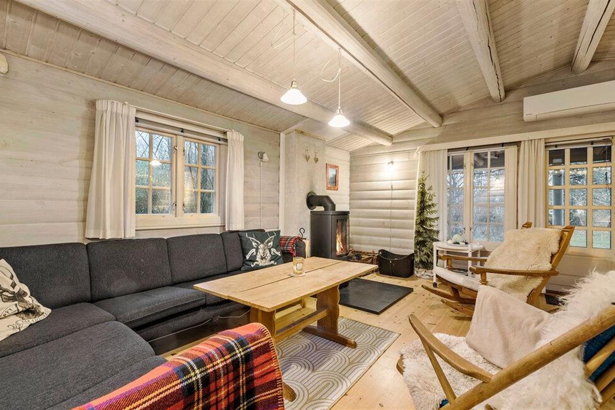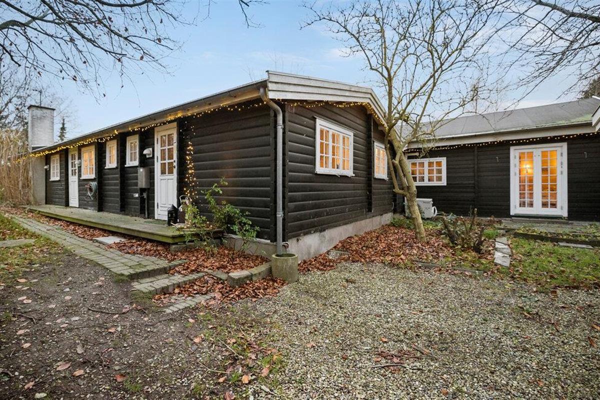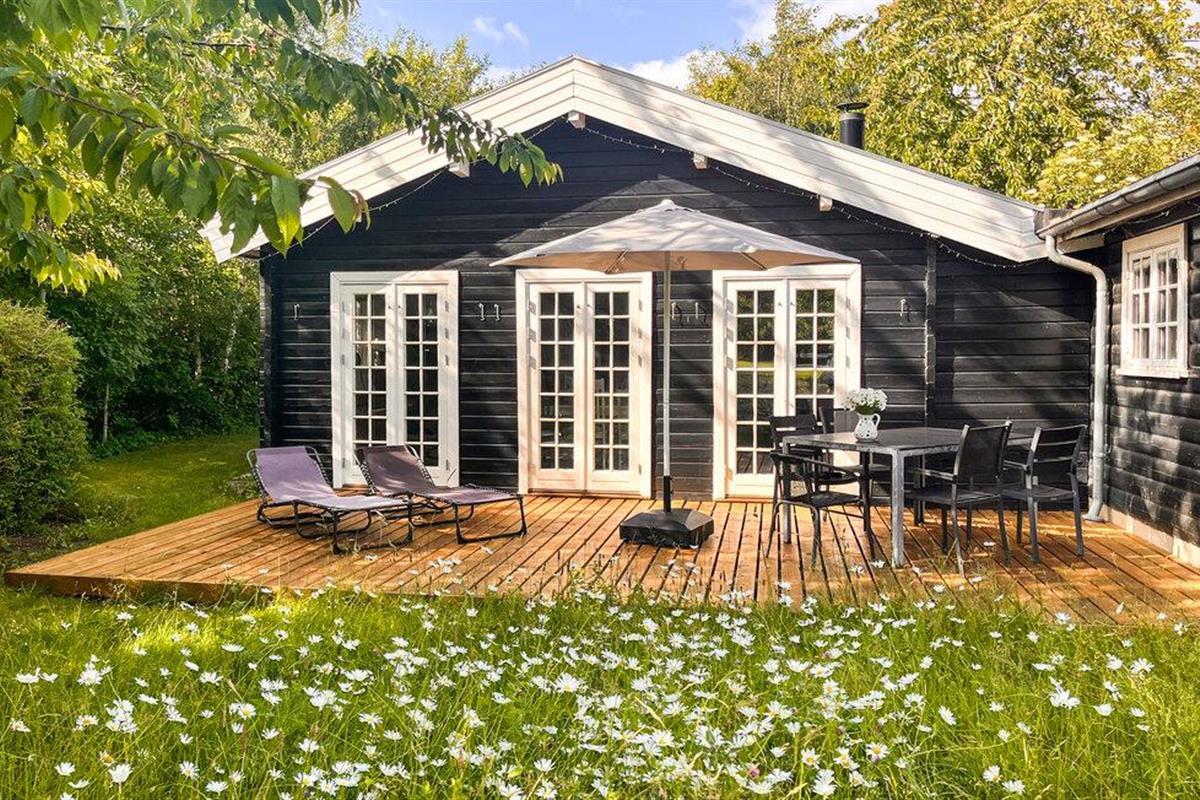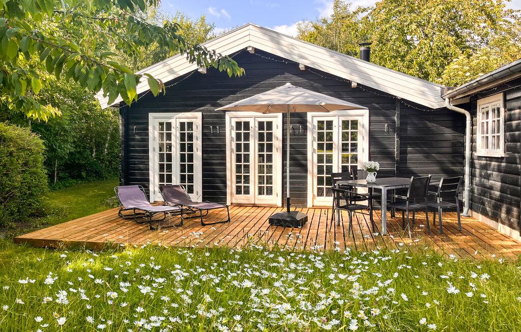 Charmante blokhut nabij Ejby Strand met grote tuin, houtkachel en terras, ideaal voor een ontspannen gezinsvakantie.