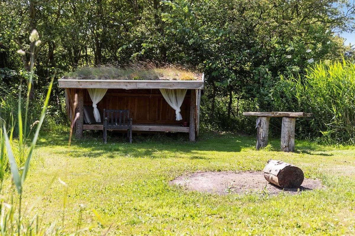 Das Leben draußen lässt sich auf der schönen Terrasse in vollen Zügen genießen – hier könnt ihr die Sonnenstrahlen einfangen, das Frühstück unter freiem Himmel einnehmen oder das Abendessen grillen, während sich der Tau sanft über den Garten legt. Der Blick auf die umliegende Landschaft vermittelt ein Gefühl von Ruhe und Freiheit – und das besondere Shelter, das zum Haus gehört, macht es möglich, eine Nacht unter freiem Himmel zu verbringen, wenn ihr Lust auf ein Urlaubserlebnis der besonderen Art habt. Der Garten ist grün und einladend, und sowohl Kinder als auch Erwachsene werden sich hier schnell wohlfühlen – beim Spielen, Entspannen oder vielleicht bei einem kleinen Mittagsschläfchen in der Sonne.
