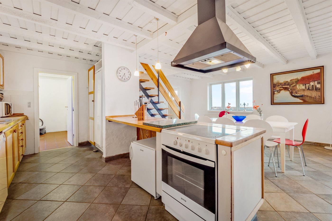 De keuken is uitgerust met koelkast Er zijn 4 keramische kookplaten, bakoven en vaatwasser. Vloerverwarming in de keuken.