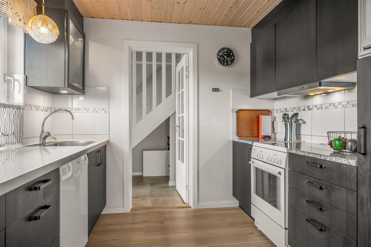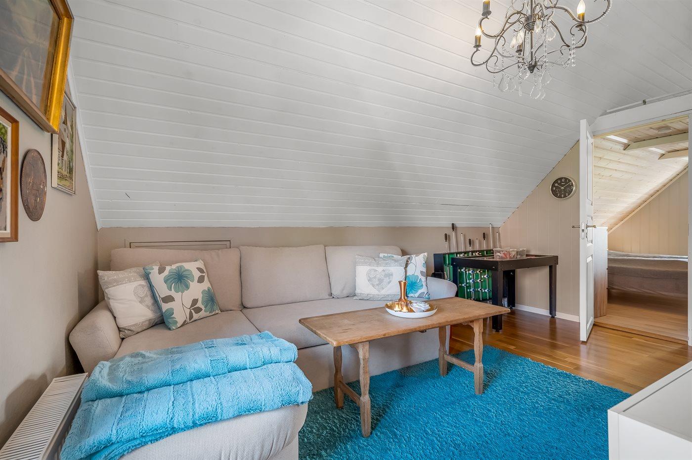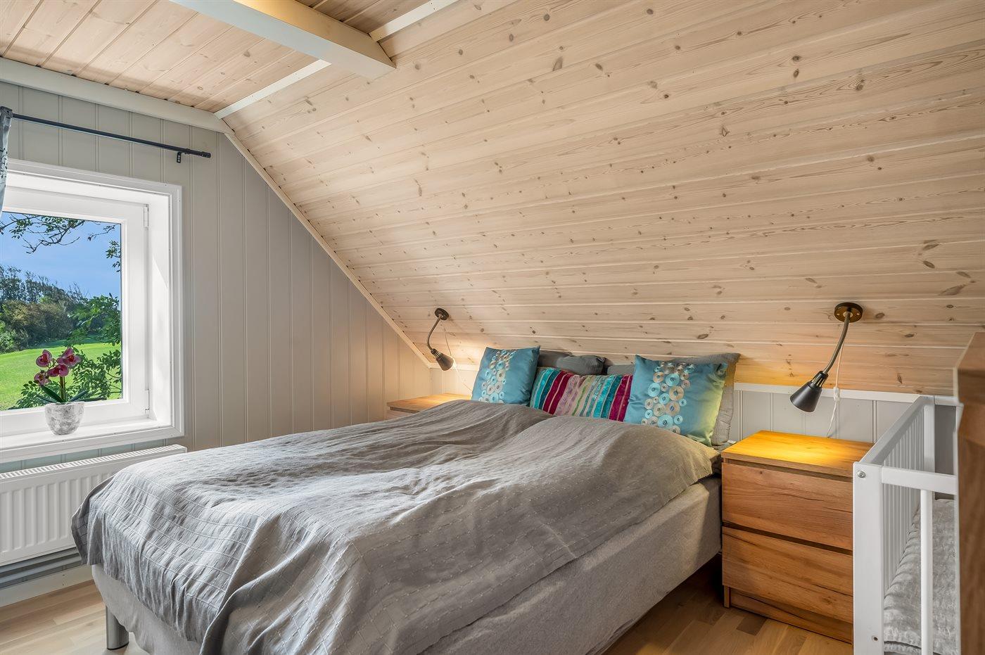 De vakantiewoning is gelegen op een 673 m² groot natuural grond. De grond is omheind. Afstand tot de fjord 2000 m. Dichtstbijzijnde winkel 2000 m. Bij de vakantiewoning hoort terras. Schommel. Zandbak. Speeltoren. Glijbaan.Vuurplaats. Barbecue. Parkeerplaats bij het huis.
