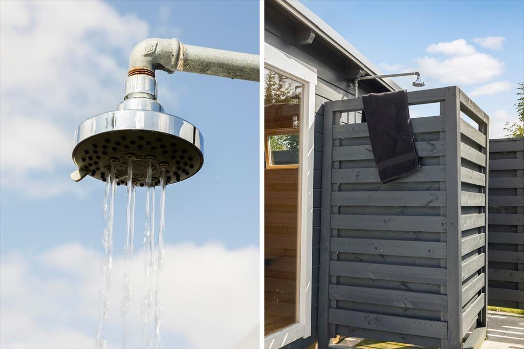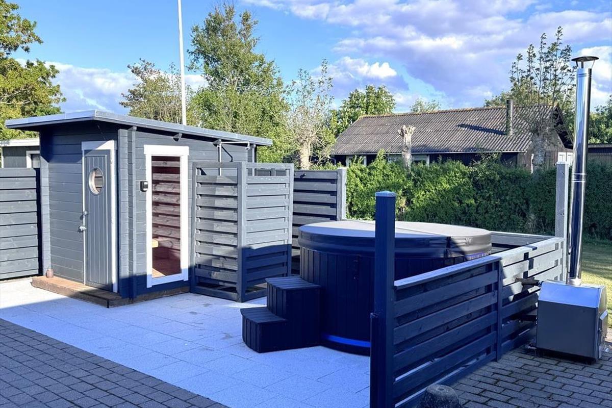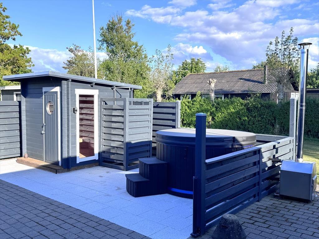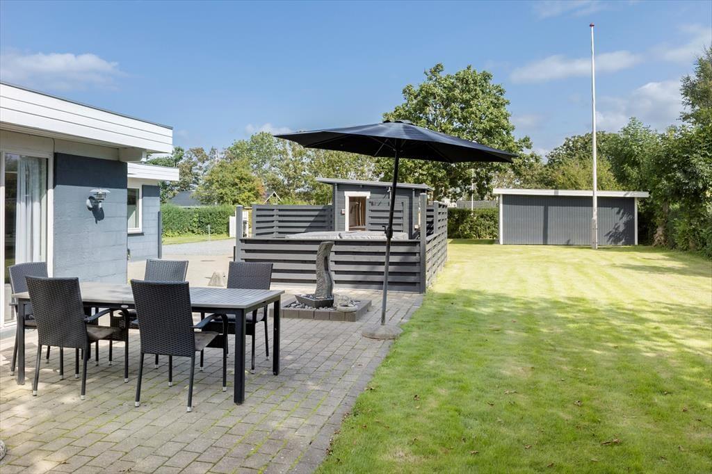Das grüne Gartengrundstück präsentiert sich mindestens genauso schön und gepflegt wie dein Ferienhaus. Zudem weiß es mit einigen schönen Details zu punkten. Zu diesen Details zählt beispielsweise das Terrassenareal, das als eine Art Outdoor-Wellnessbereich fungiert. Deine Familie darf sich auf eine große schöne Outdoor-Sauna und auf eine Außendusche freuen. Letztgenannte lädt nicht nur zu einem frischen Duschbad unter dem blauen Morgenhimmel ein, sondern spült euch nach einem Tag am Strand den Sand und das Salz von der Haut. Die gute Rasenfläche bietet beste Möglichkeiten für eine Runde Wikingerschach und andere unterhaltsame Familienspiele. Erholsame und ruhige Momente genießt ihr zusammen auf den offenen und überdachten Terrassenbereichen, die mit Gartenmöbeln ausgestattet sind.