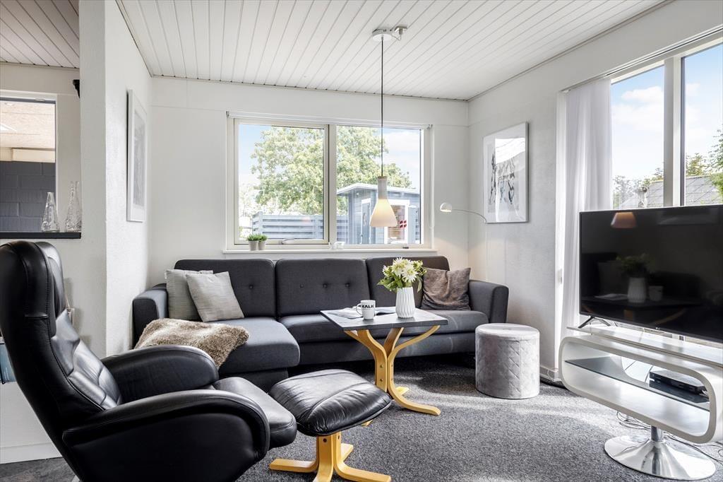 Dein Ferienhaus liegt ruhig platziert in der Sackgasse Solsortevej. Nur wenige Minuten trennen euch zu Fuß vom Strand. Dank der hauseigenen Sauna spricht absolut nichts gegen viele erfrischende Bäder im kühlen Nass - selbst außerhalb der warmen Sommermonate. Im Sommerhalbjahr werdet ihr ganze Tage an der Wasserkante verbringen. Am Ejsingholm Strand könnt ihr sehr gut baden, planschen, spielen und spazieren gehen. Auf beste Möglichkeiten dürfen sich natürlich auch Wassersportler wie SUP-Boarder und Kajakfahrer freuen. Angler treffen ebenfalls auf gute Bedingungen. Der Sportboothafen Handbjerg Marina erweist sich als beschauliches, wunderbar maritimes Ausflugsziel am Fjordufer. Gut per Pkw oder Fahrrad erreichbar ist zudem die Handelsstadt Struer, die mit dem Struer Museum, einem Yachthafen, einem beliebten Kurbad sowie Geschäften und Lokalitäten zu überzeugen weiß.