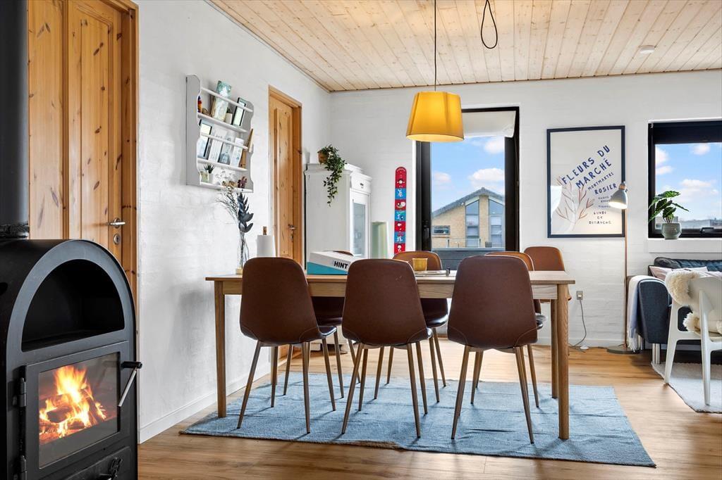 Vakantiehuis in Venø Bugt, De Limfjord, met plaats voor 6 volwassenen en 2 kinderen. De woning heeft een gezellig interieur met o.a. een houtkachel, en beschikt daarnaast over een wasmachine, een vaatwasser en een wasdroger.