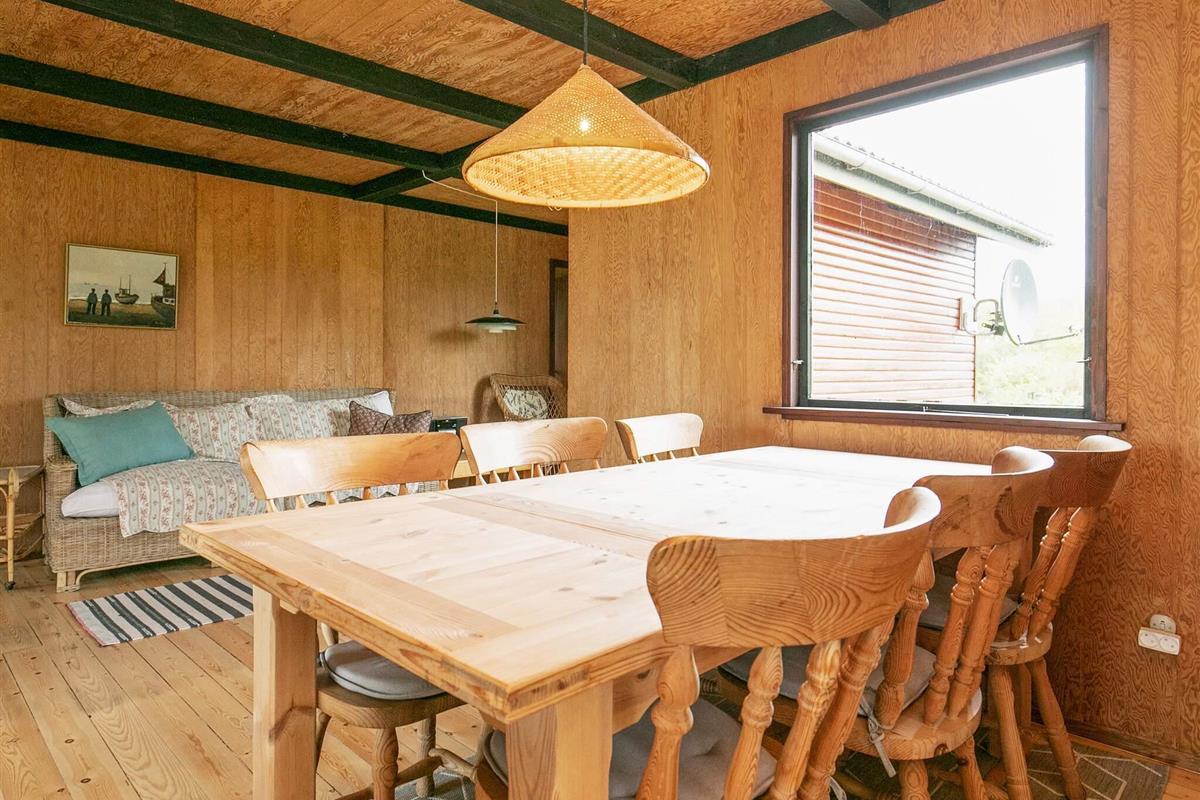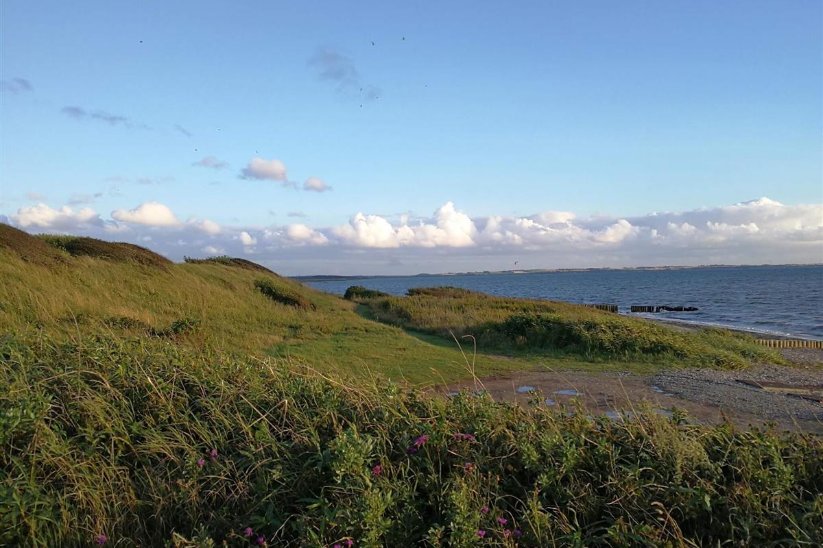 Ferienhaus in der 1. Reihe, mit Ausblick zum nahen Limfjord, sowohl vom Inneren als auch von der Terrasse. Im preiswerteren Haus gibt es einen Küchen-/Wohnbereich mit Holzofen für kühlere Abende und deutschen Sendern zur Auswahl im TV. In der Küche u.a. Ceranfeld. Außerdem Bad mit Dusche/WC und drei Schlafzimmer im Haus. Ein Teil der Terrassenfläche draußen ist überdacht und steht für Grillabende mit Ausblick zum Sonnenuntergang bereit. Sie wohnen hier nur ca. 100 m Luftlinie vom Fjordufer, in einem ruhigen Ferienhausgebiet mit kinderfreundlichem Strandufer. Dieses günstige Ferienhaus bietet keinen Luxus, dafür erstklassige Lage dicht am Wasser.