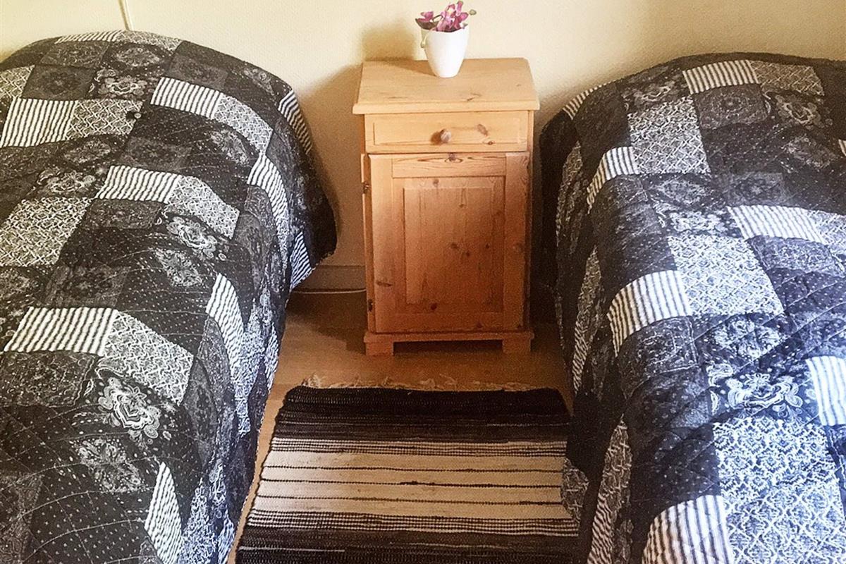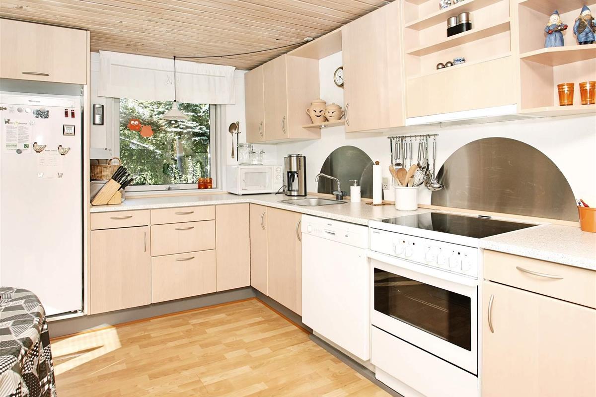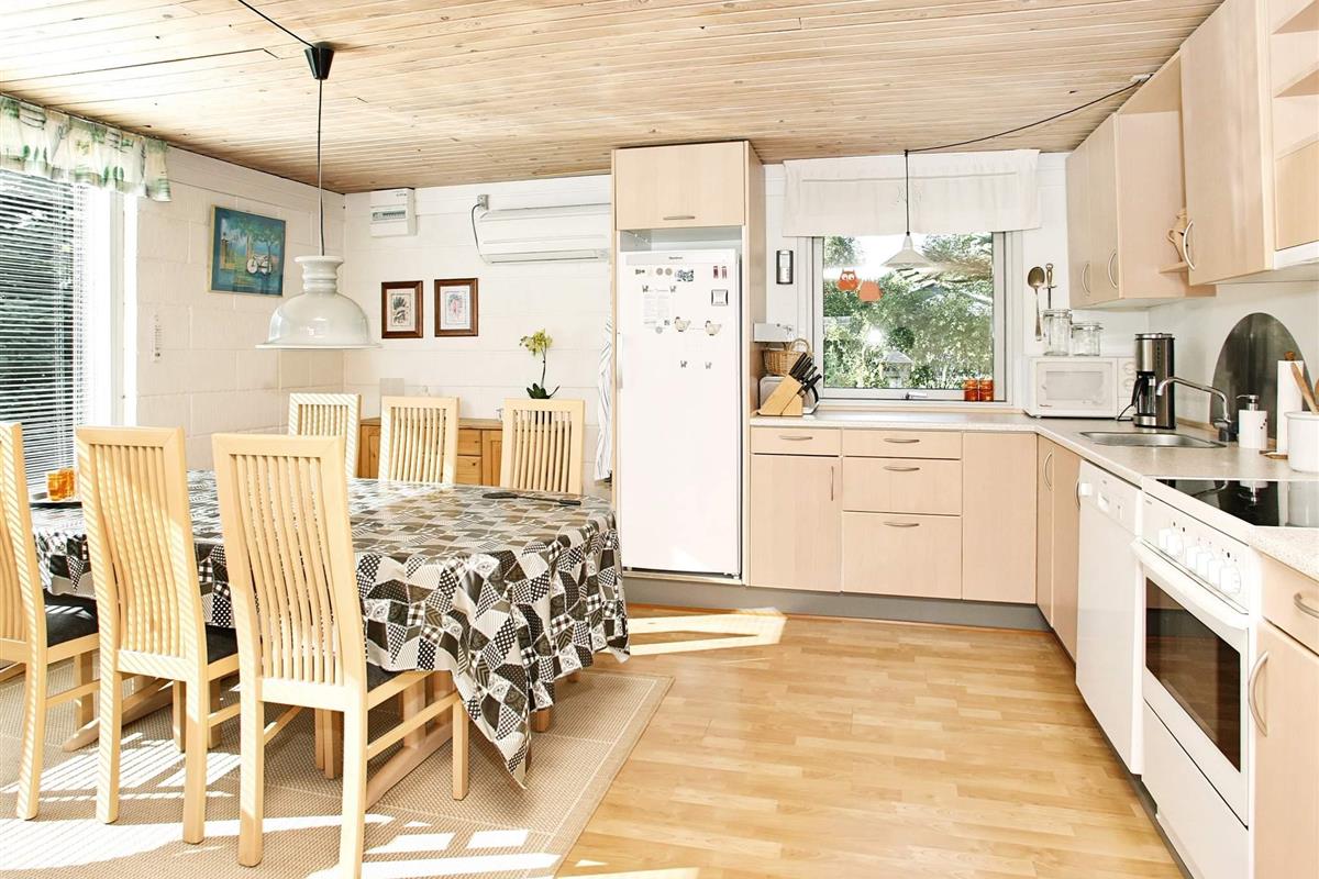Von dem 32 m² großen Küchen-/Wohnbereich mit Holzofen hat man auch Zutritt zur 25 m² großen Glasveranda und weiter zu Terrasse und Grundstück. Zur guten Küchenausstattung gehören Ceranfeld, Mikrowelle und Geschirrspüler. Das Doppelbett im Haus ist 120 cm breit. Das Etagenbett eignet sich am besten für Kinder. Für die kleinsten Gäste gibt es eine Schaukel im Garten. Das Ferienhaus ist hell und familienfreundlich eingerichtet.
