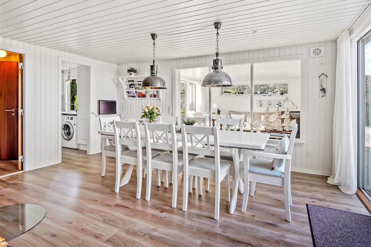 Das Ferienhaus ist hell und einladend und praktisch eingerichtet. Es verfügt über eine kombinierte Wohnküche mit direktem Zugang zum Wohnzimmer. Sowohl draußen als auch drinnen genießen Sie einen Panoramablick auf das Wasser.