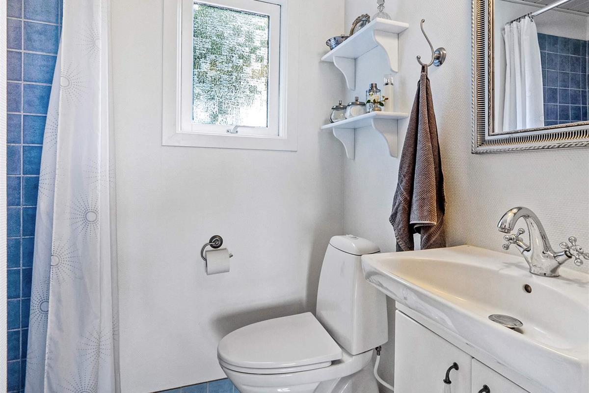 Das Badezimmer verfügt über Dusche, WC und Fußbodenheizung. Eine Waschmaschine ist ebenfalls vorhanden. Dank der Wärmepumpe ist das Haus energieeffizient und ermöglicht so einen geringeren Verbrauch.