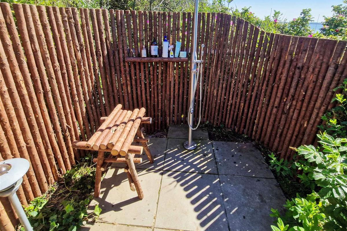 Hinweis: Neu – Umweltfreundliche, solarbeheizte Außendusche.