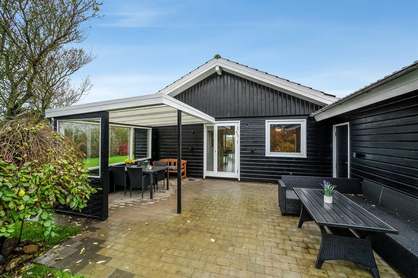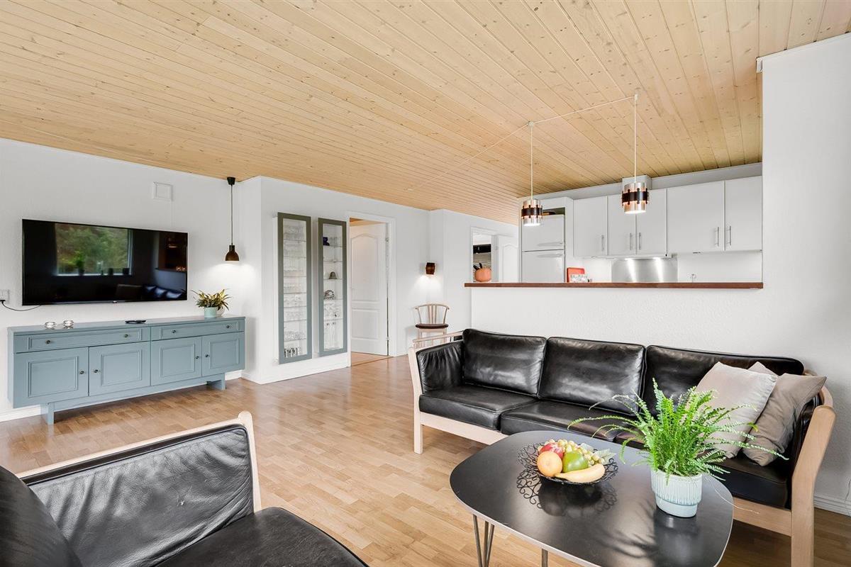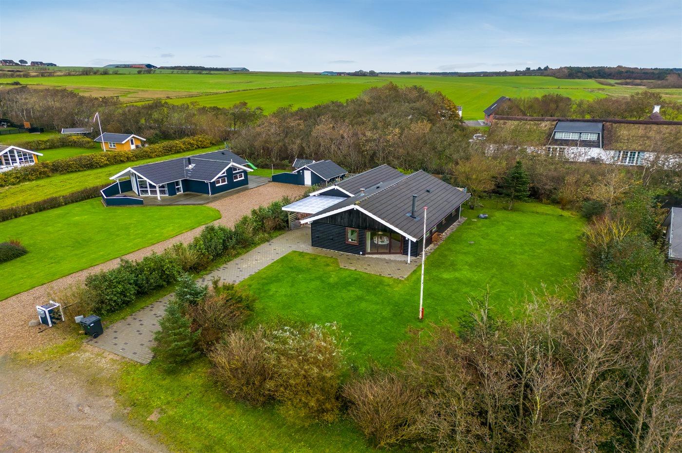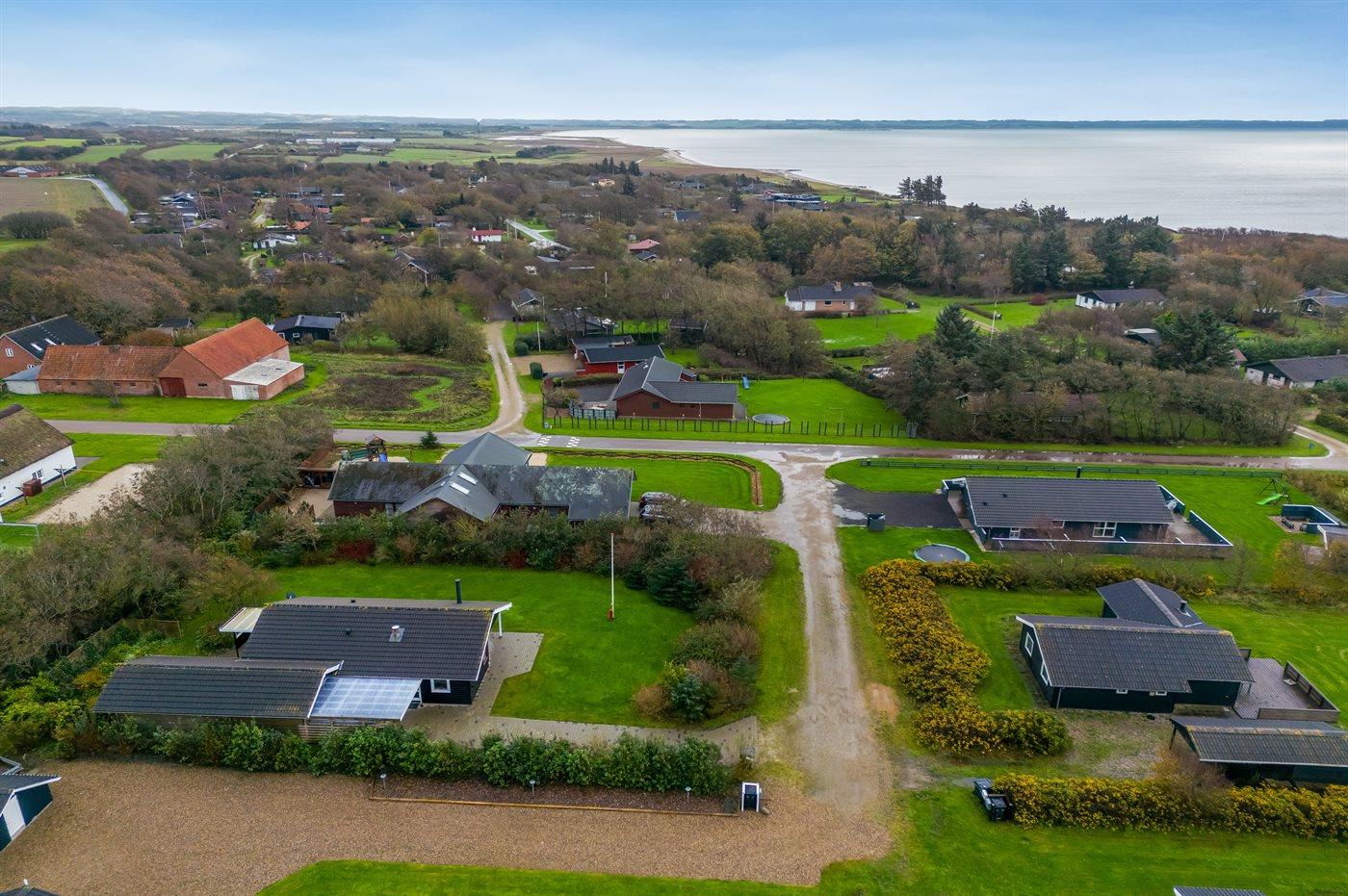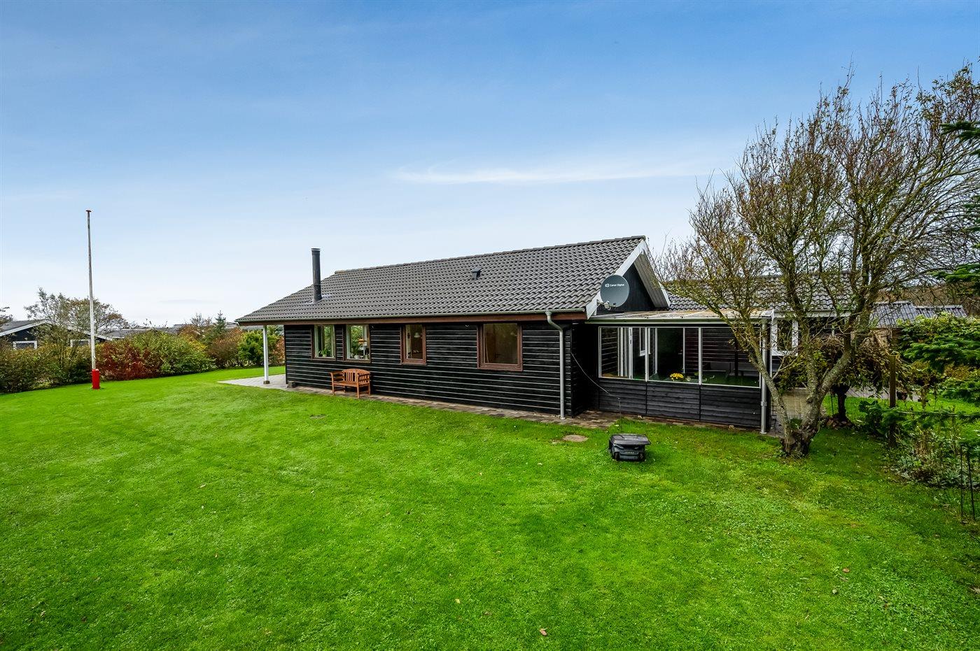 De vakantiewoning is gelegen op een 1070 m² groot aangelegde tuin. De grond is omheind. Afstand tot de fjord 300 m. Er is een zwemsteiger in de buurt. Dichtstbijzijnde winkel 6000 m. Bij de vakantiewoning hoort terras en 16 m2 overdekt terras.Vuurplaats. Carport ter beschikking. Parkeerplaats bij het huis.