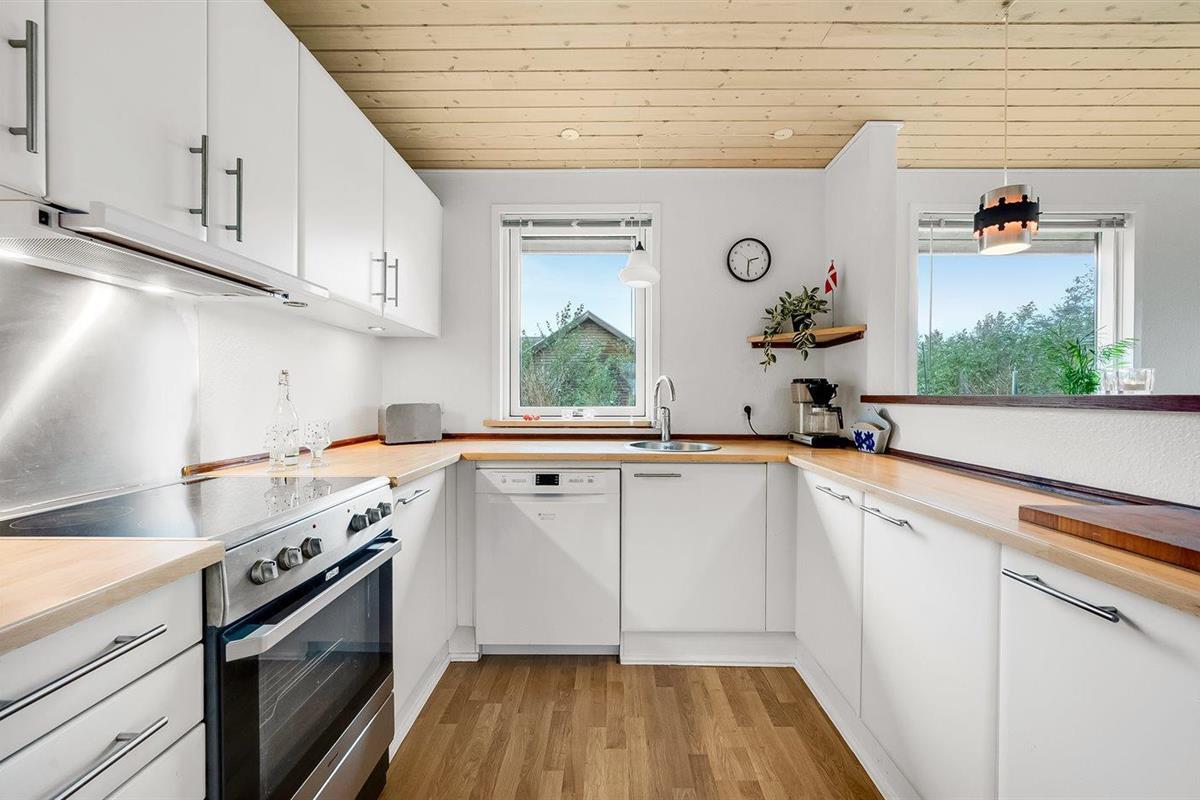 De keuken is uitgerust met koelkast Er is 4 inductiekookplaten, heteluchtoven, magnetron en vaatwasser.