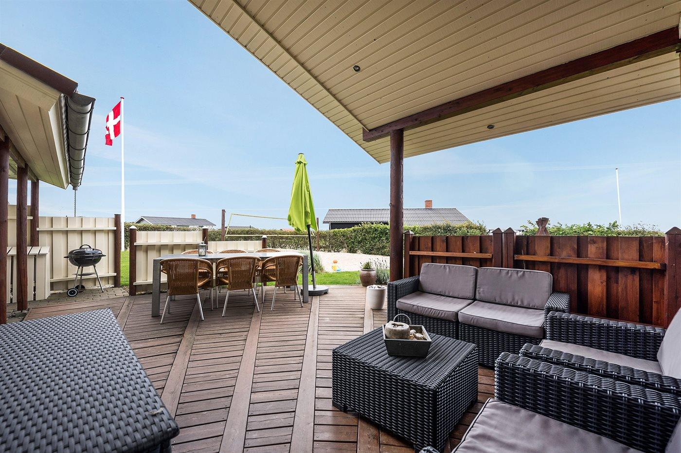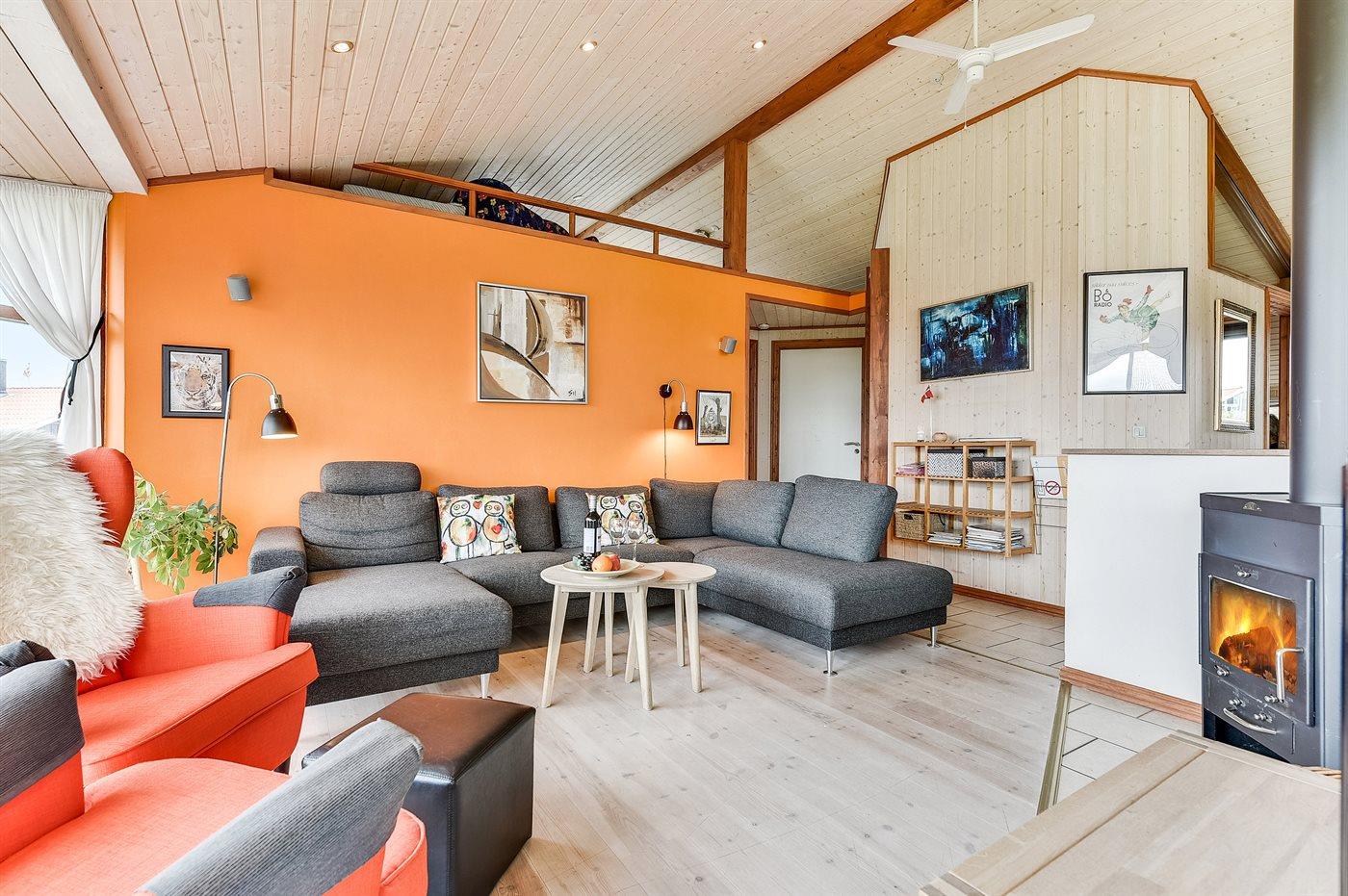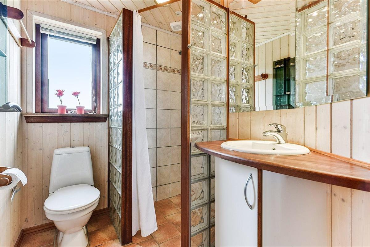 De vakantiewoning is gelegen op een 1100 m² groot aangelegde tuin. Afstand tot de fjord 300 m. Dichtstbijzijnde winkel 6000 m. Bij de vakantiewoning hoort 60 m² terras. Daarnaast is er een 15 m² groot overdekt terras. Gereedschapsruimte. Schommel. Zandbak. U kunt buiten een maaltijd bereiden in de buitenkeuken. Parkeerplaats bij het huis.